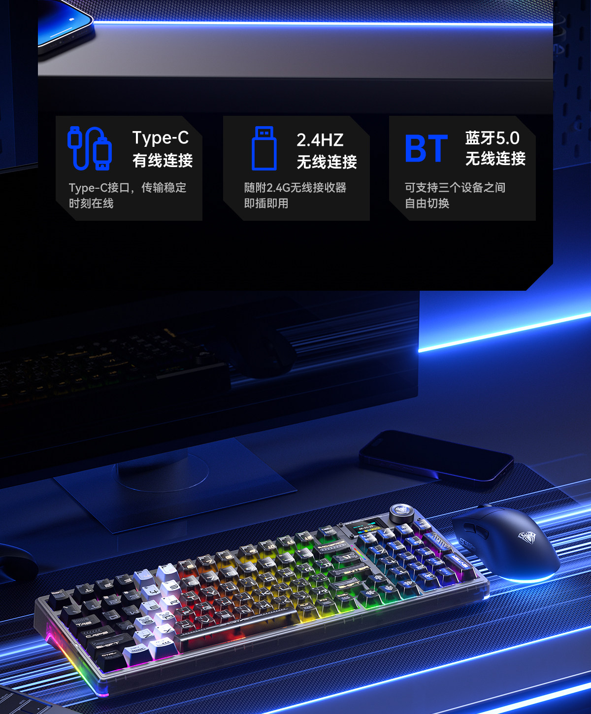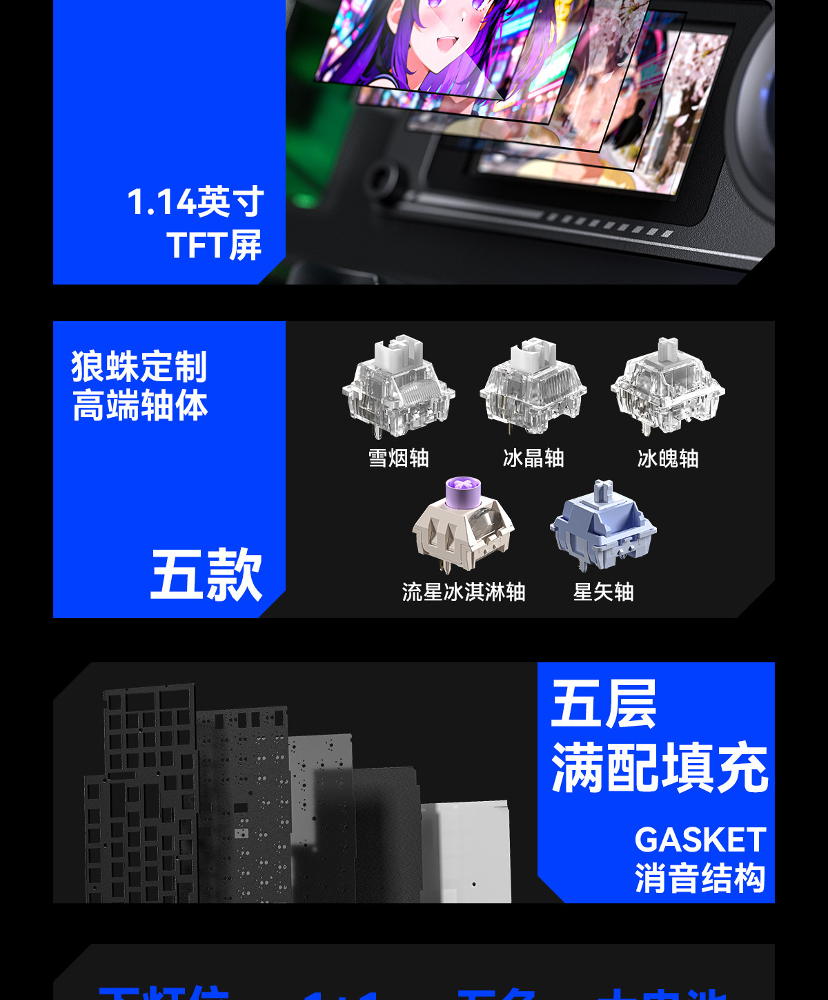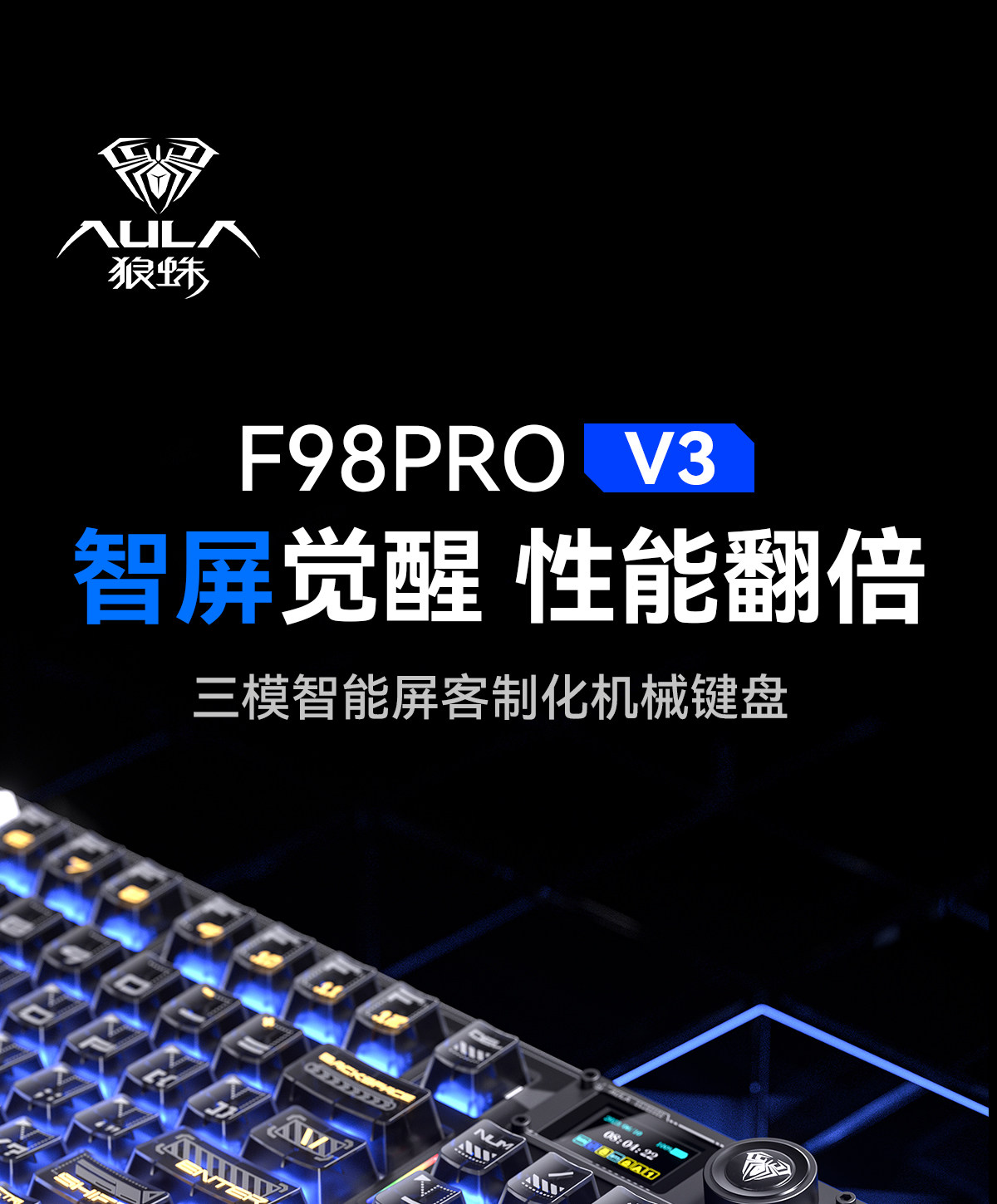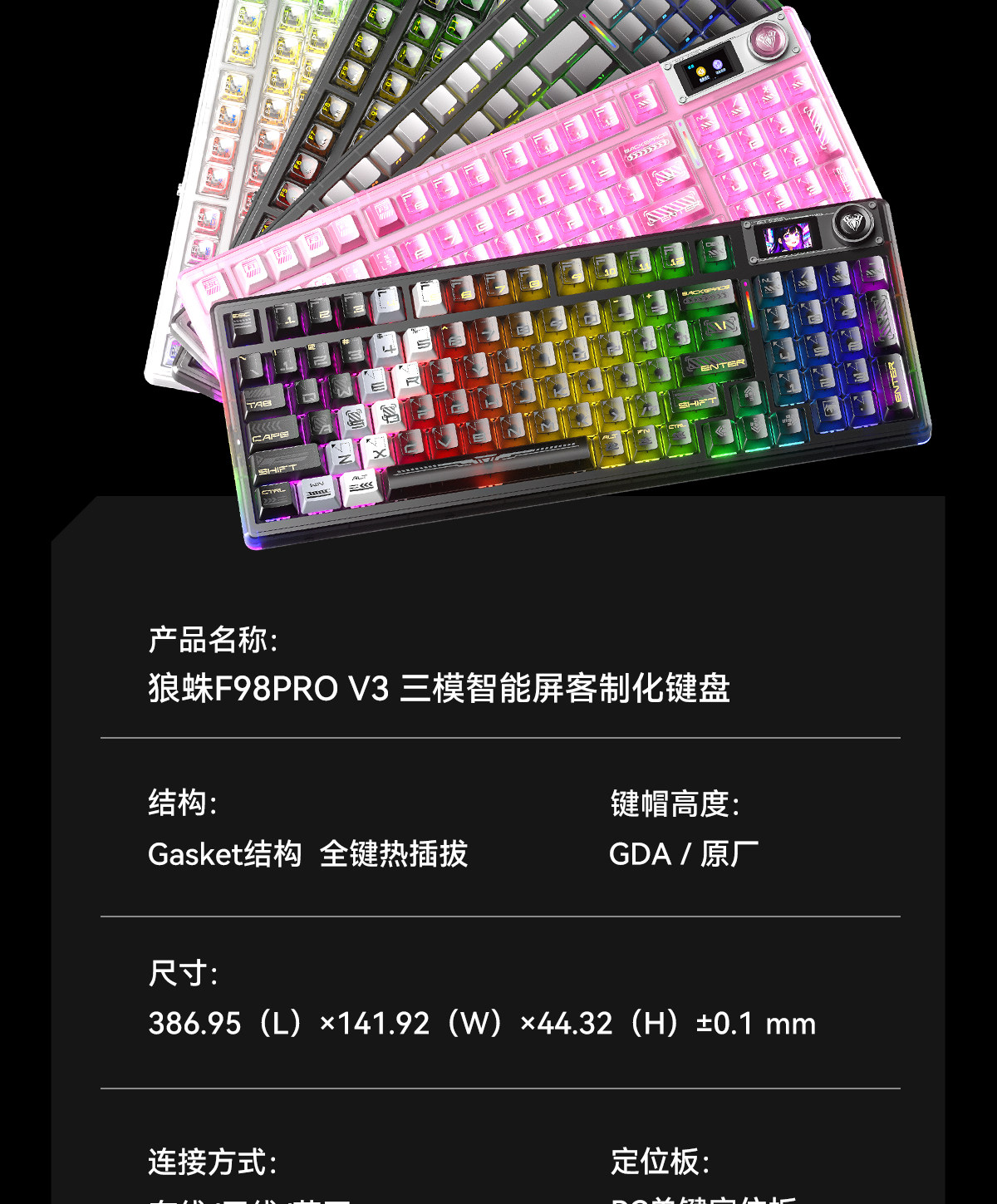 Wolf Spider F98Prov3 Wireless Mechanical Keyboard Bluetooth Three-Mode Wired Transparent Digital Display Screen Customized for Gaming