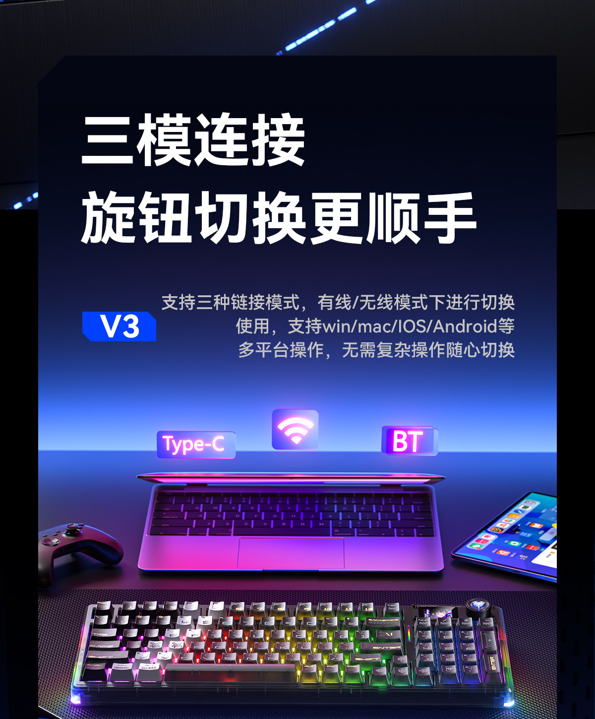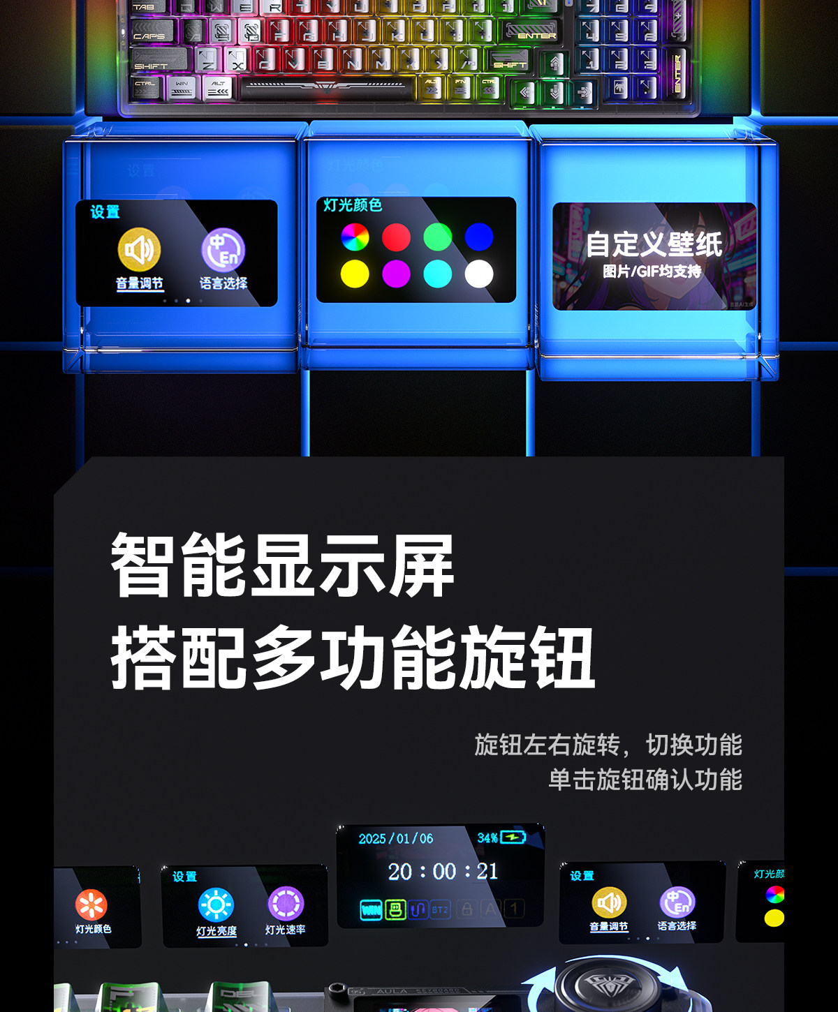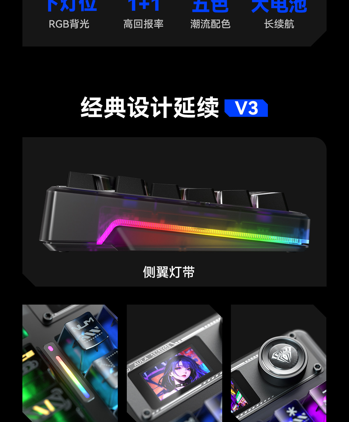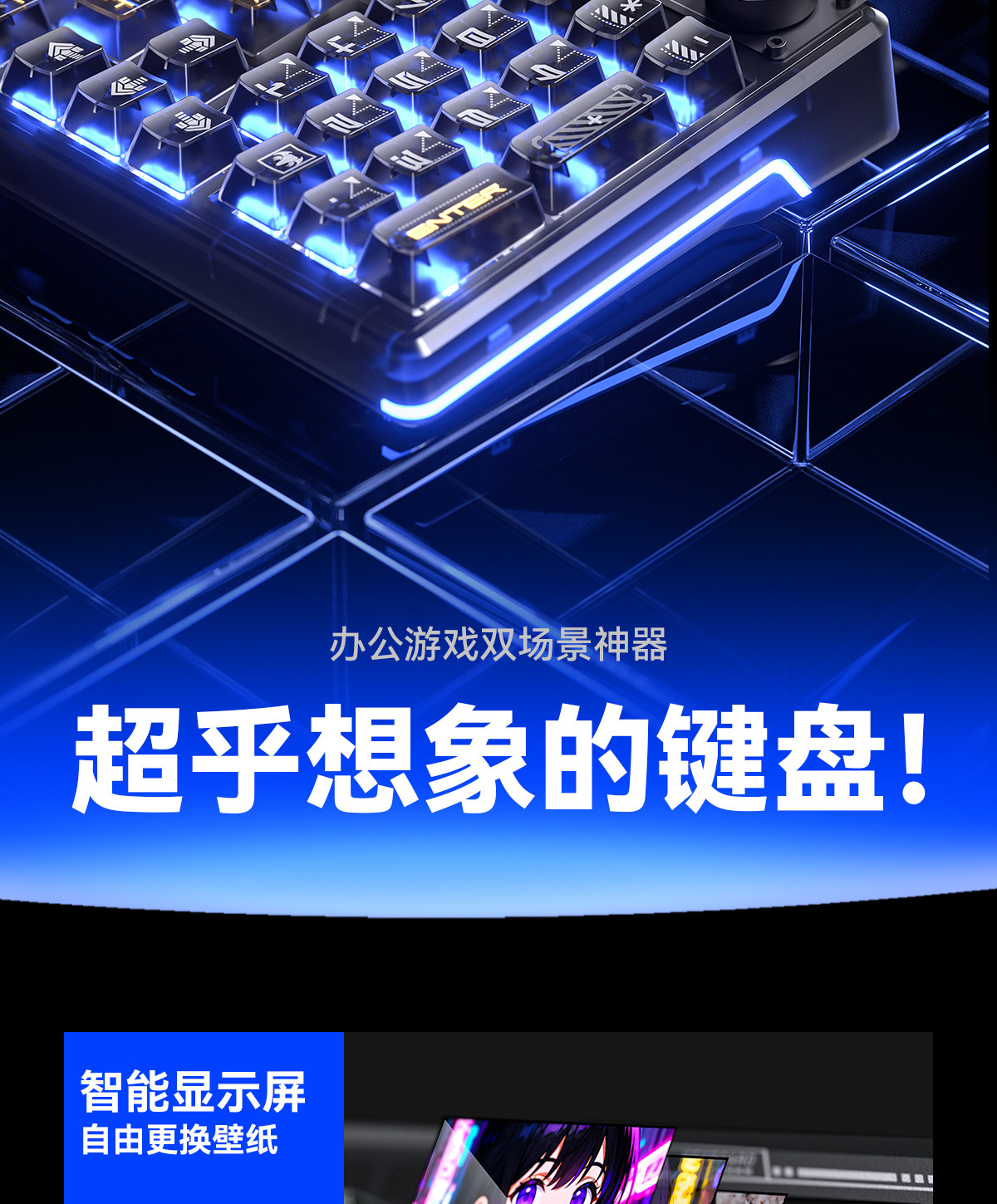Wolf Spider F98Prov3 Wireless Mechanical Keyboard Bluetooth Three-Mode Wired Transparent Digital Display Screen Customized for Gaming