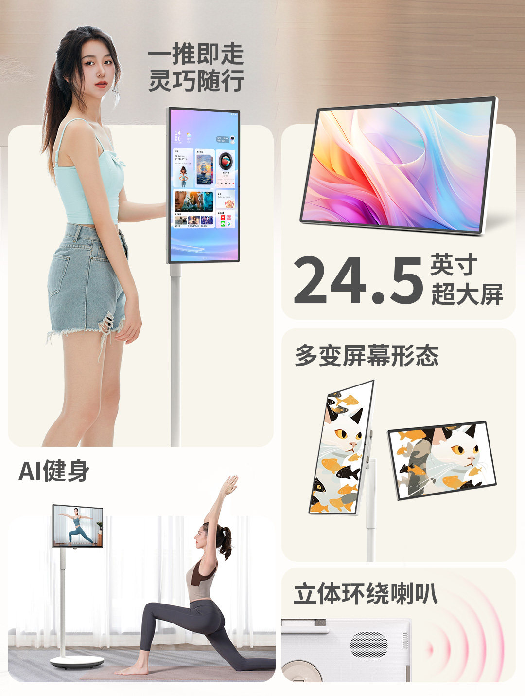 Ktc Bestie Machine Portable Edition Touchscreen 25inch High-Definition Screen Mobile Tv Wireless Screen Projection 8+128g Desktop Mobile Dual-Use Touchscreen