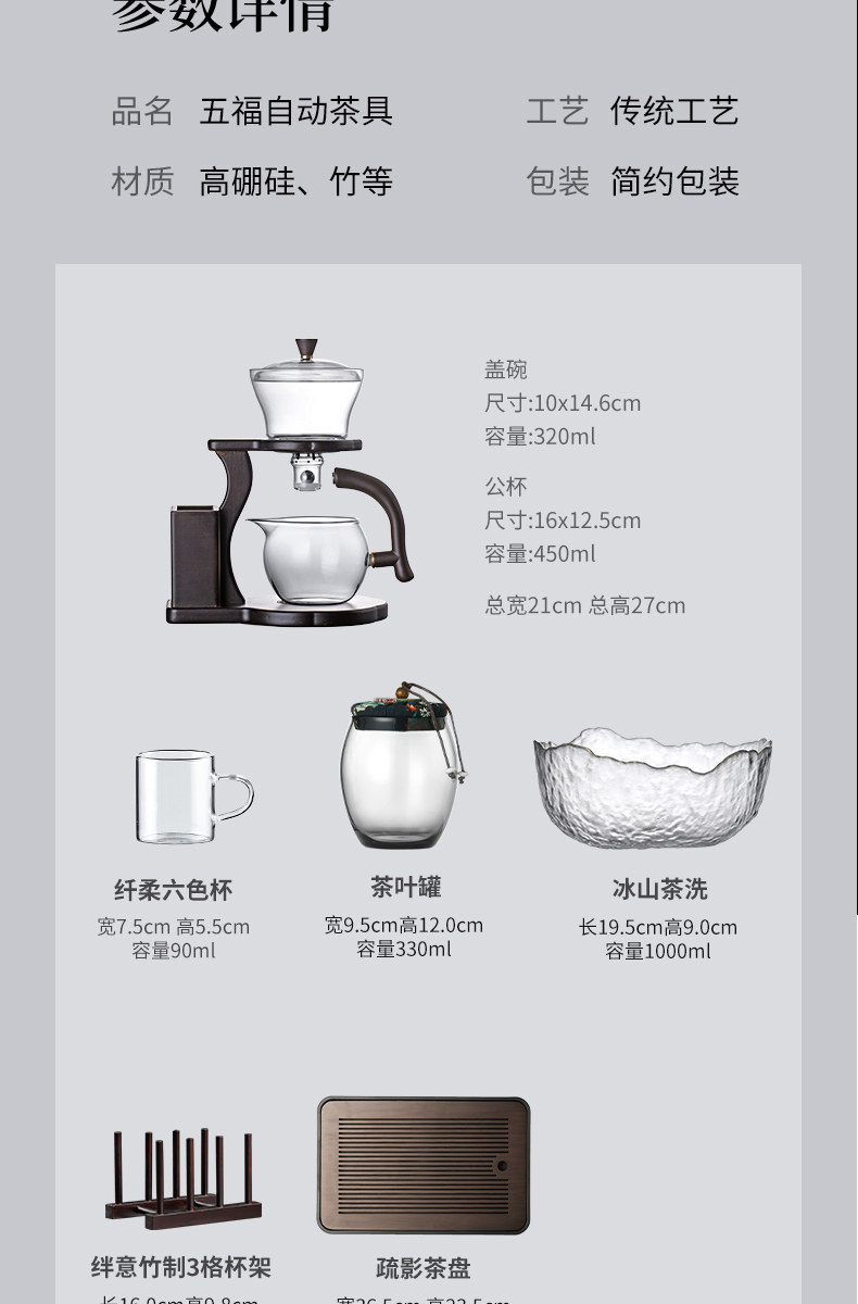 | Color Classification | 1 [One-Touch Tea and Water Separation Without Burning Your Hands] Transparent - Wufu Fully Automatic Tea Set,2 [Magnetic Extraction of Soup/Cold and Heat Resistance] Qinghui-Wufu Fully Automatic Tea Set,3 [Grid Tea Tray Set] Transparent Wufu Automatic Tea Set 9 Pieces (Comes with Cup Holder),4 [Koi Tea Tray Set] Transparent Wufu Automatic Tea Set 9 Pieces (Comes with Cup Holder),↓↓↓Set with Cup (Free Bamboo Cup Holder for a Limited Time),5【Hot-Selling Side Handle Cup for Home Use】Transparent Wufu Automatic Tea Set 8 Pieces (Comes with Cup Holder),6【Fashionable Slate Gray Cup】Slate Gray Five Blessings Automatic Tea Set 8-Piece (Includes Cup Rack),7【Bamboo Sleeve Anti-Scald Cup】Transparent Five Blessings Automatic Tea Set 8-Piece (Includes Cup Rack),↓↓↓Storage Set with Cups and Plates (Free Bamboo Cup Holder for a Limited Time),8 [Sealed Tea Can Set] Transparent Wufu Tea Set 10 Pieces (Side Handle Cup Grid Plate),9【Full Set for Everyone】Transparent Wufu Tea Set 11 Pieces (Side Handle Cup Grid Plate),10 [Large-Capacity Water Storage Disc Set] Transparent Wufu Automatic Tea Set 9 Pieces (Comes with Cup Holder),↓↓↓The Deluxe Version (Tea Tray and Tea Cup) Has Been Fully Upgraded! !,11 [Rock Brick Wood Grain Tea Tray] Transparent - Wufu Fully Automatic Tea Set 9 Pieces (Walnut Handle Cup),12 [Sealed Tea Can Model] Transparent - Wufu Fully Automatic Tea Set 10 Pieces (Walnut Handle Cup),13 [Full Set for Everyone] Transparent - Wufu Fully Automatic Tea Set 11 Pieces (Walnut Handle Cup),14【1500W High-Power Tea Maker】Transparent - Wufu Fully Automatic Tea Set 11-Piece (Walnut Handle Cups),↓↓↓Gift Giving (Brand Gift Box and Handbag),15 [Branded Gift Box] Transparent - Wufu Automatic Tea Set (Six Color Cups),16 [Branded Gift Box] Transparent (Gold) Interesting Welcome Automatic Tea Set (Six Color Cups),17 [Simple Hospitality Set] Transparent Wufu Automatic Tea Set 10 Pieces (Comes with Cup Holder) |