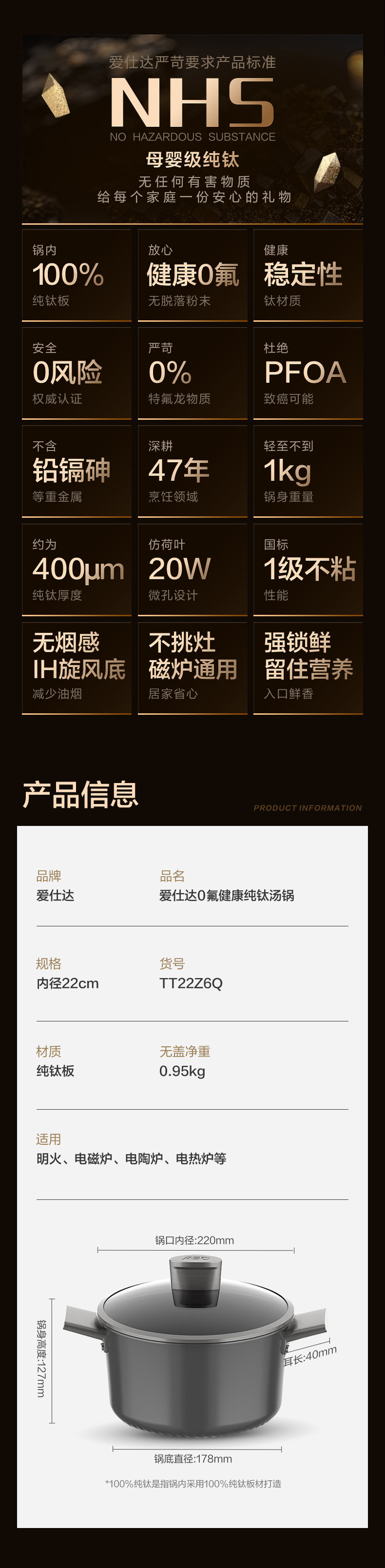 | Color Classification | [100% Pure Titanium Plate, True 0 Fluoride and Healthier] 22cm Soup Pot |