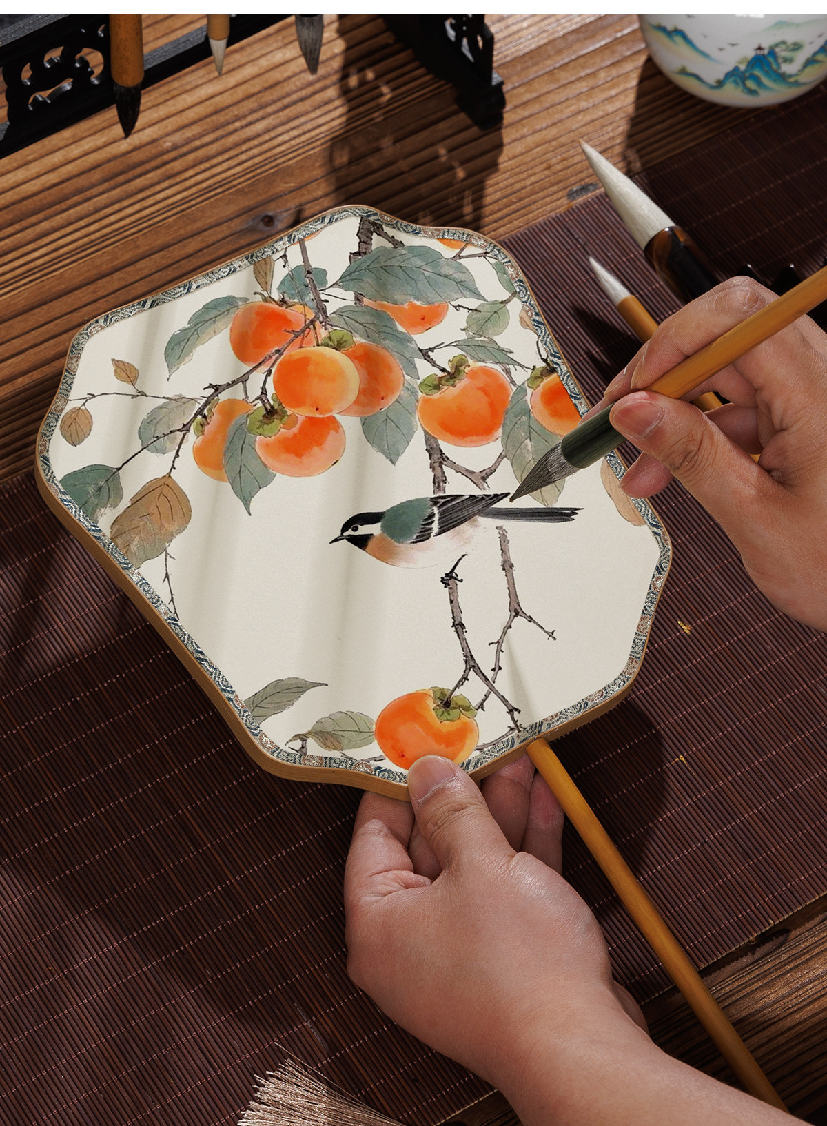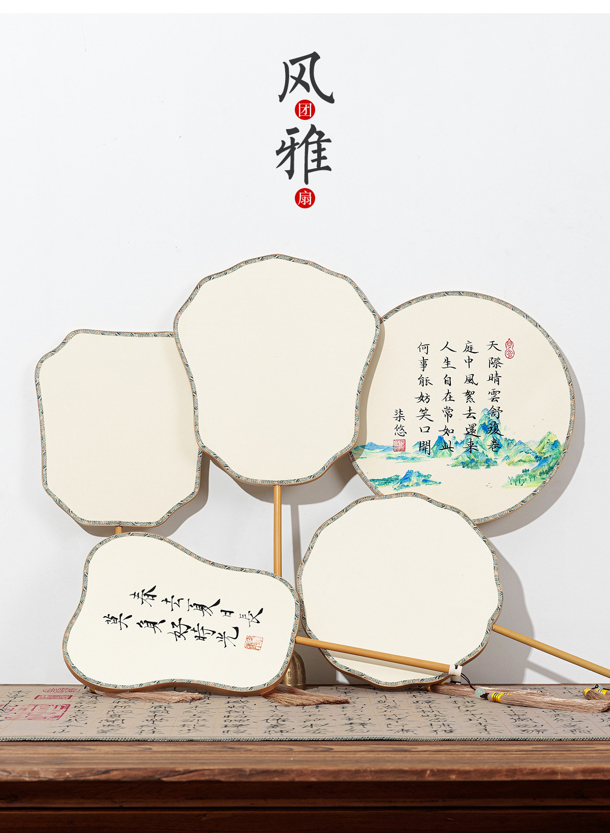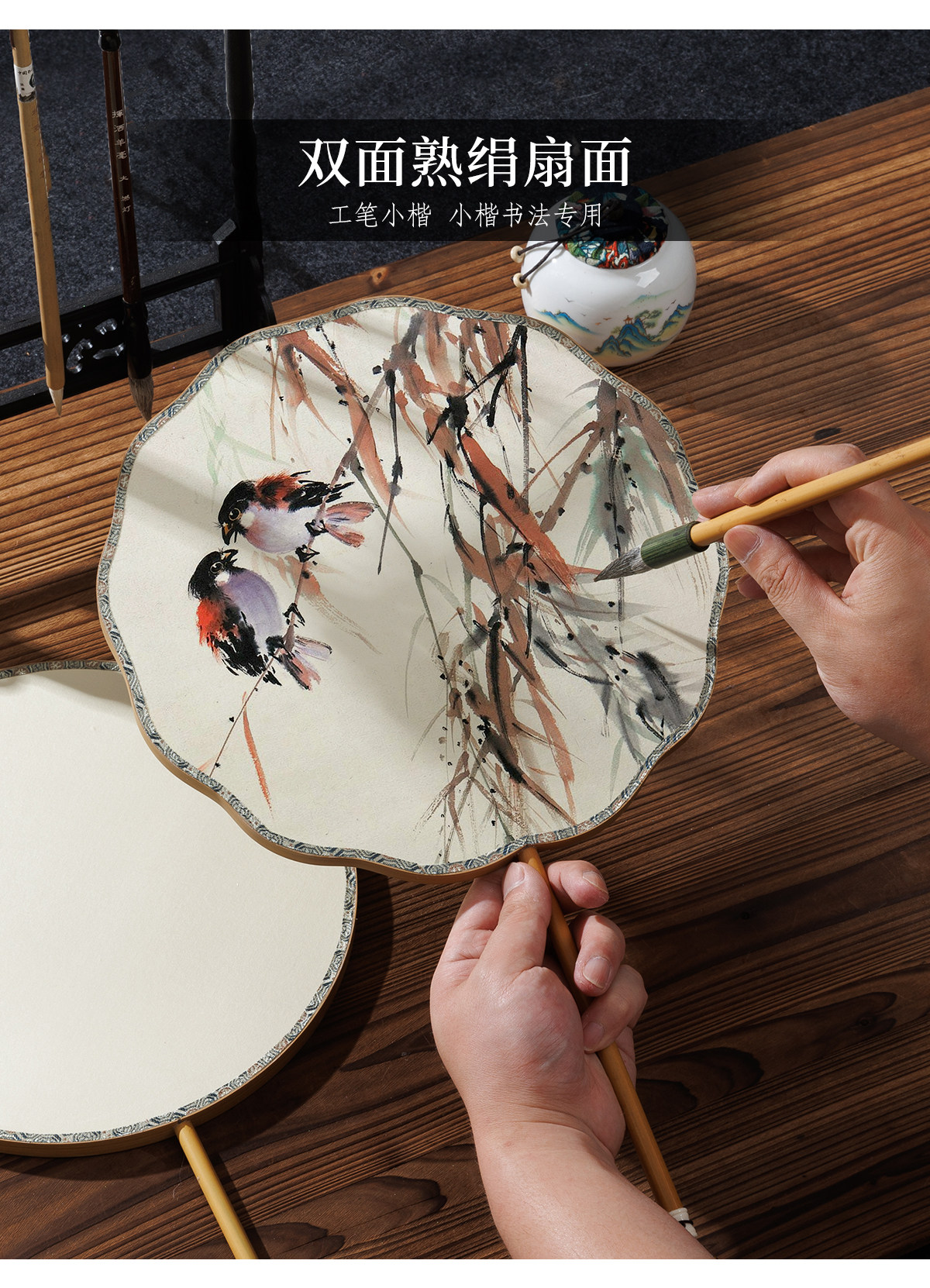 Double-Sided Painted Palace Fan with Traditional Chinese Style, Hand-Painted with Fine Brushwork, Small Script Fan, Blank Round Fan, Long-Handled Craft Fan, Gift