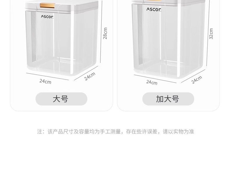 | Color Classification | Extra Large Size â 30 Pounds of Rice/ 11.5kg Noodlesâ¤ď¸With Insect-Proof Box - Measuring Cup Includedâ¤ď¸,Large Size â 20 Pounds of Rice/ 7.5kg Noodlesâ¤ď¸With Insect-Proof Box - Measuring Cup Includedâ¤ď¸,Medium Size â11 Pounds of Rice/ 4kg Noodles[Free Measuring Cup],Small Size â 6 Pounds of Rice/ 2kg Noodles[Free Measuring Cup],3kg â 5.5kg[Rice, Flour and Miscellaneous Grains Classified Storage],3kg â 10kg[Rice, Flour and Miscellaneous Grains Classified Storage],5.5kg â 10kg[Rice, Flour and Miscellaneous Grains Classified Storage],5.5kg â 15kg[Rice, Flour and Miscellaneous Grains Classified Storage],Family Suit- 3kg + 5.5kg + 10kg,Family Suit- 5.5kg + 10kg + 15kg |