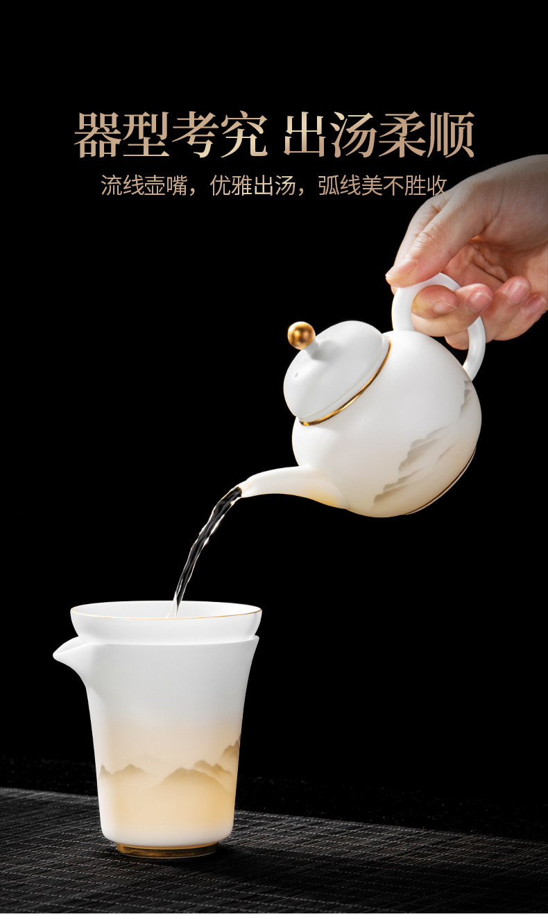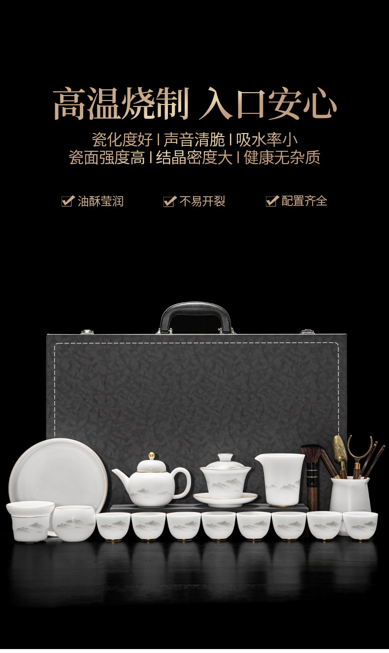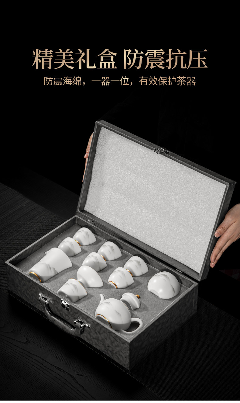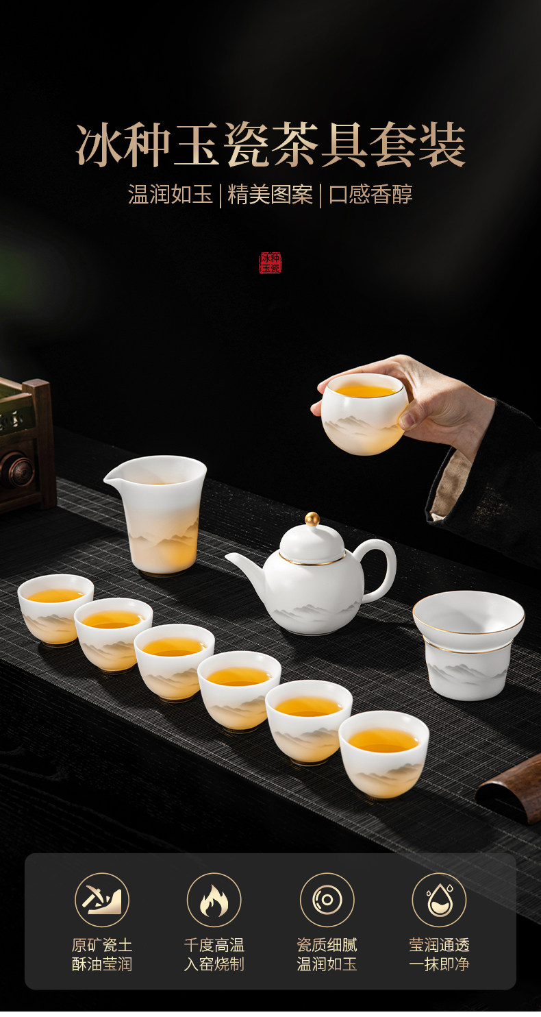 Ice Jade Porcelain Tea Set Gift Box Set, Light Luxury and High-End, 2026 New Kung Fu Teapot, Gift for Elders and Friends