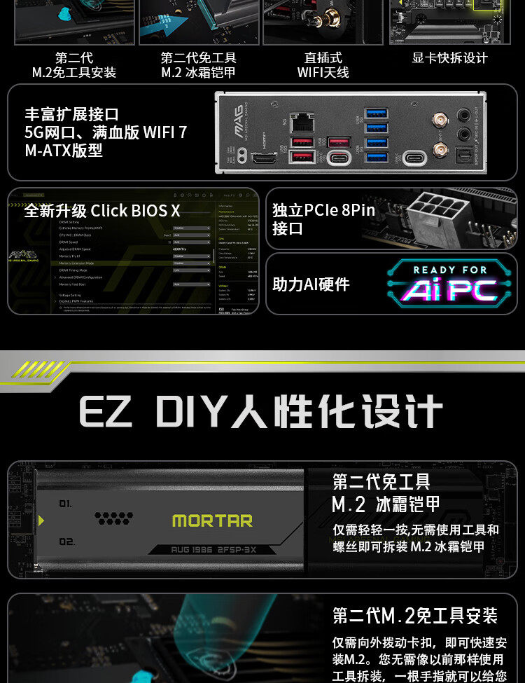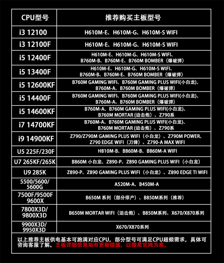 | Color Classification | Msi A520M-A D4,Msi B550M-A Pro,Msi Pro B650M-B,Msi B650M Gaming Wifi,Msi B850M Gaming Wifi6E,Msi B850M Gaming Pro Wifi6E,Msi B850M Xiaolong Wifi,Msi B850M Mortar Wifi,Msi B850 Tomahawk Wifi,Msi B850 Blade Titanium Wifi,Msi B850I Edge Ti Wifi,Msi X870-P Wifi,Msi X870 Tomahawk Wifi,Msi X870E Blade Ti Wifi |