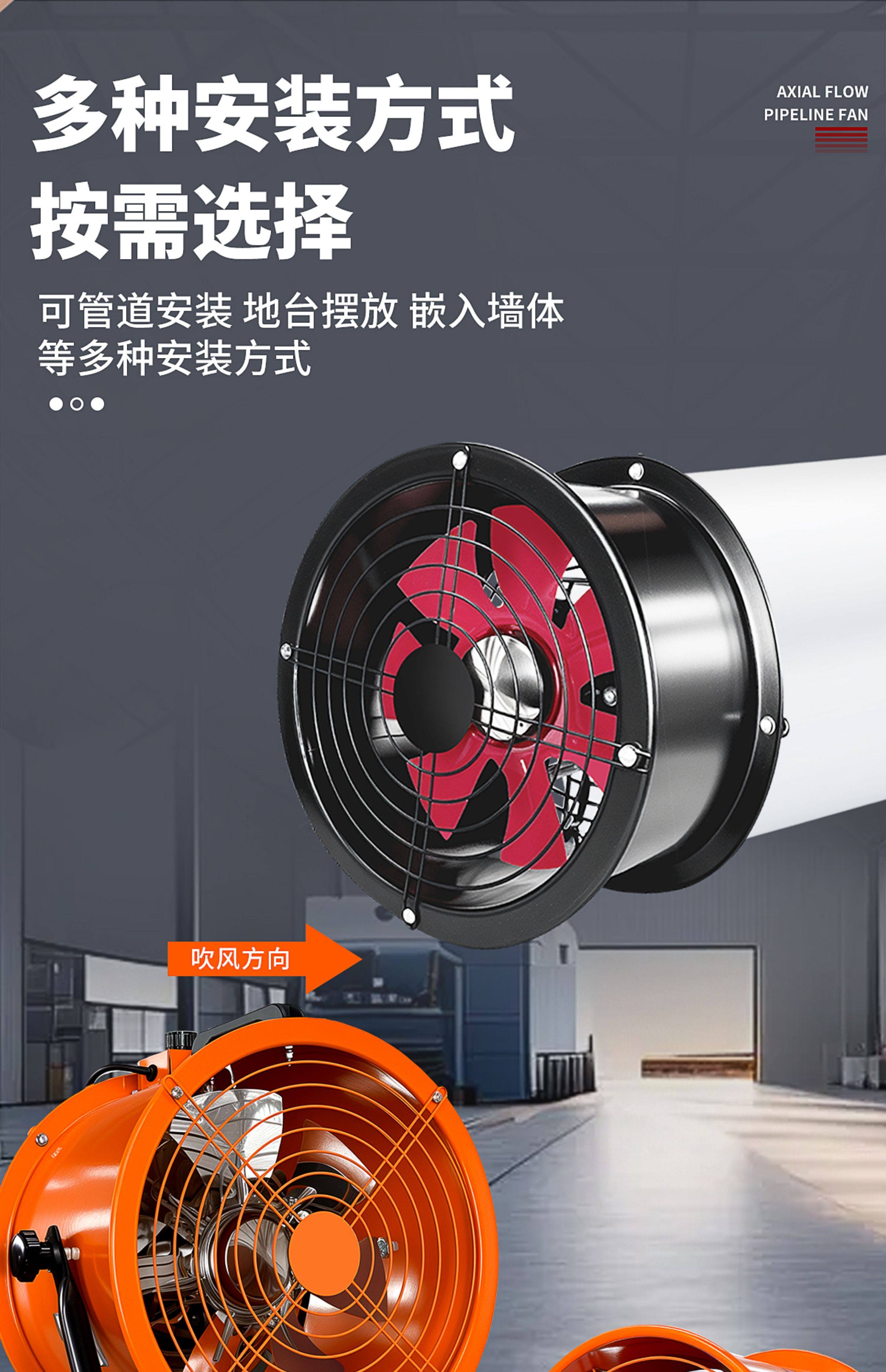 Axial Flow Fan, Powerful Exhaust Fan, High-Power Kitchen Fume Exhaust Fan, Floor-Mounted Industrial Blower Fan
