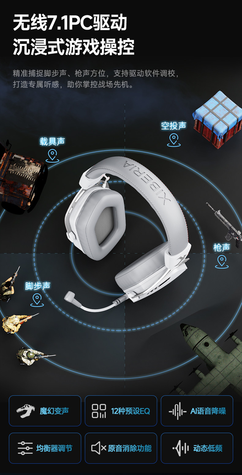 | Model | 7.1 Wireless Head-Mounted Gaming Headset |