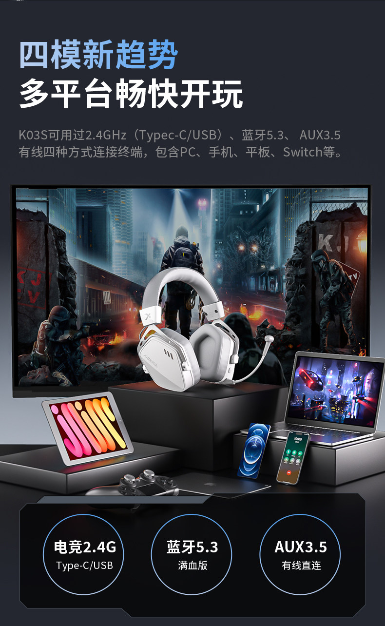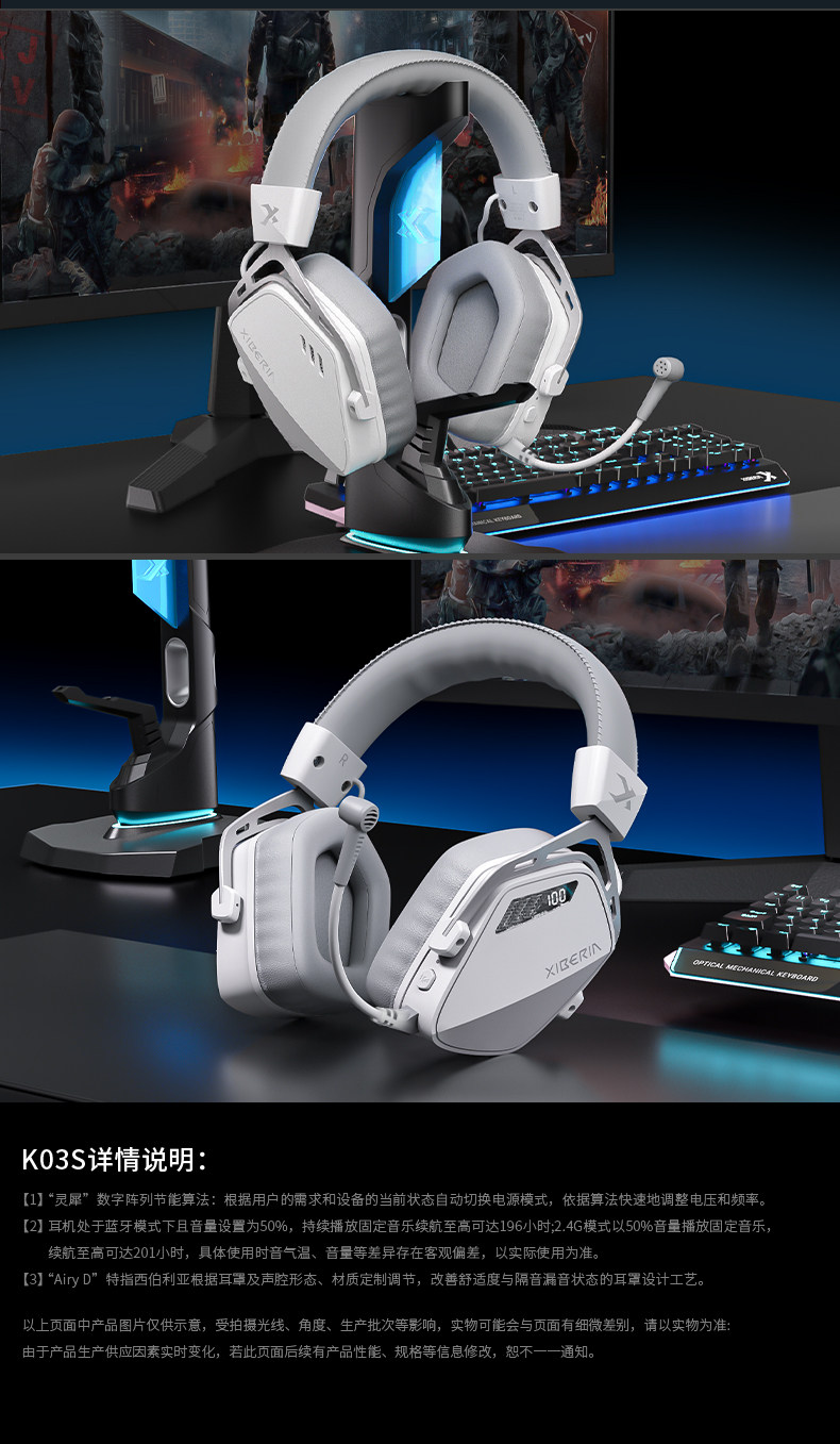 Siberia K03S Wireless 7.1 Version Gaming Headset Over-Ear Bluetooth E-Sports Headset for Computer