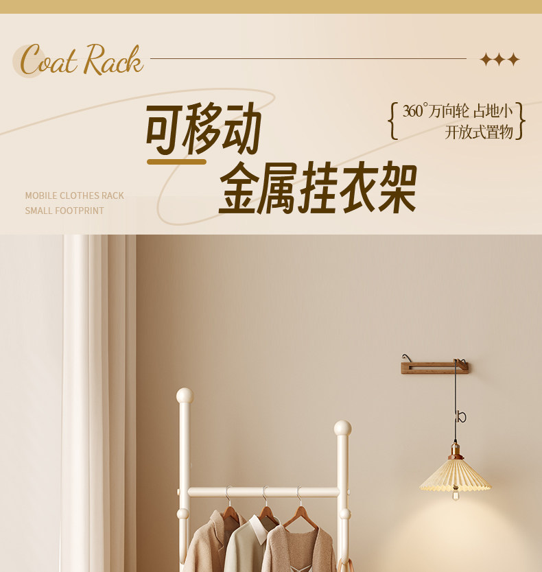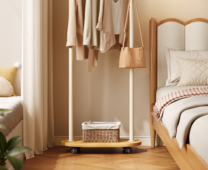 Movable Clothes Rack, Small Floor-Standing Coat Rack That Does Not Take up Space, for Storing Clothes That Have Been Taken Off, Bedside Bedroom Storage