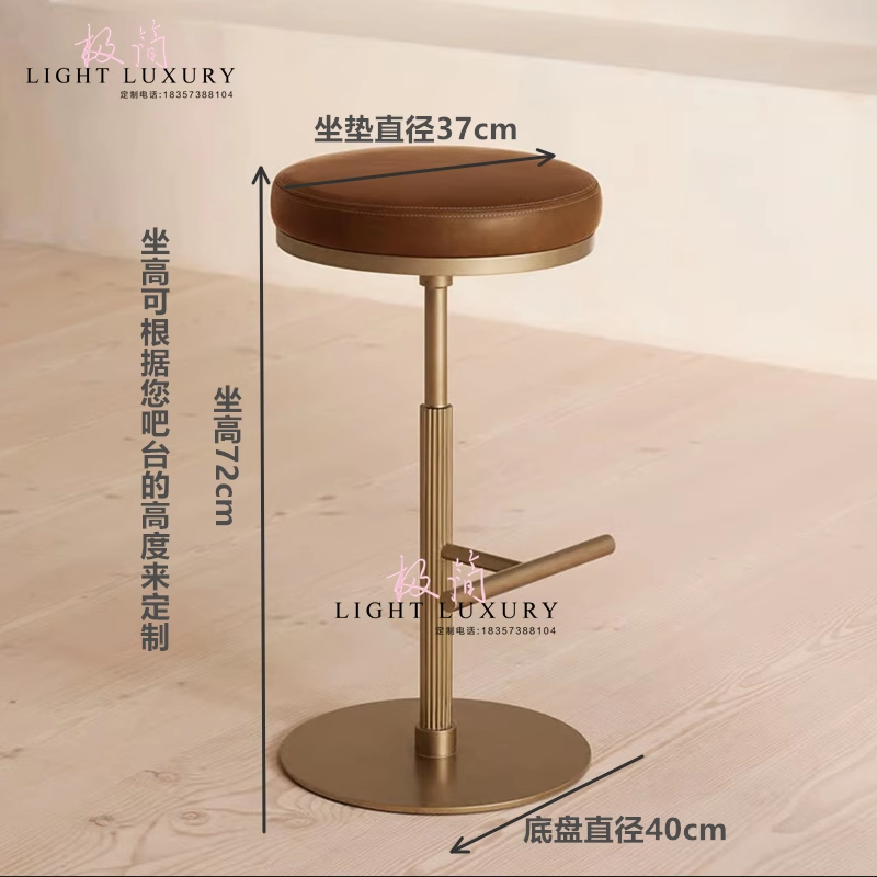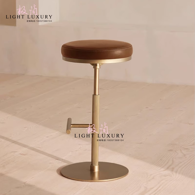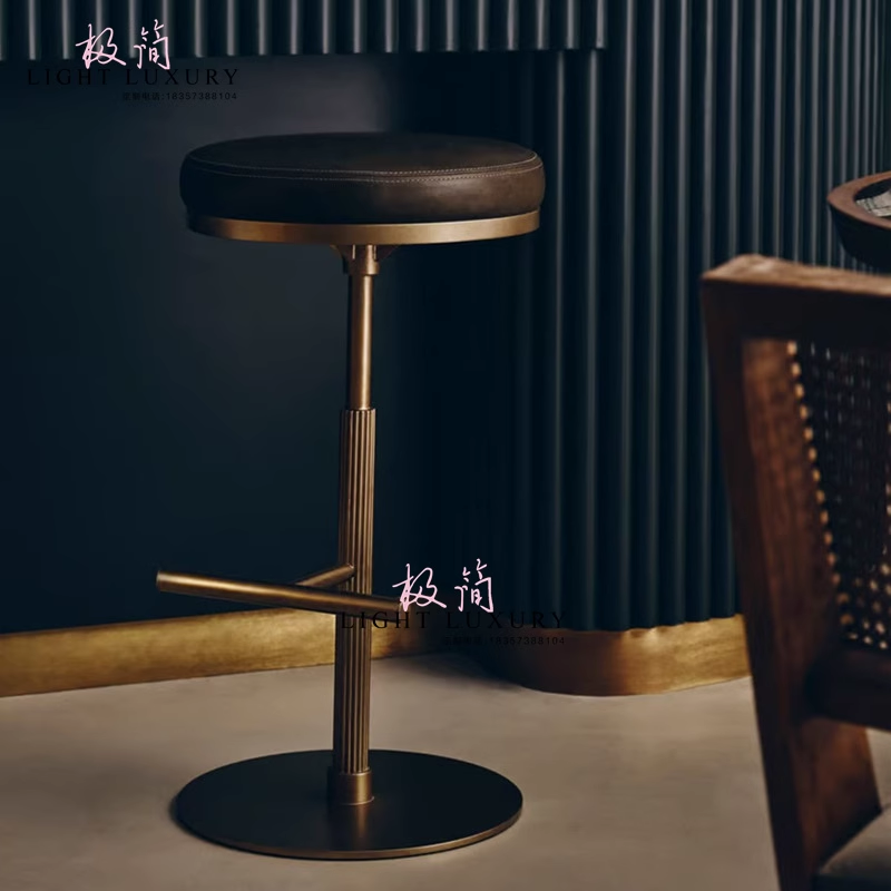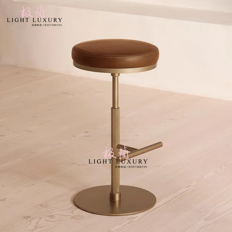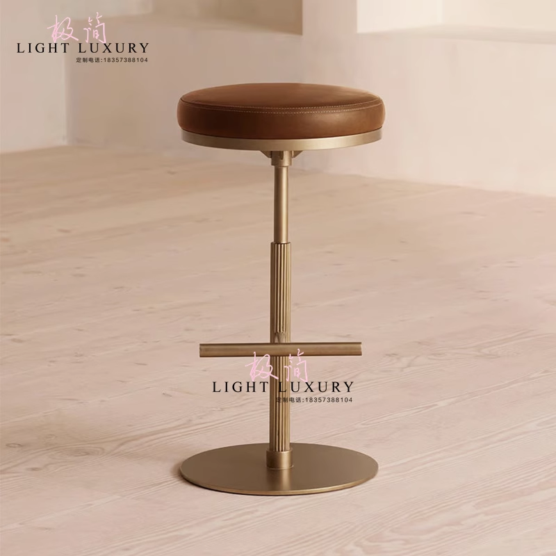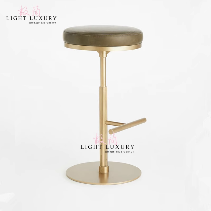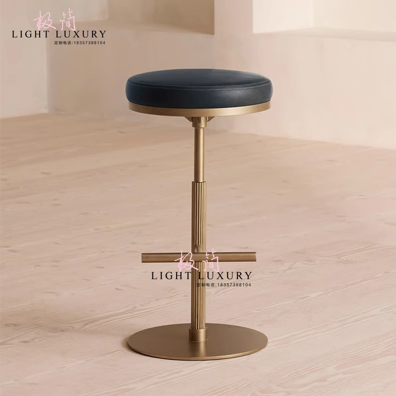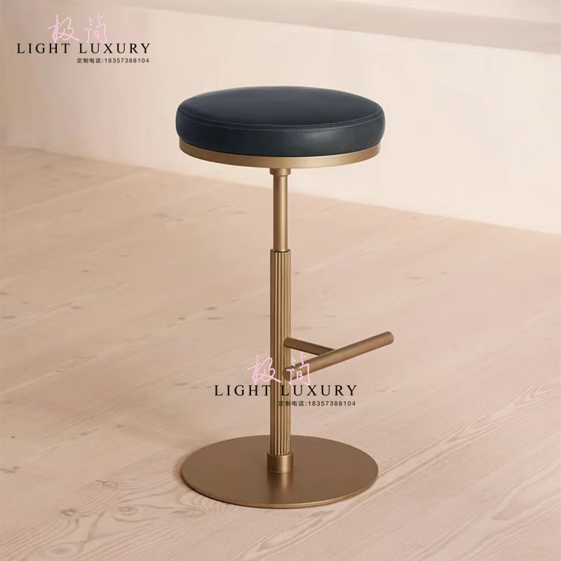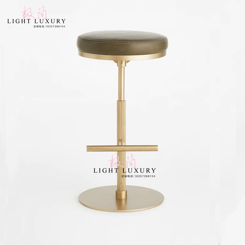 Modern Minimalist Light Luxury Stainless Steel Metal Bar Stool for Bars, Cafes, Ktv, Leather Bar Chair, Front Desk High Stool