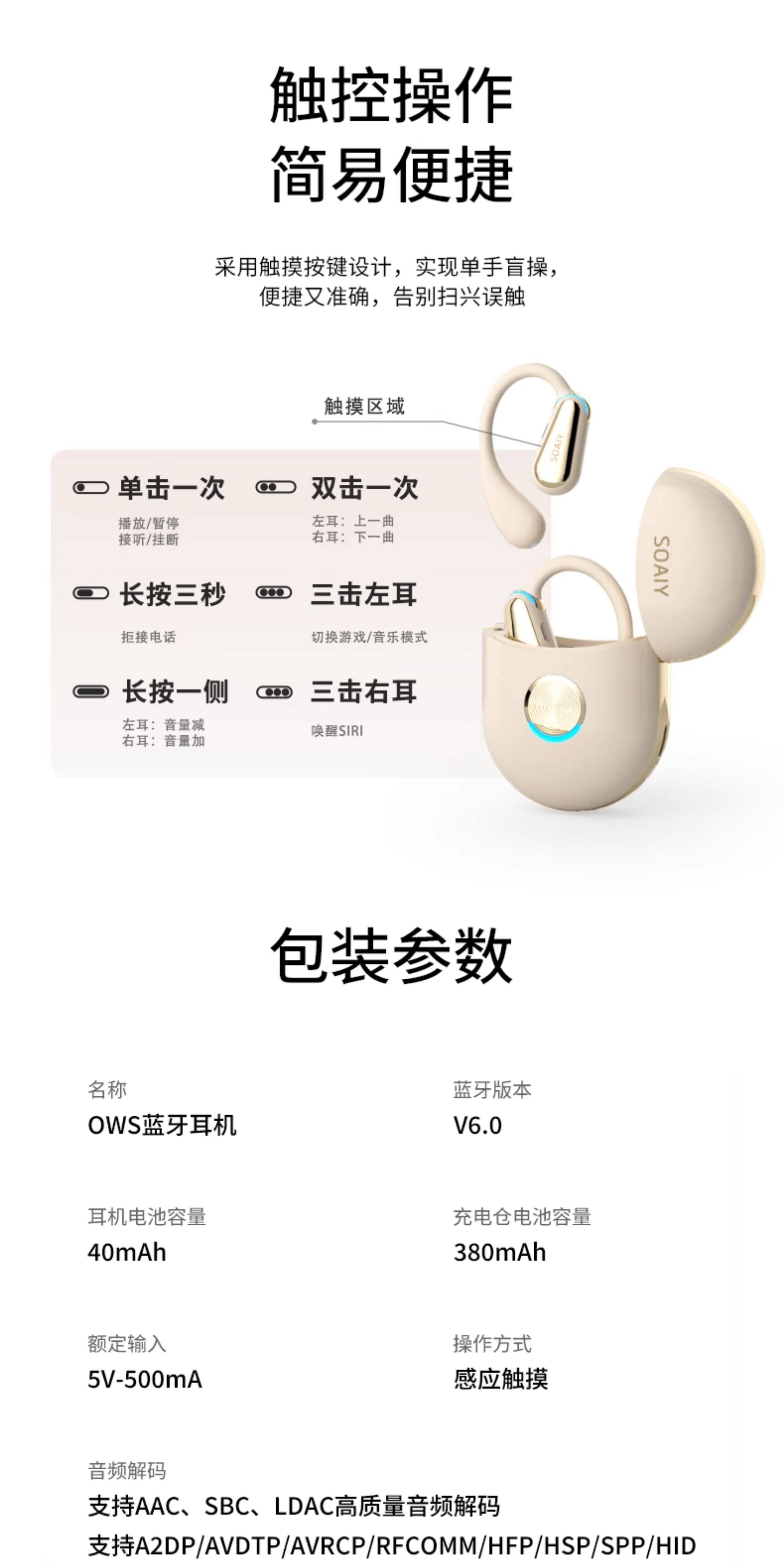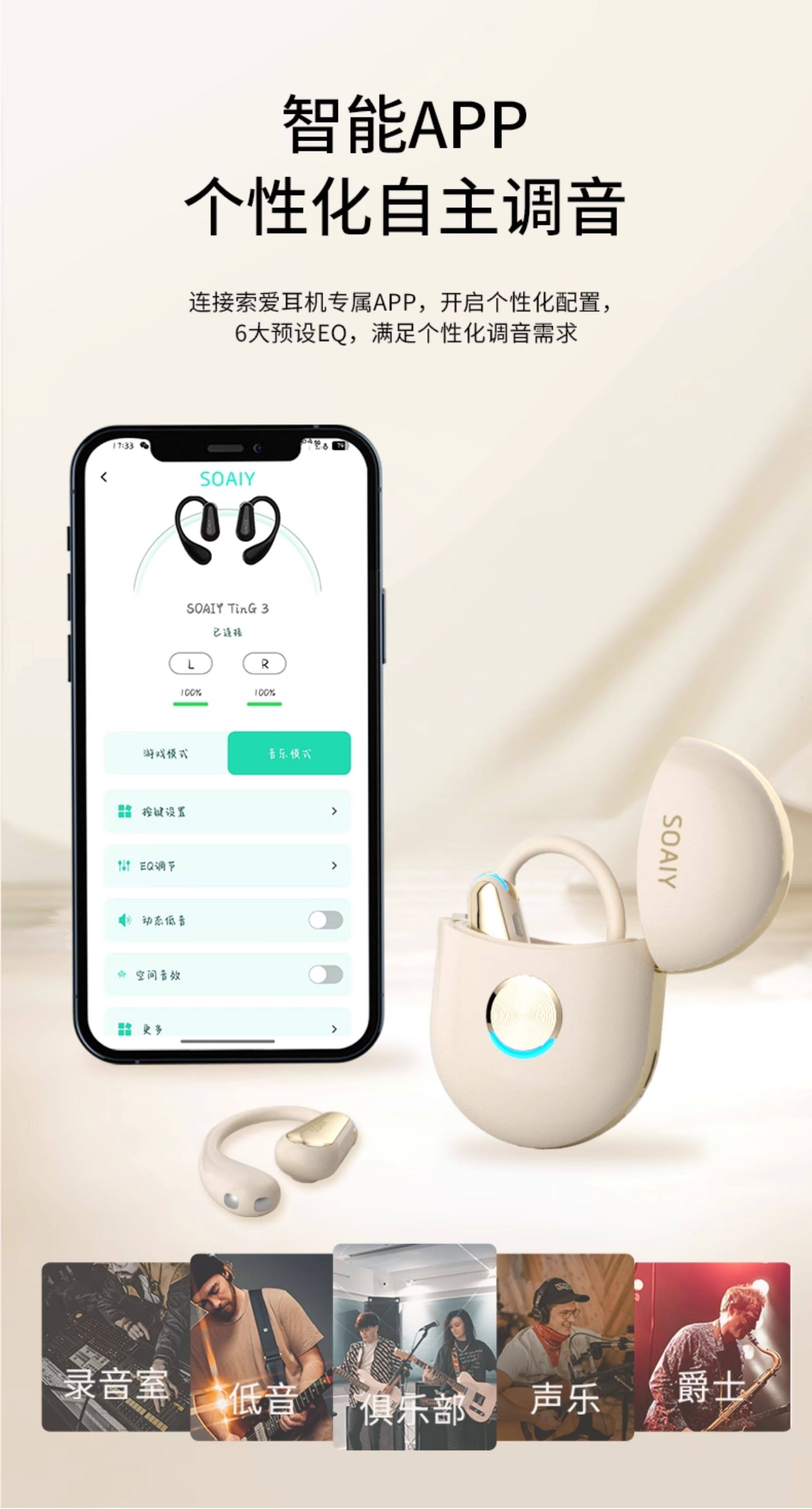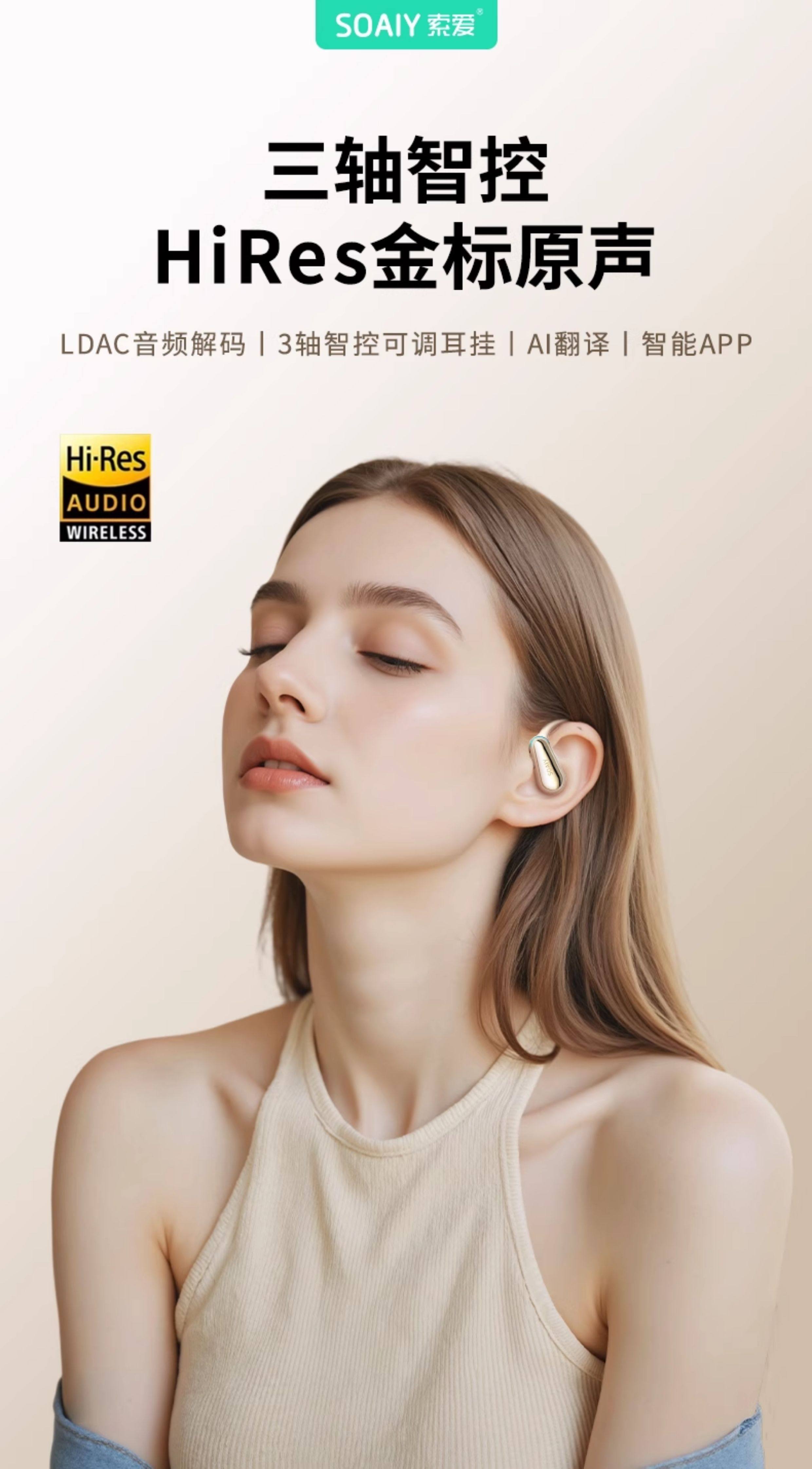 Soaiy Ting3 Ear-Hook Ai Smart Translation Wireless Bluetooth Headset 2025 New Model Simultaneous Interpretation