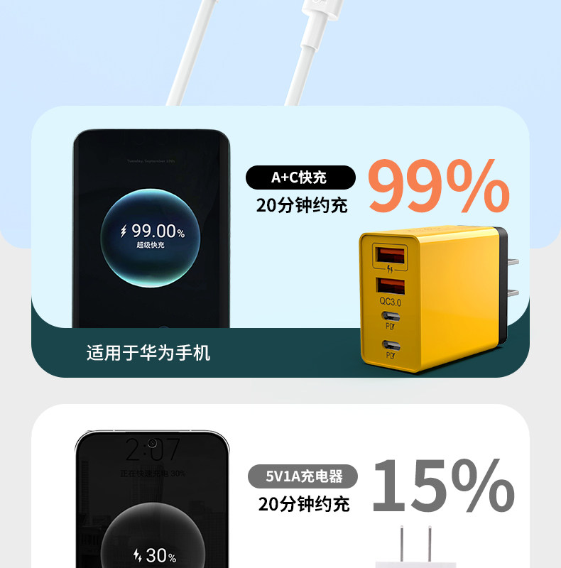 Suitable for 150/120 Mobile Phone Chargers Pd20W30W Charging Head Fast Charging USB Multi-Port Type-C Suitable for Huawei Oppo Vivo Xiaomi Apple Android Watch Earphones Radiator