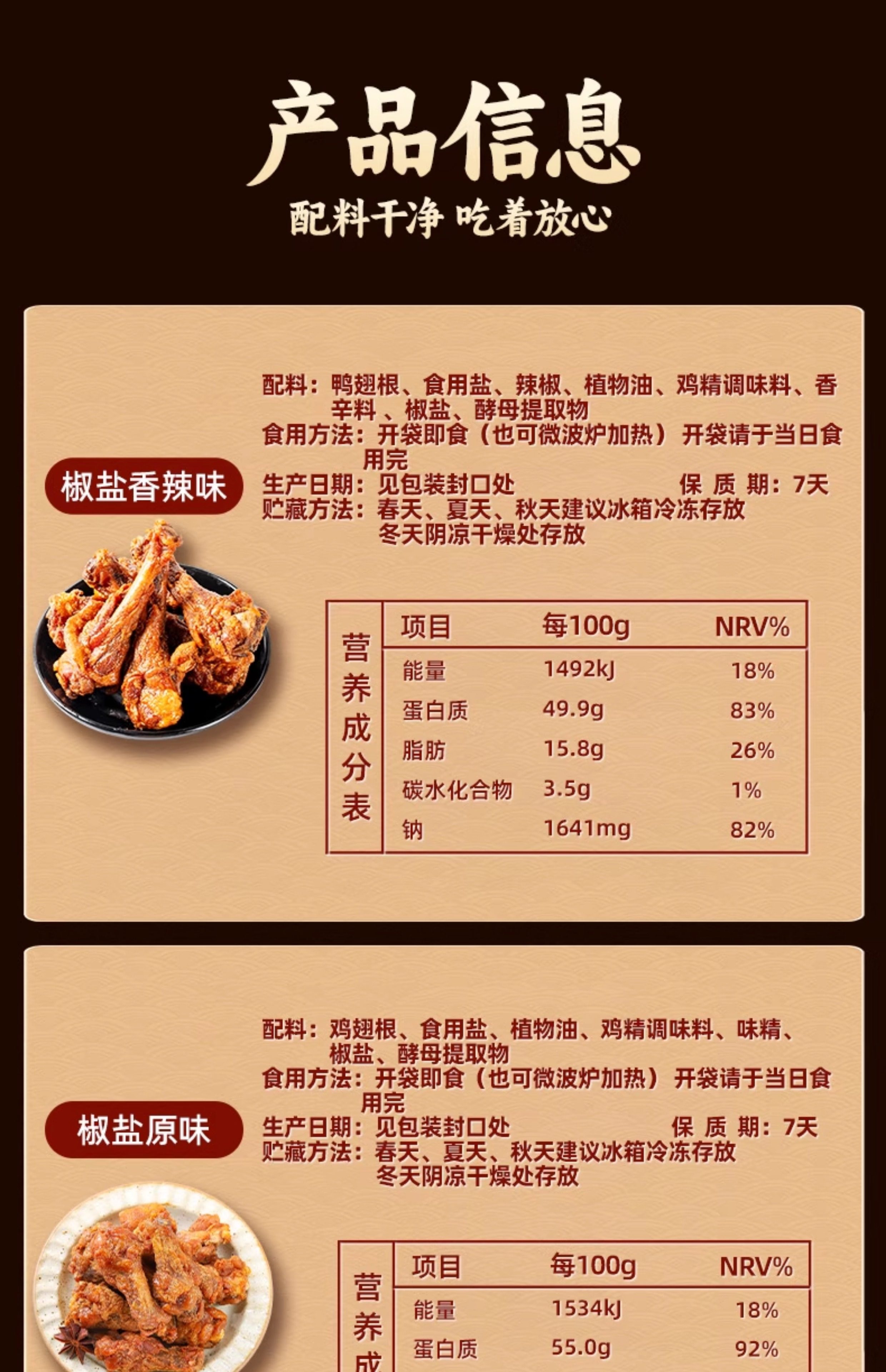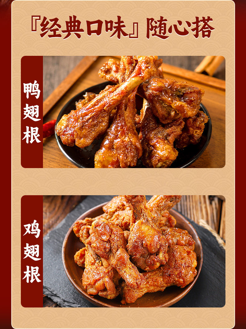 | Taste | Duck Wing Root [Original Flavor] 1 Bag + Chicken Wing Root [Original Flavor] 1 Bag,Duck Wing Root [Spicy] 1 Bag + Chicken Wing Root [Original Flavor] 1 Bag,1 Bag of Duck Wing Root [Vine Pepper] + 1 Bag of Chicken Wing Root [Original Flavor],Duck Wing Root [Original Flavor] 1 Bag + Chicken Wing Root [Spicy] 1 Bag,Duck Wing Root [Spicy] 1 Bag + Chicken Wing Root [Spicy] 1 Bag,1 Bag of Duck Wing Root [Vine Pepper] + 1 Bag of Chicken Wing Root [Spicy] |