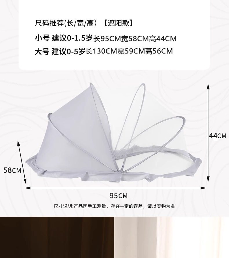 | Color Classification | Baby Mosquito Net - Standard Model - Green - Small Size[One Pack],Baby Mosquito Net-Ordinary Style-Green-Large Size[One Pack],Baby Mosquito Net - Standard Model - Gray - Small Size[One Pack],Baby Mosquito Net-Ordinary Style-Gray-Large Size[One Pack],Baby Mosquito Net-Ordinary Style-Pink-Small Size[One Pack],Baby Mosquito Net-Ordinary Style-Pink-Large Size[One Pack],Baby Mosquito Net - Sunshade Style - Green - Large[One Pack],Baby Mosquito Net - Sun Protection - Green - Small[One Pack],Baby Mosquito Net - Sunshade Style - Gray - Large[One Pack],Baby Mosquito Net - Sunshade Style - Gray - Small Size[One Pack],Baby Mosquito Net-Sun Shade-Pink-Large[One Pack],Baby Mosquito Net - Sun Protection - Pink - Small[One Pack] |