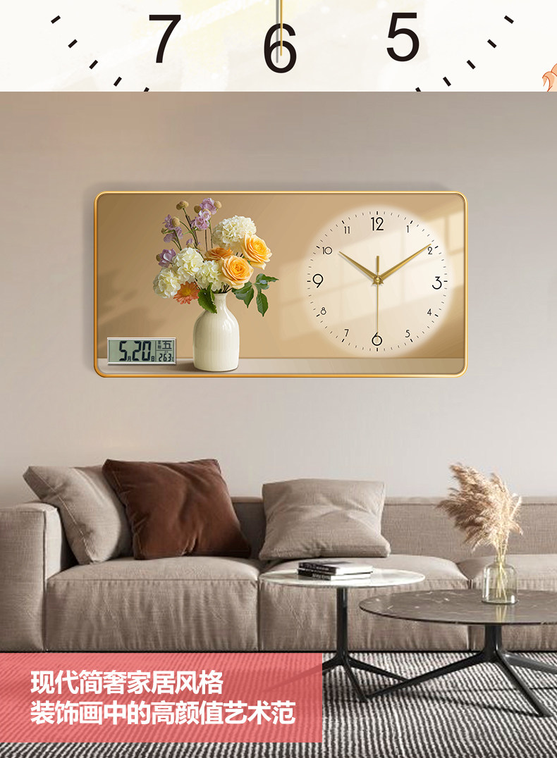 Sunflower Living Room Decorative Painting 2025 New Model Radio-Controlled Clock Perpetual Calendar Wall Clock No-Drill High-End Wall-Mounted Clock