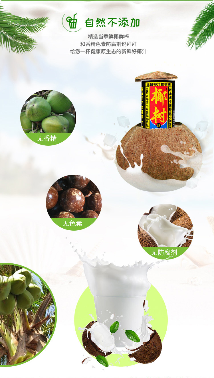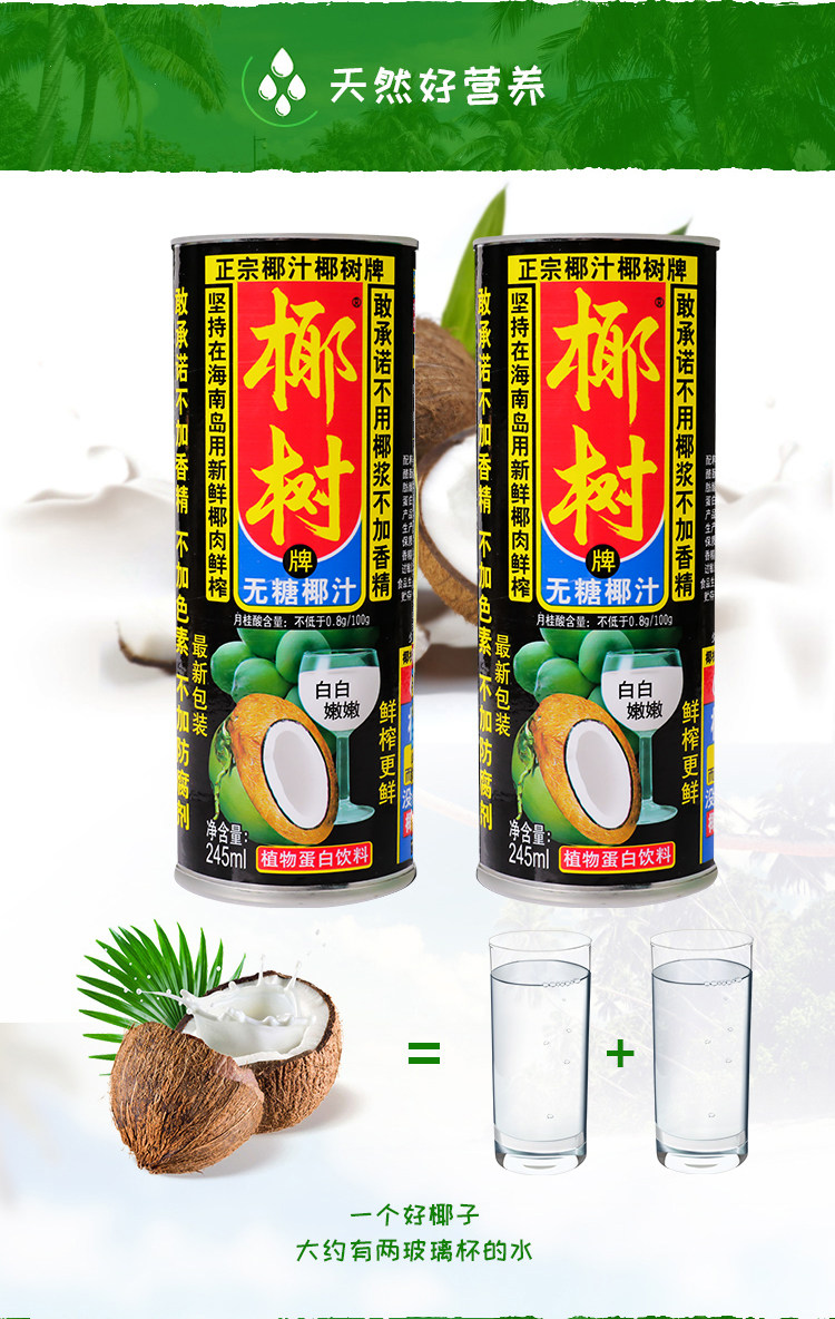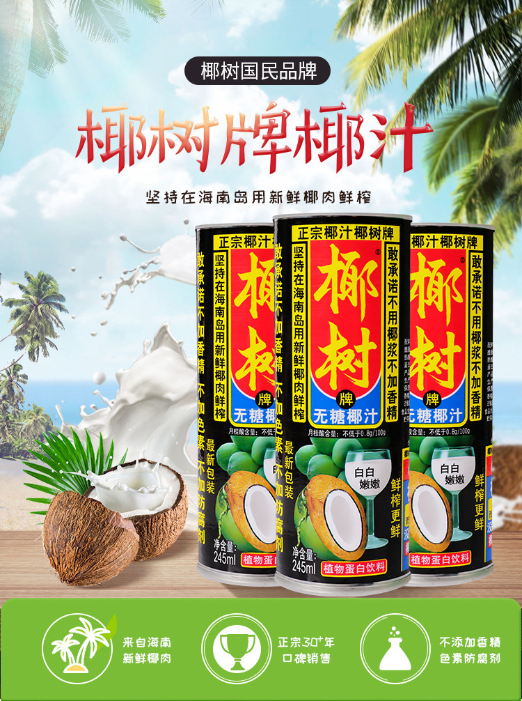 Coconut Tree Brand Sugar-Free Coconut Juice 245ml*24 Cans Full Box Authentic Hainan Specialty Water Milk Plant Juice Beverage