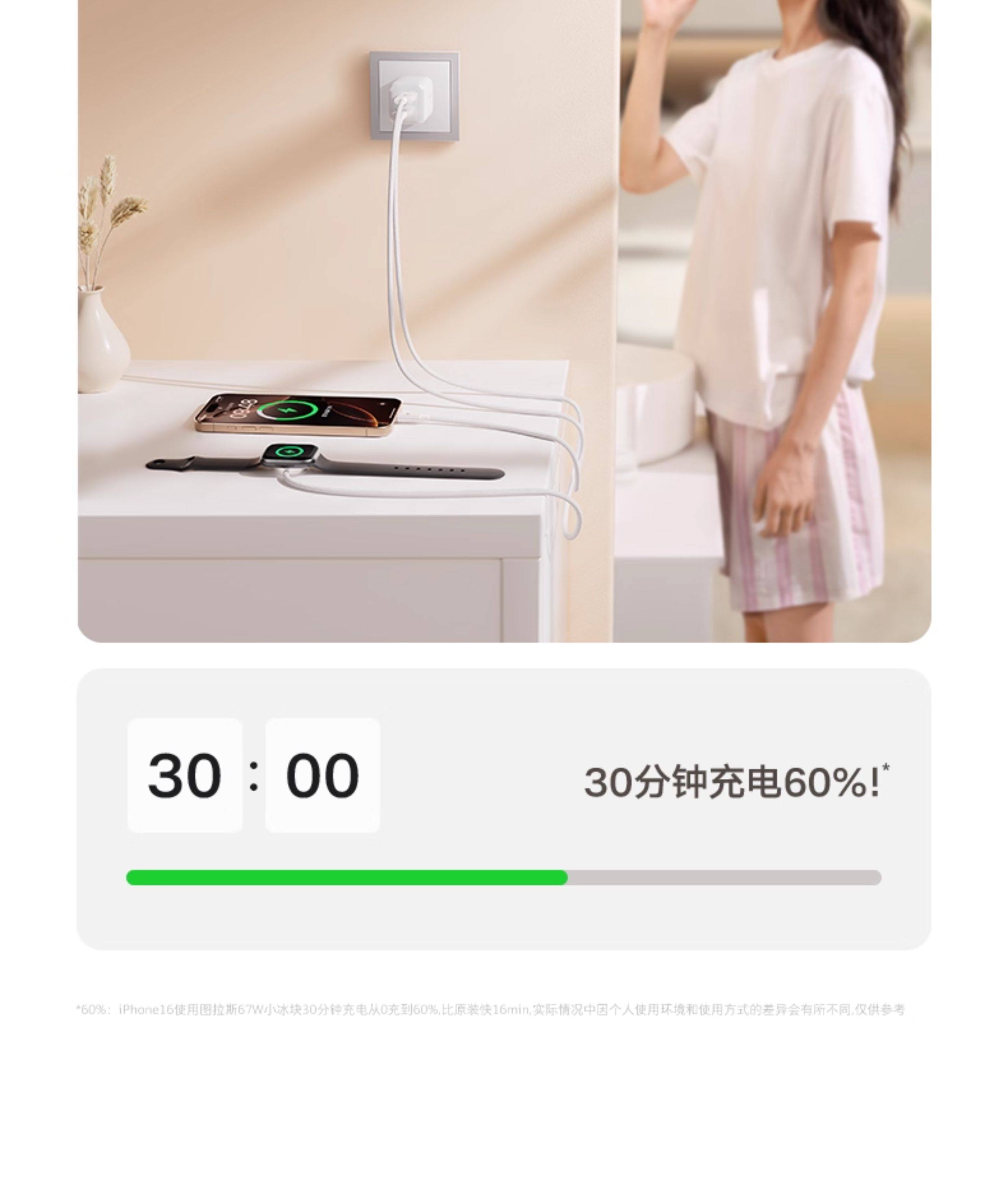 [Same Model as Papi Sauce] Tulas Small Ice Cube Lite 67W Is Suitable for Apple Charger Head, Fast Charging for Mobile Phones, iPhone 17 Pro Max, Gallium Nitride, Universal USB Data Cable with Multiple Dual Ports iPad