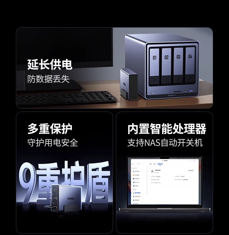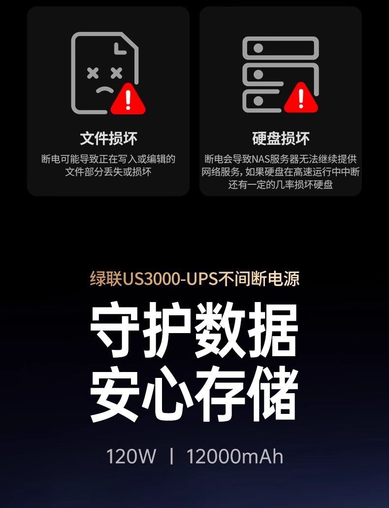 Greenlink Nas Private Cloud Ups Uninterruptible Power Supply 12000Mah 120W Home Storage Power Failure Protector Us3000 Automatic Identification Switch-On/Off Power Extension Hard Drive Protection Power Supply