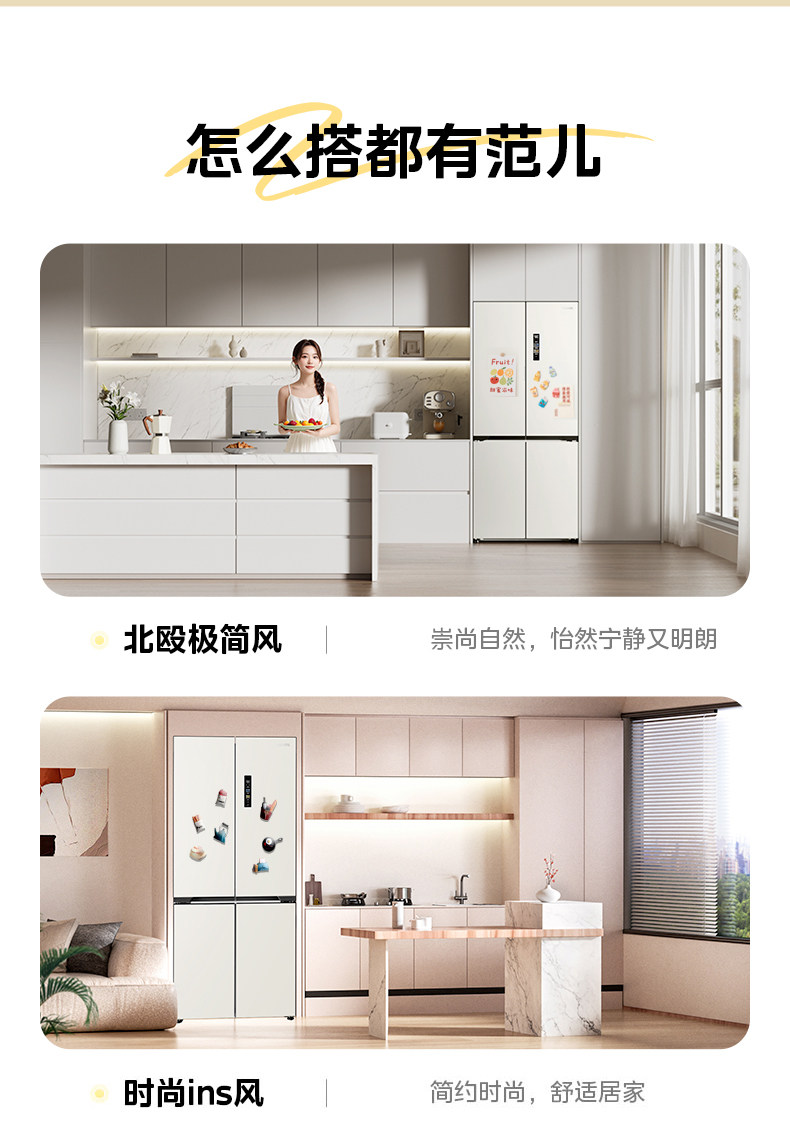 Midea Hualing Shenji 547 Dual-System Ultra-Thin Zero-Inset Household Refrigerator with Cross Double-Door and Large Capacity for Ice Making