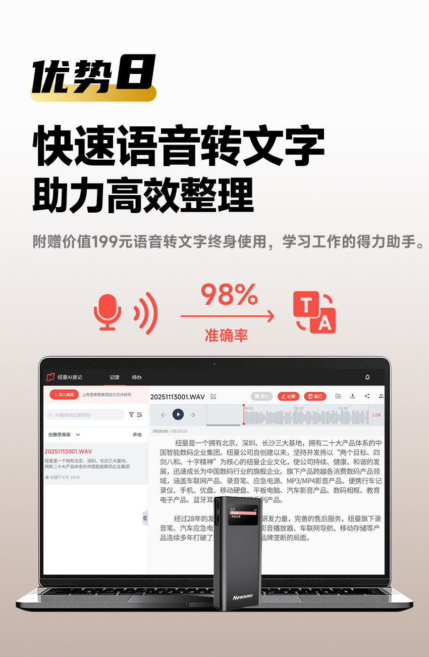 Newman G7 Voice Recorder Is a Professional High-Definition Noise-Cancelling Recording Device That Can Convert Audio to Text, with Large Capacity, a Portable Tool for Lawyers