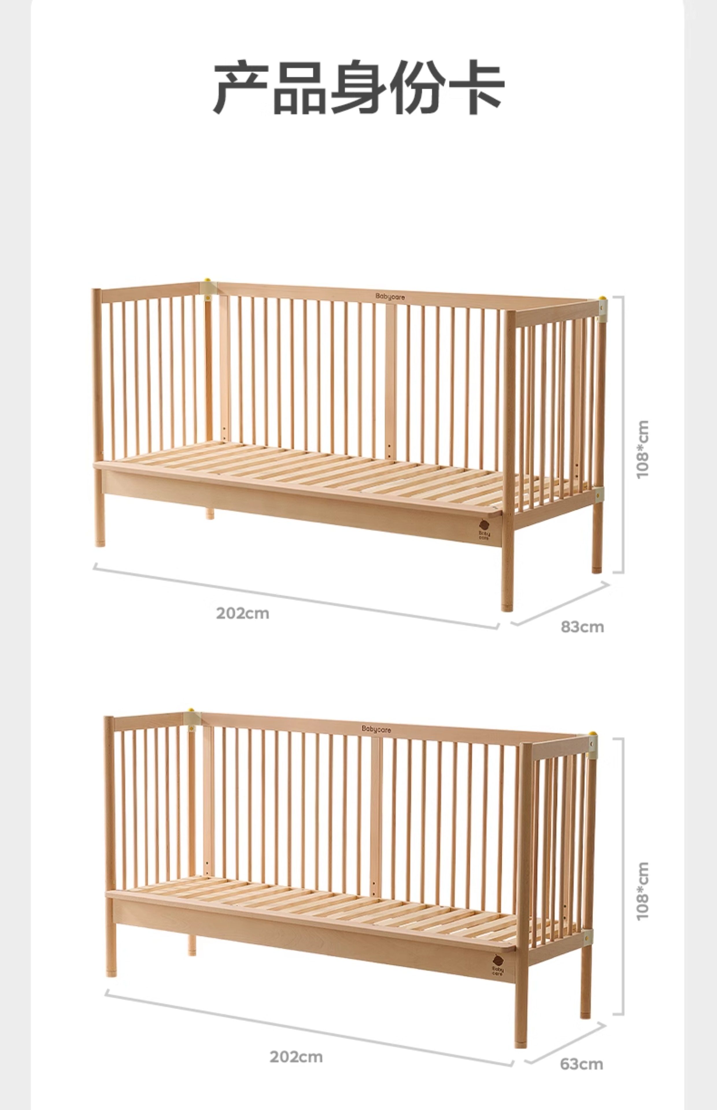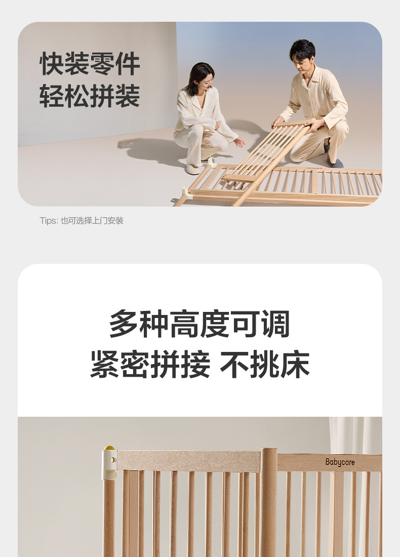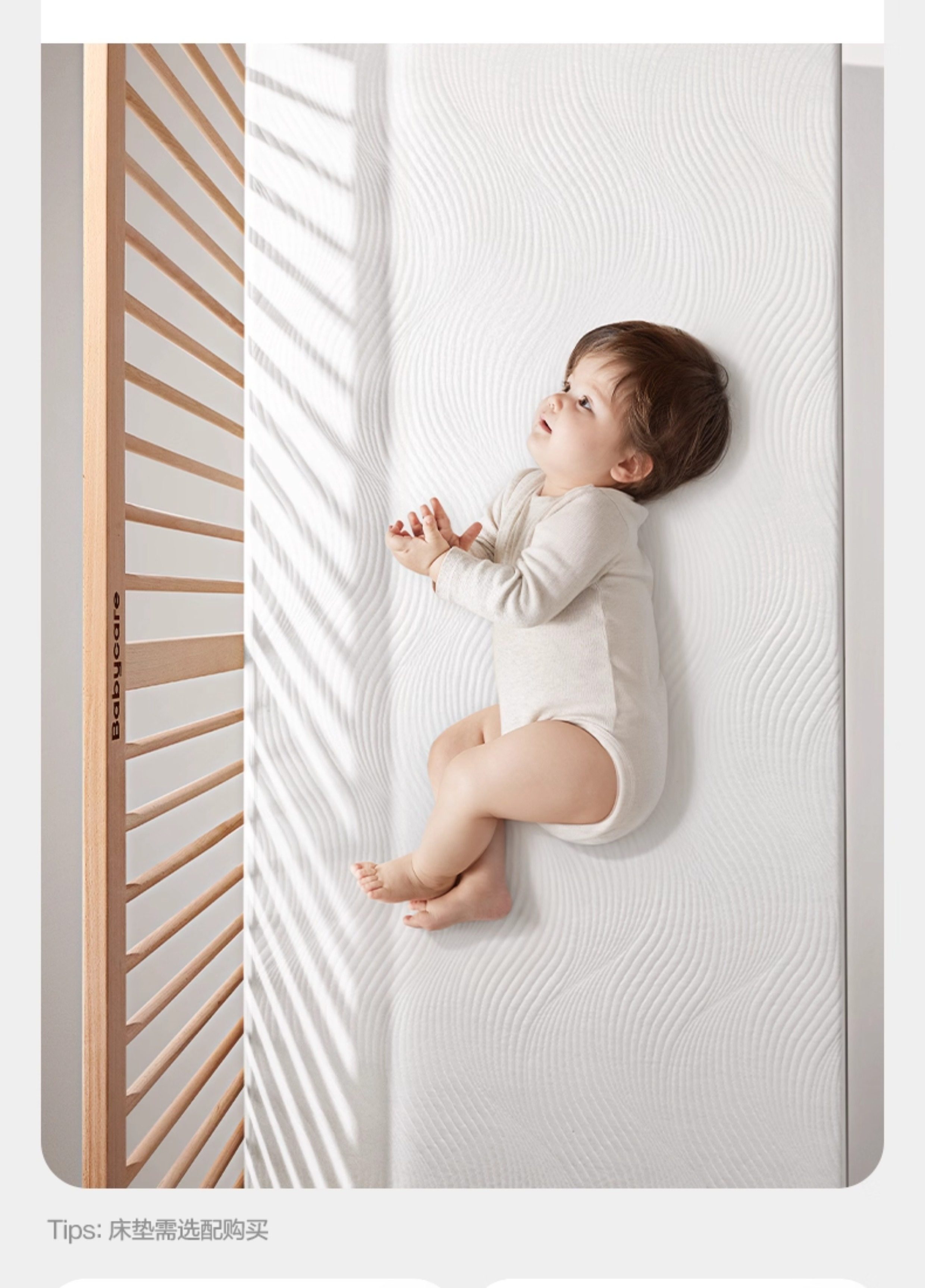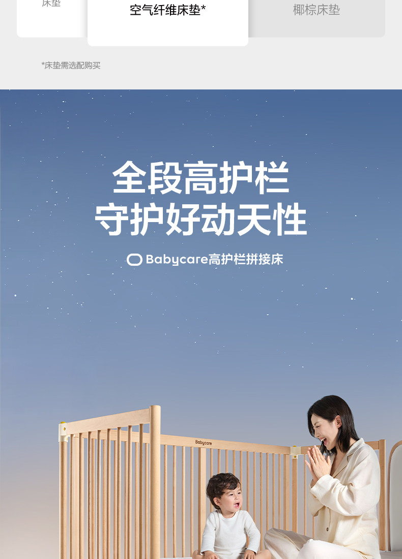 Babycare Crib with Seamless Splicing, High Guardrail, Widened Bedside, Paint-Free Solid Wood, Suitable for Adults to Sleep In, Children's Bed