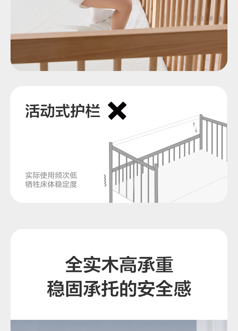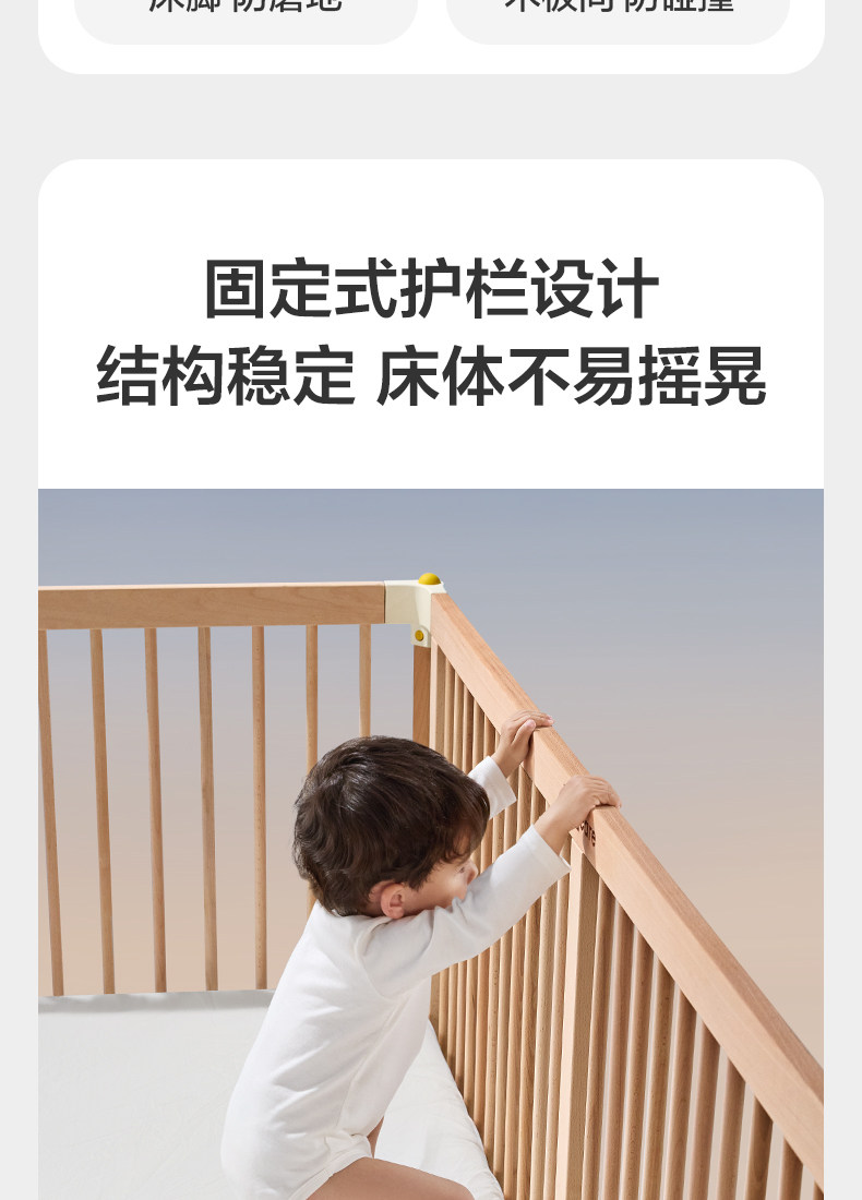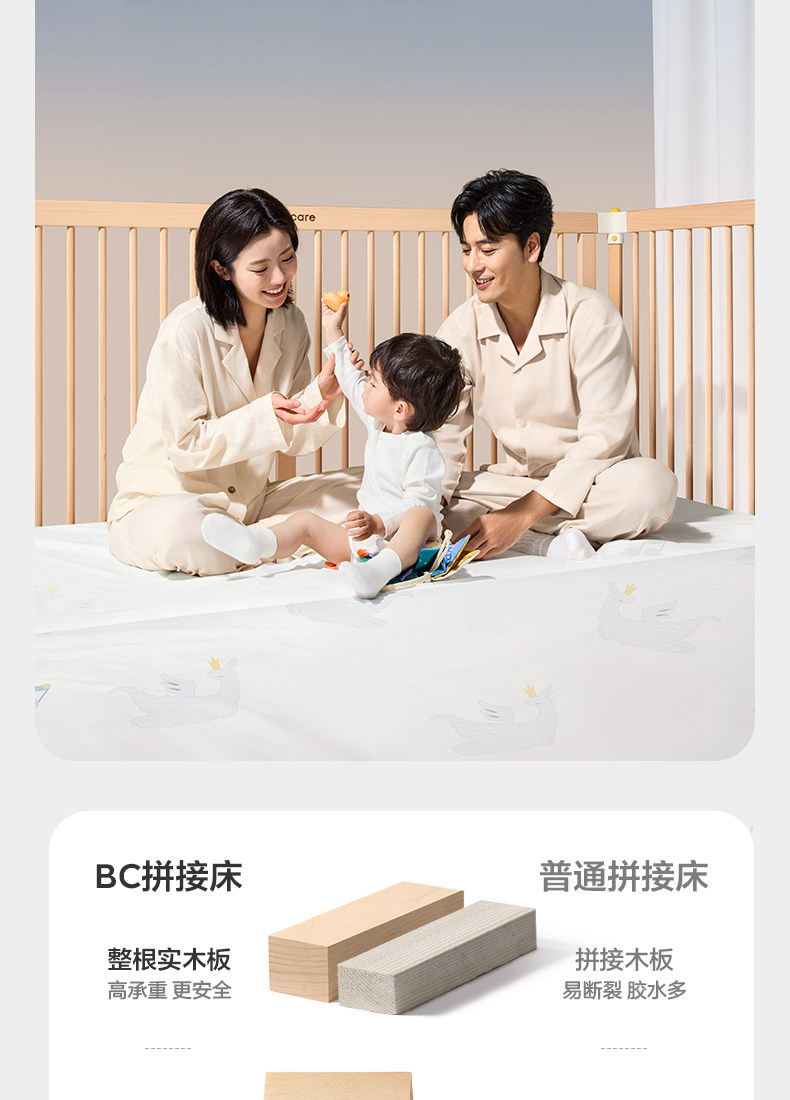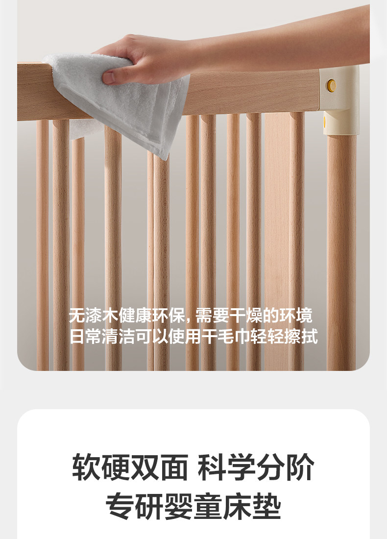 Babycare Crib with Seamless Splicing, High Guardrail, Widened Bedside, Paint-Free Solid Wood, Suitable for Adults to Sleep In, Children's Bed