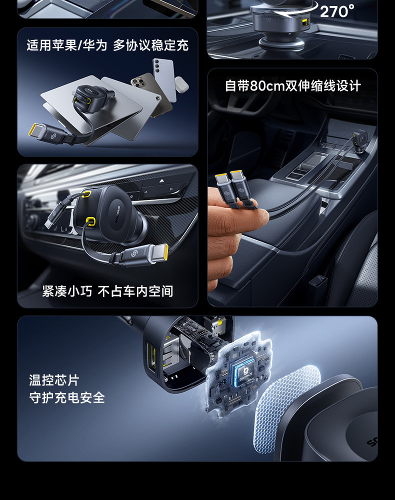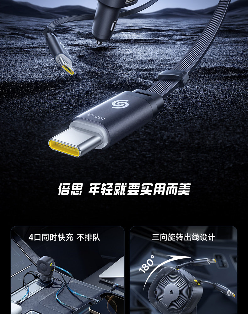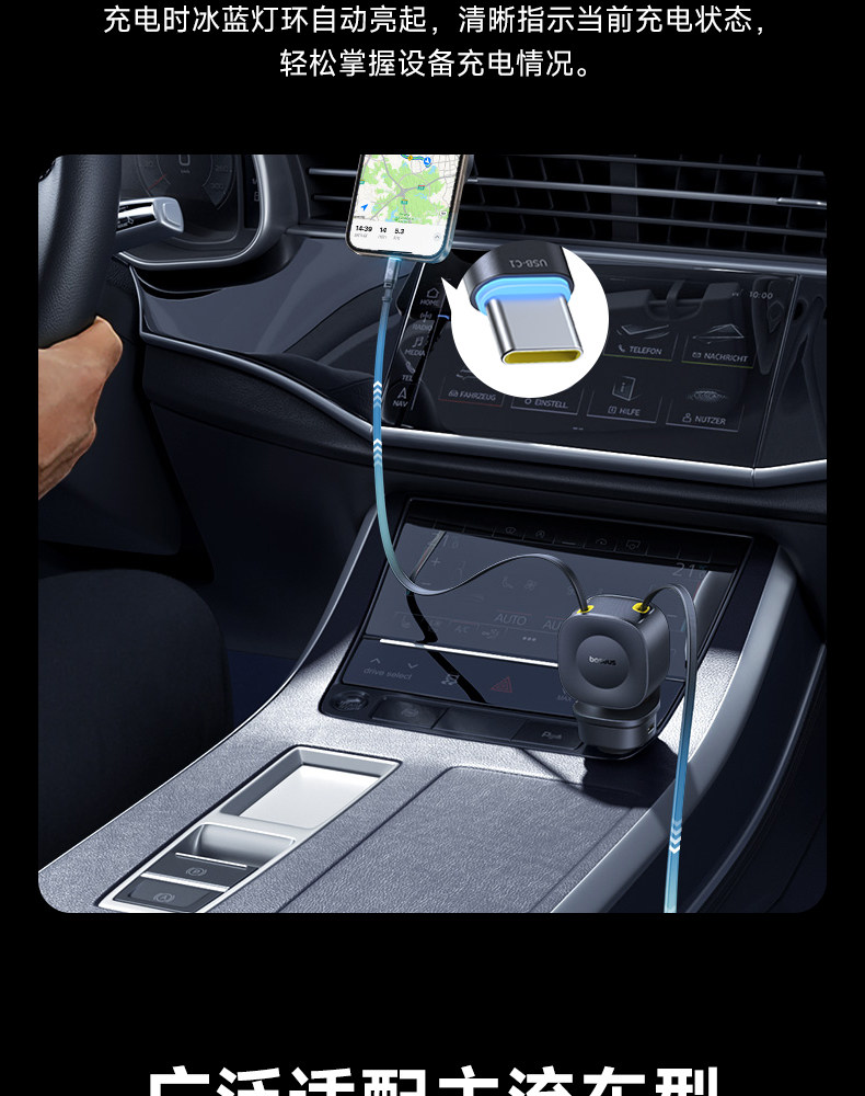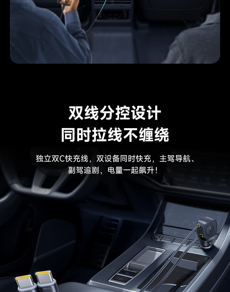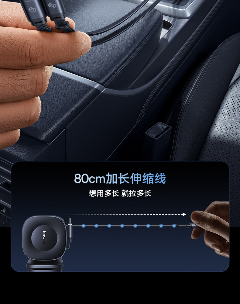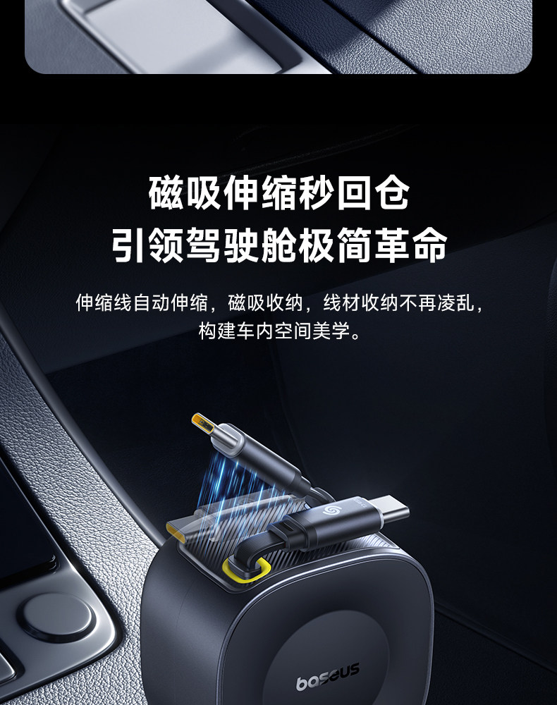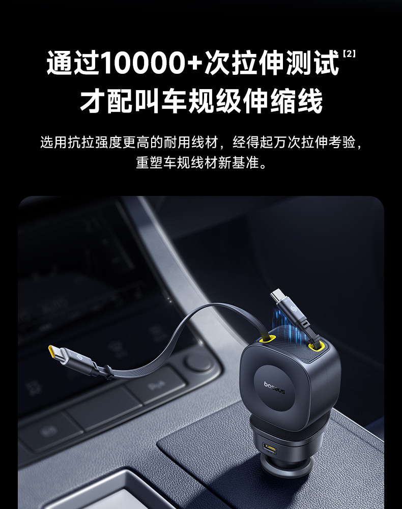 Baseus 2025 New Car Charger Super Fast Charging Comes with Retractable Cable Car Charging Cigarette Lighter Conversion Plug
