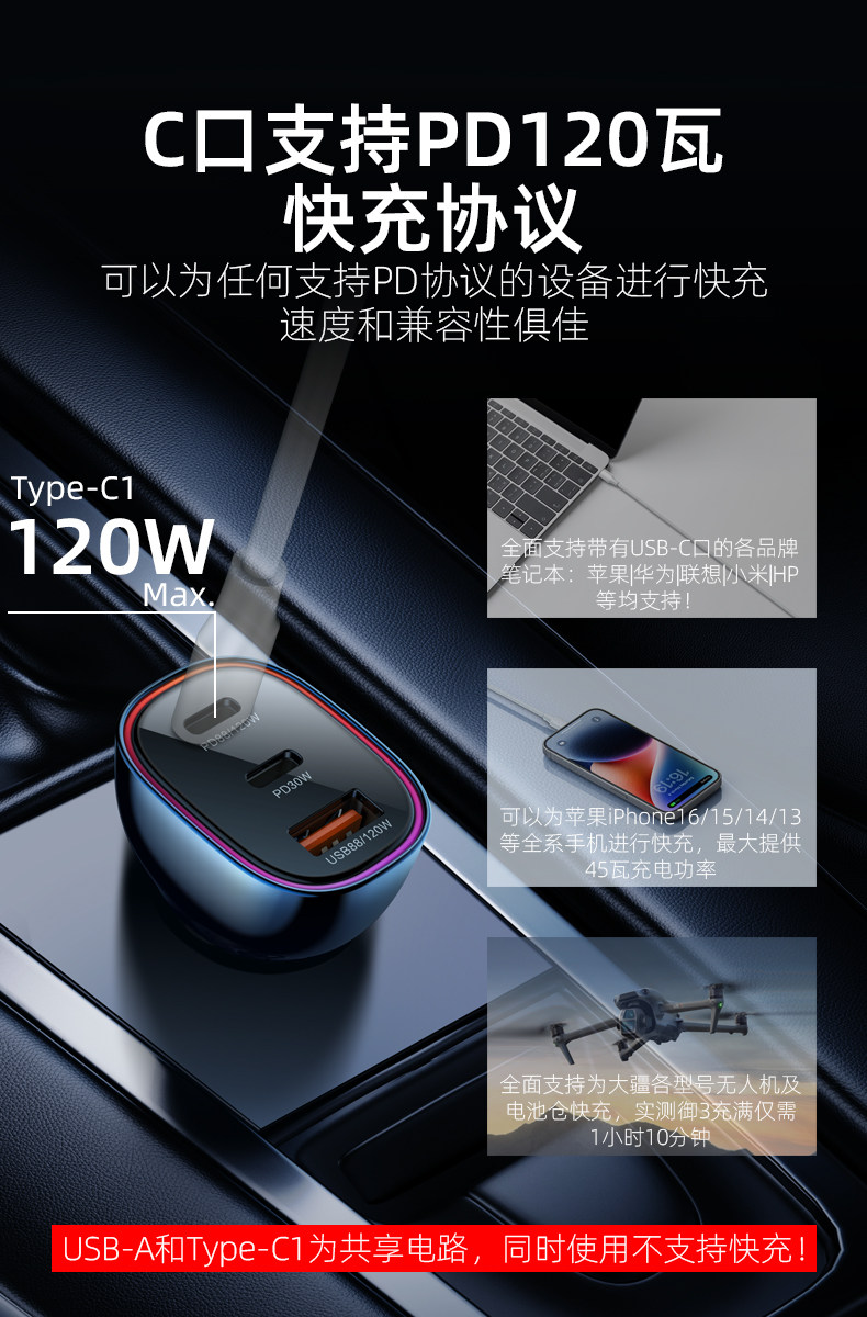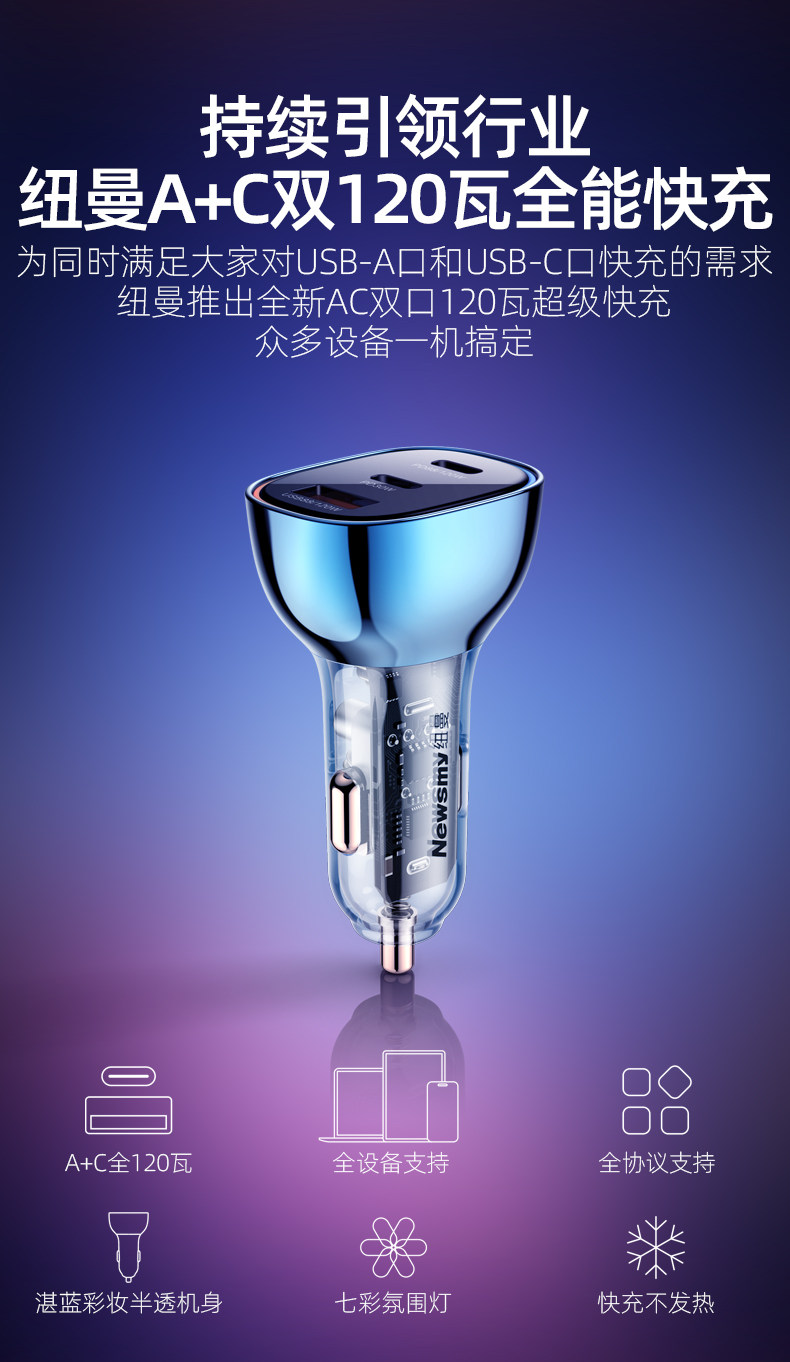 Newman Pd120 Watt Car Charger Super Fast Charging for Laptops, Drones, Huawei, Xiaomi, Apple Car Charger 100