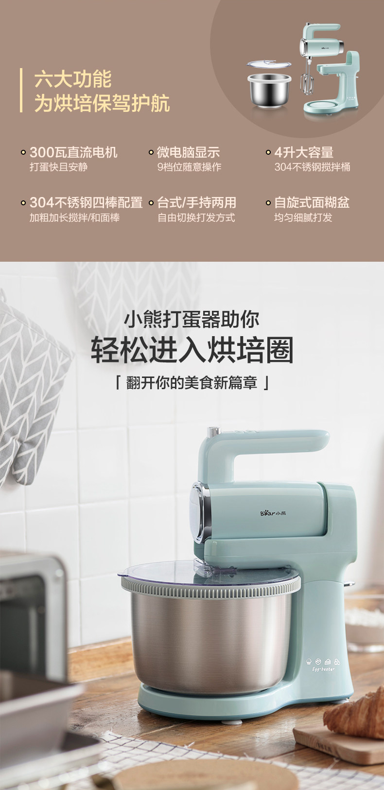 Bear Electric Egg Beater for Home Baking, Desktop Egg Mixer, Fully Automatic Cream Whipper, Blender
