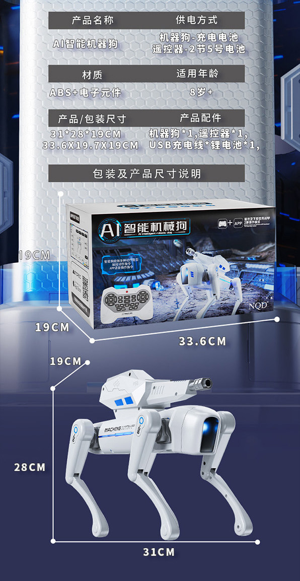 | Color Classification | Gift Recommendations✅Ai Handshake Intelligent Robot Dog-With Water Bomb Turret/30,000 Water Bombs[Dual System 1000+ Programming/Remote Control Voice/Bionic Action]Technology Silver,Gift Recommendations✅Ai Handshake Intelligent Robot Dog-With Water Bomb Turret/60,000 Water Bombs[Dual System 1000+ Programming/Remote Control Voice/Bionic Action]Technology Silver,Gift Recommendations✅Ai Handshake Intelligent Robot Dog-With Water Bomb Turret/30,000 Water Bombs[Dual System 1000+ Programming/Remote Control Voice/Bionic Action]White,Gift Recommendations✅Ai Handshake Intelligent Robot Dog-With Water Bomb Turret/60,000 Water Bombs[Dual System 1000+ Programming/Remote Control Voice/Bionic Action]White,Gift Recommendations✅Ai Handshake Intelligent Robot Dog-With Water Bomb Turret/30,000 Water Bombs[Dual System 1000+ Programming/Remote Control Voice/Bionic Action]Black,Gift Recommendations✅Ai Handshake Intelligent Robot Dog-With Water Bomb Turret/60,000 Water Bombs[Dual System 1000+ Programming/Remote Control Voice/Bionic Action]Black,Ai Handshake Smart Robot Dog[Dual System 1000+ Programming/Remote Control Voice/Bionic Action]White |