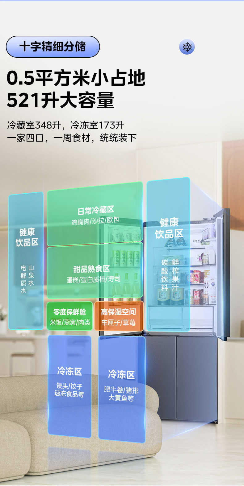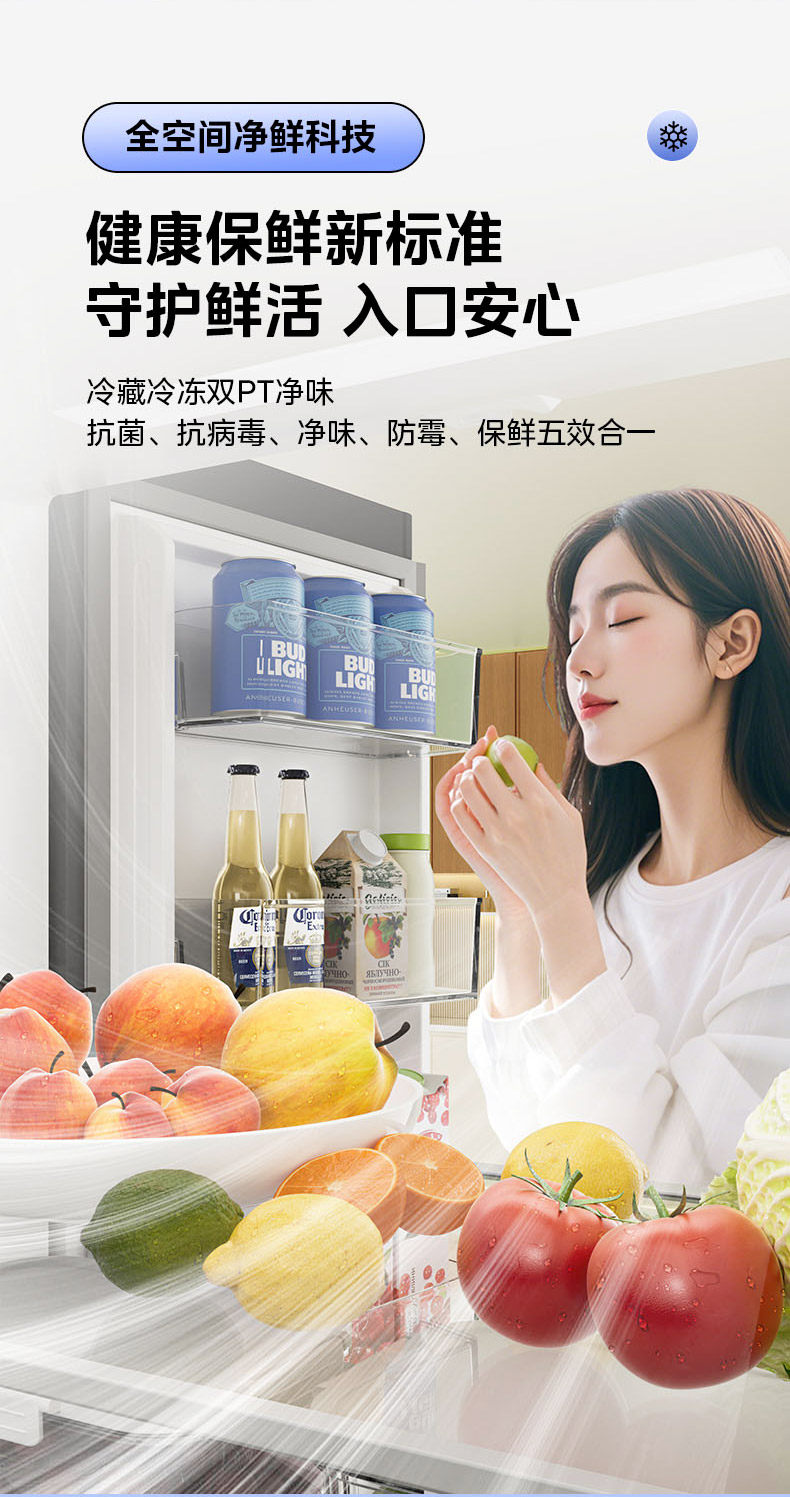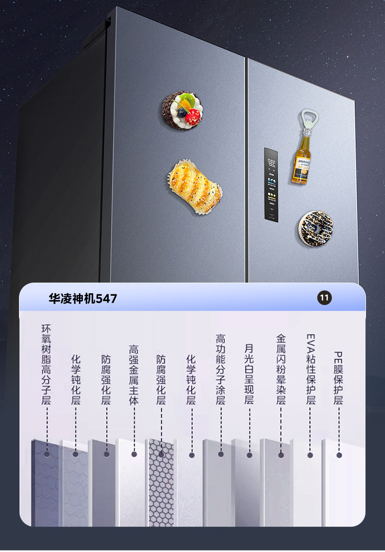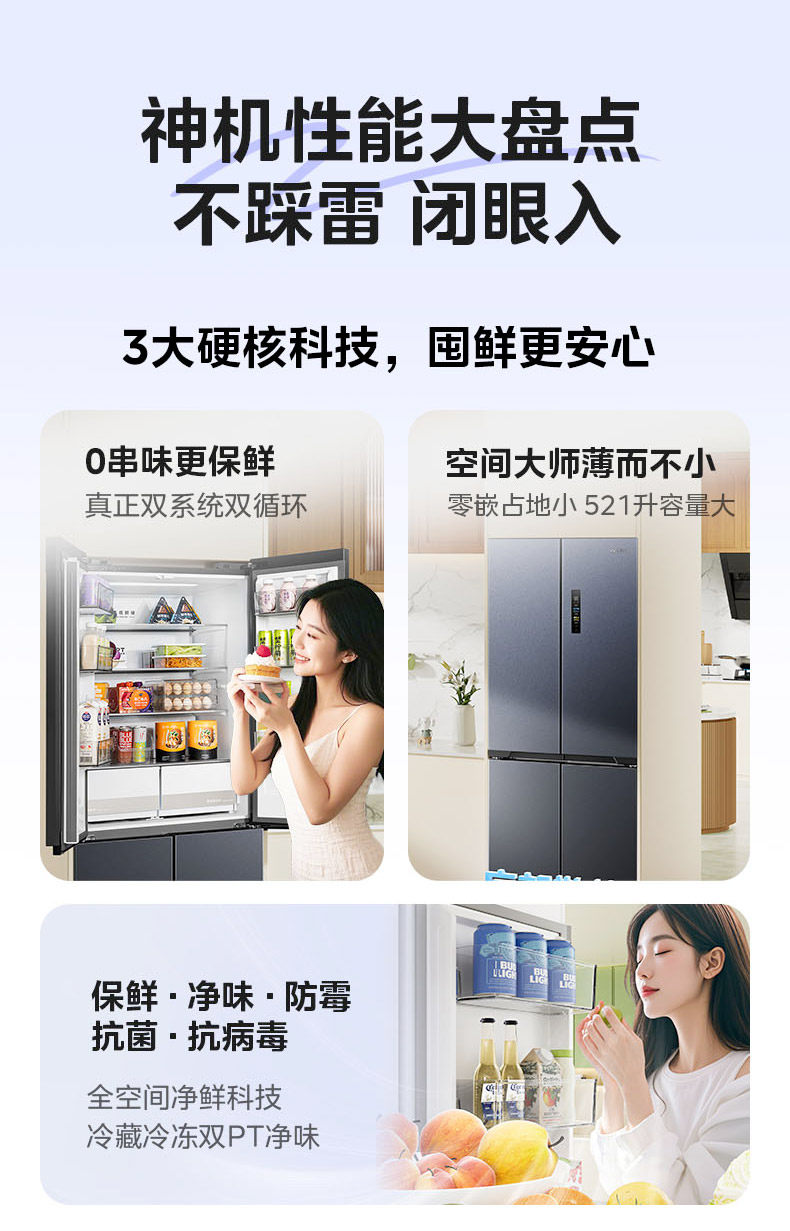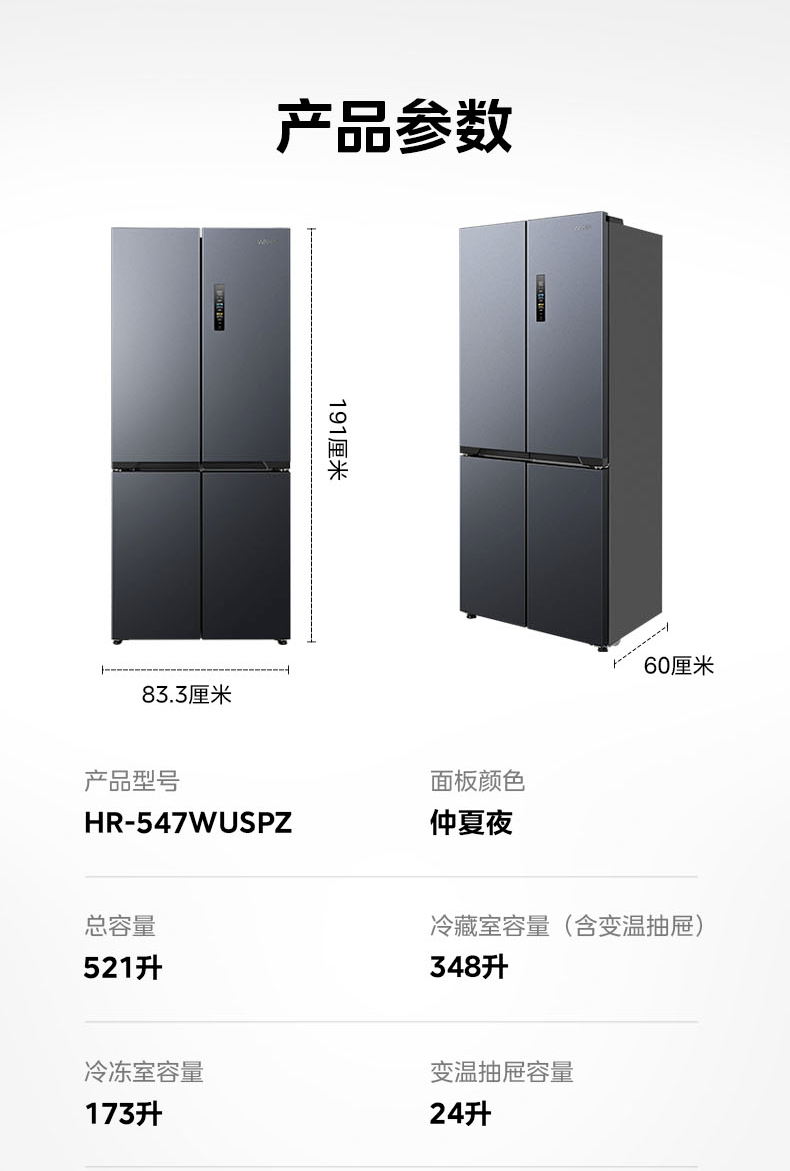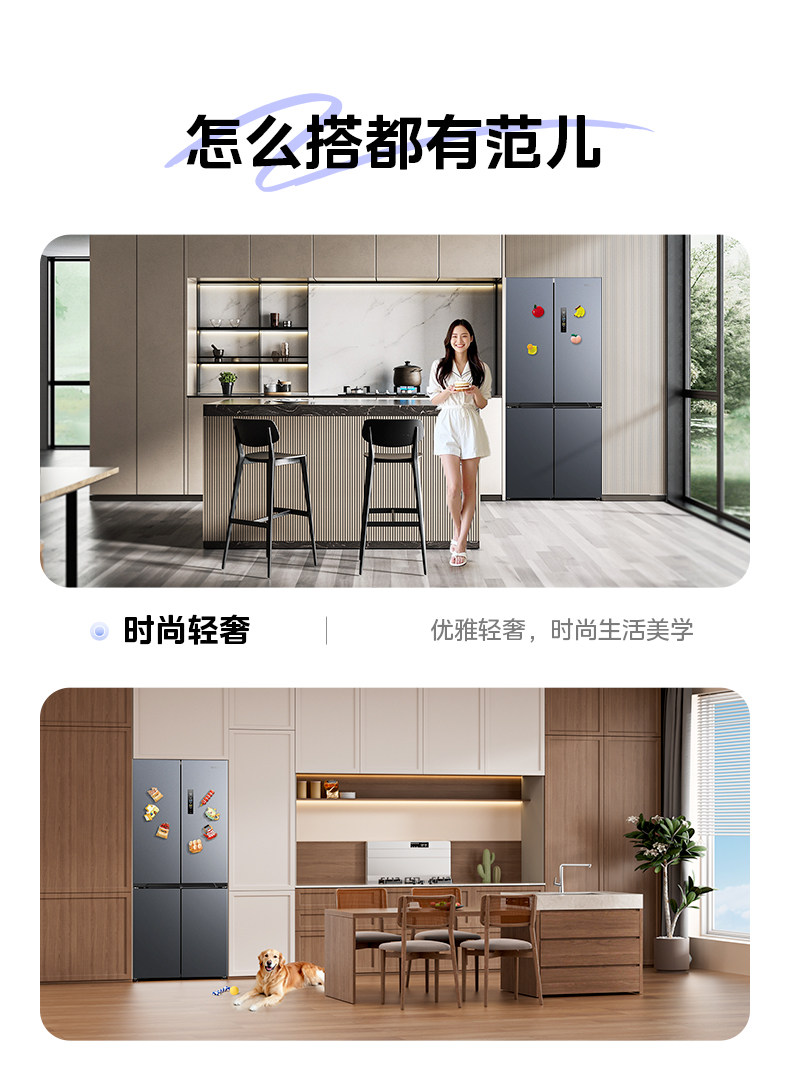 Midea's Hualing Shenji 547 Cross-Door Four-Door Dual-System Ultra-Thin Large-Capacity Zero-Inset Refrigerator, First-Class