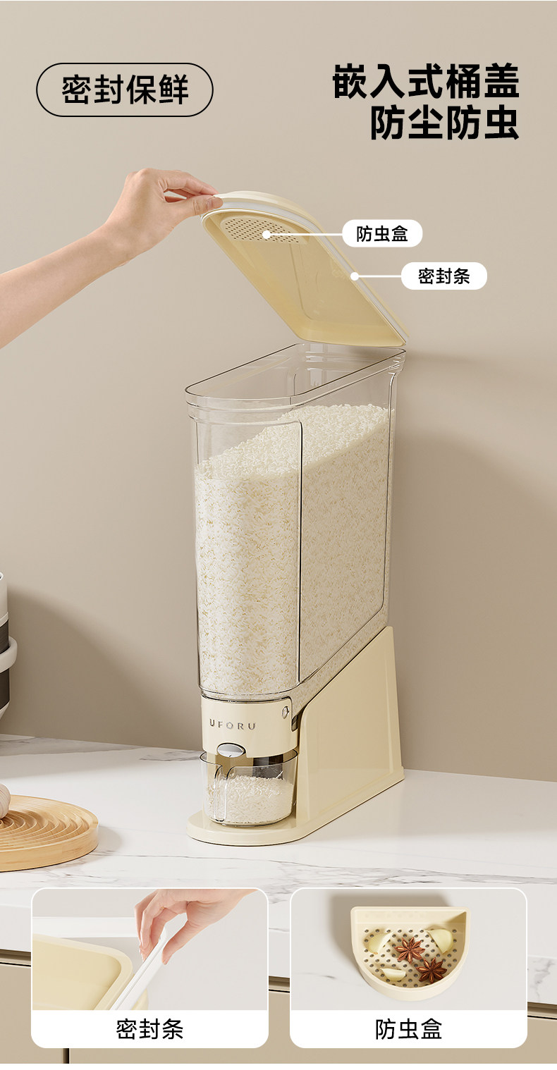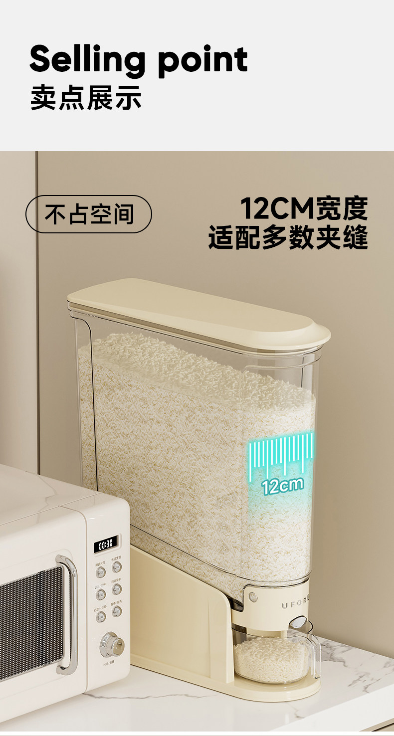 Press-Type Rice Container for Home Use, 2025 New Model, Insect-Proof, Moisture-Proof, Sealed Rice Storage Tank, Gap Storage Food-Grade Rice Box