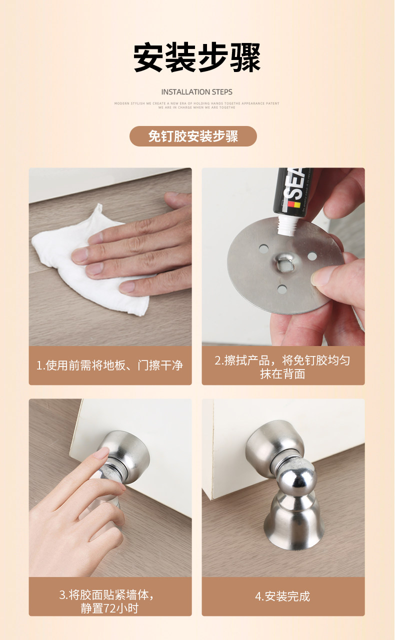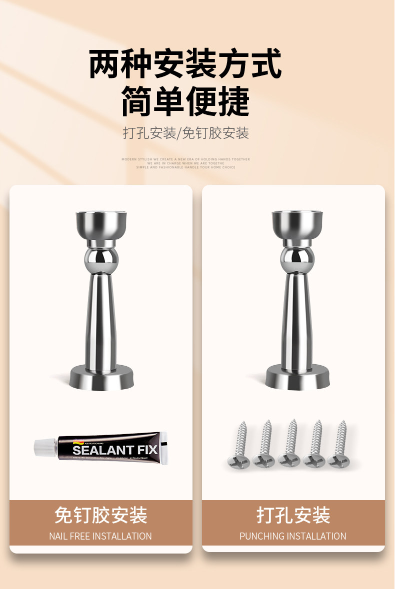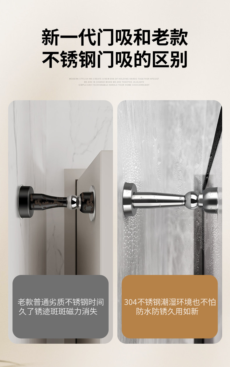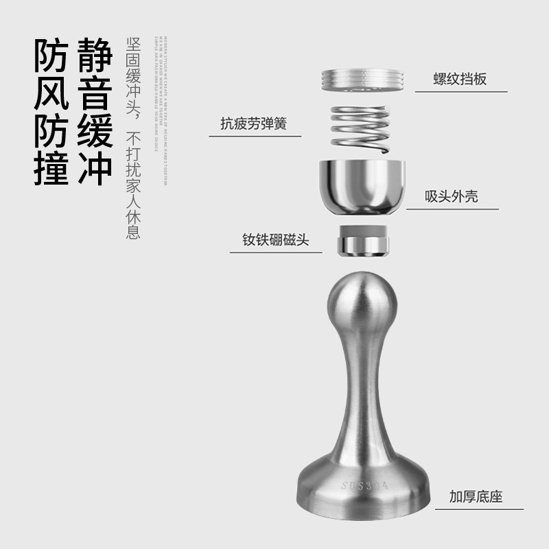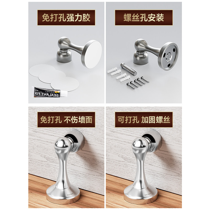 304 Stainless Steel Door Stopper, No-Drill Installation, New Model, Door Back Suction, Door Holder, Strong Magnet, Anti-Collision Buffer