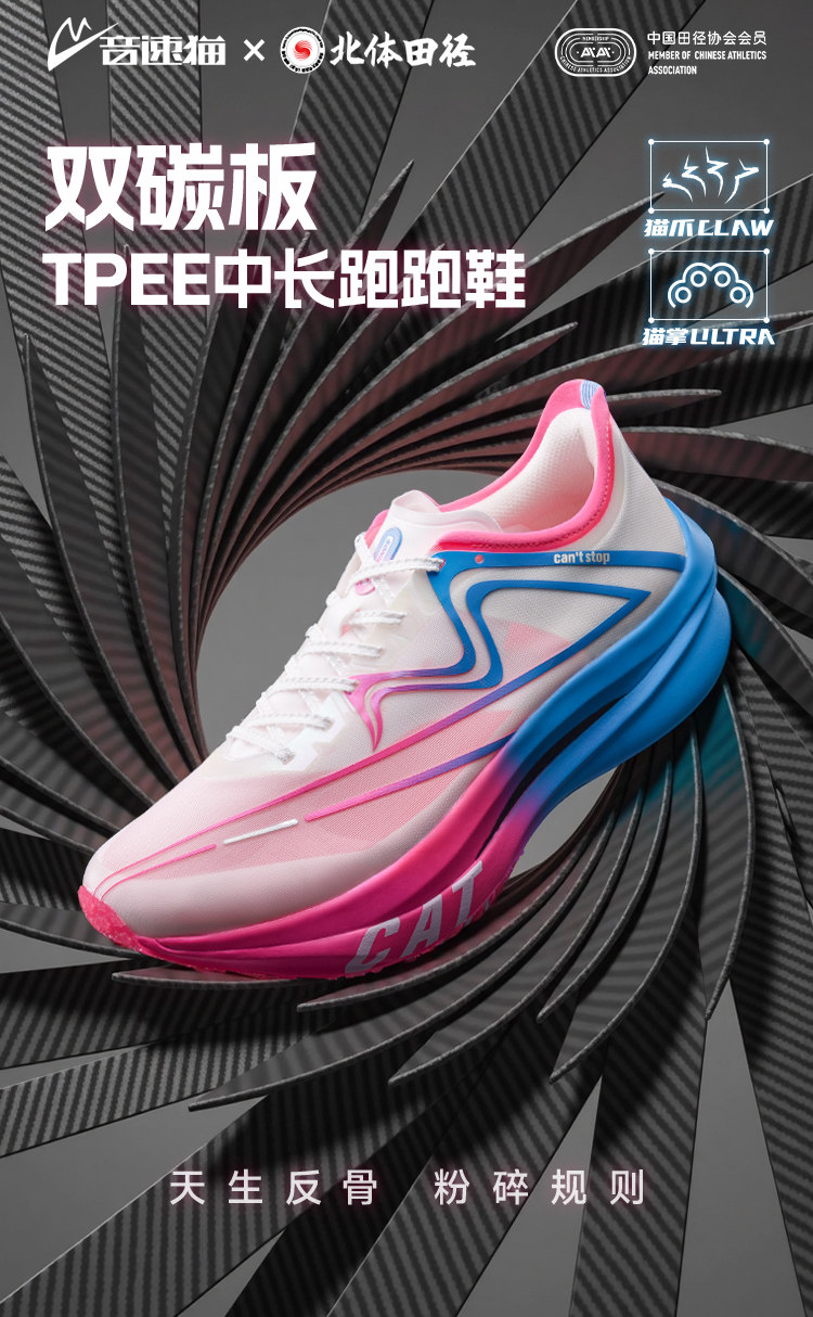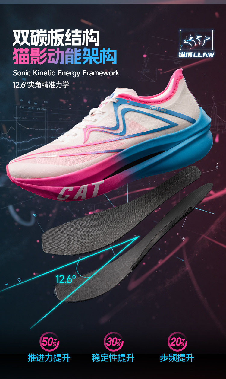 [North Sports Joint Research]Sonic Cat Addictive Running Shoes with Double Carbon Plate Tpee Professional Marathon Thickened Running Speed Shoes