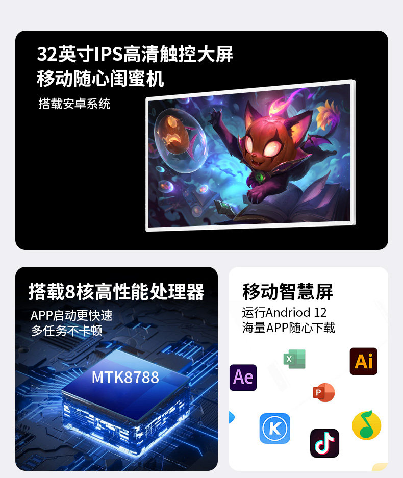 32inch Best Friend Device: Portable Tv with Movable Screen, 4K Screen, Overseas Version, Tablet, Fitness Screen Projection, All-In-One Monitor