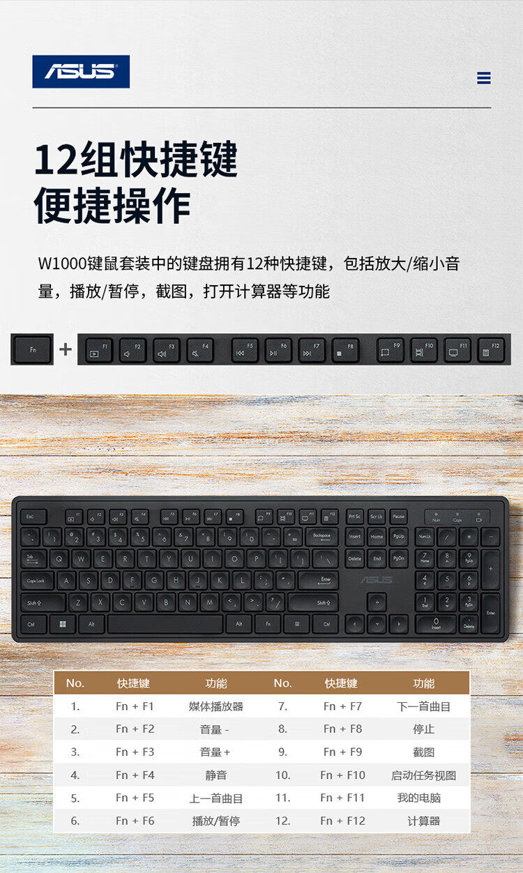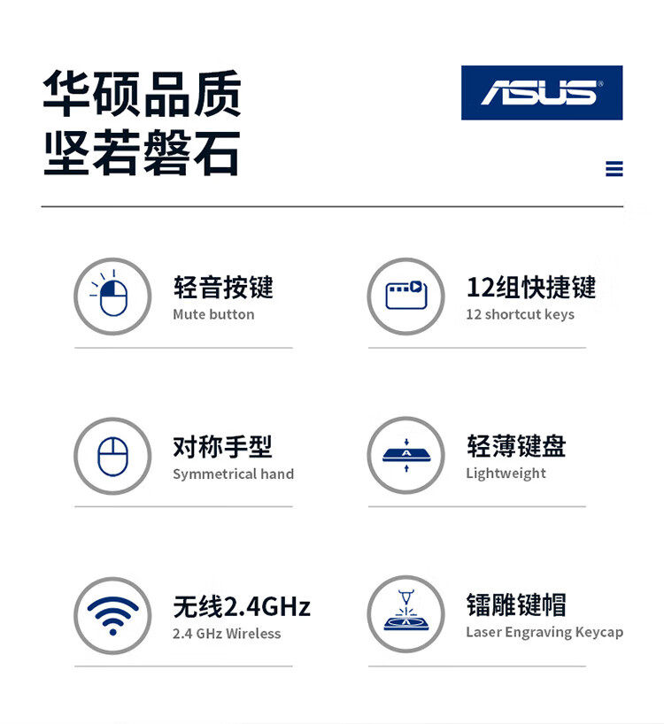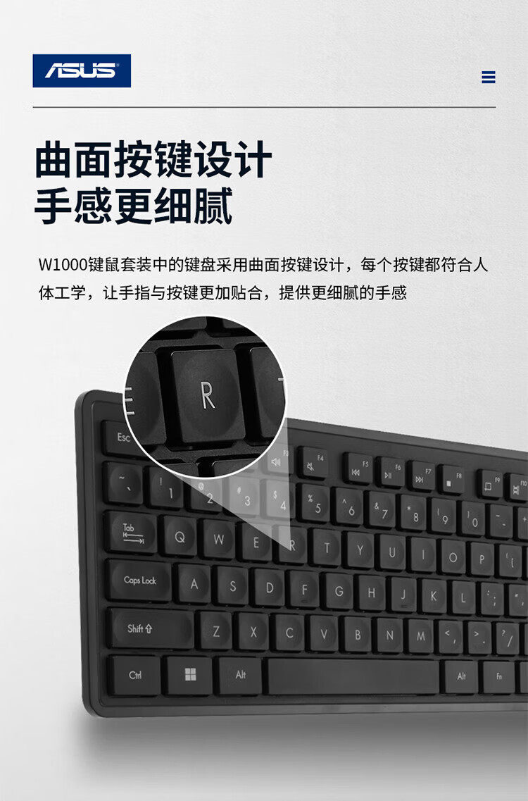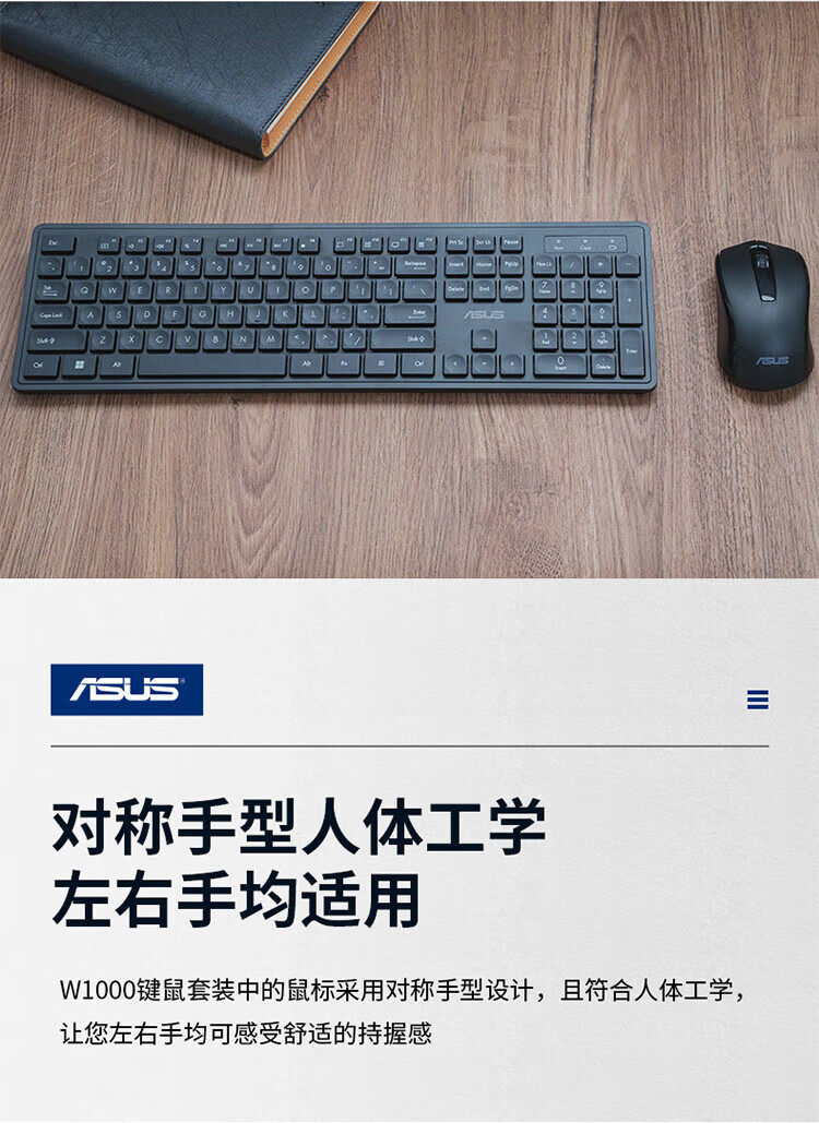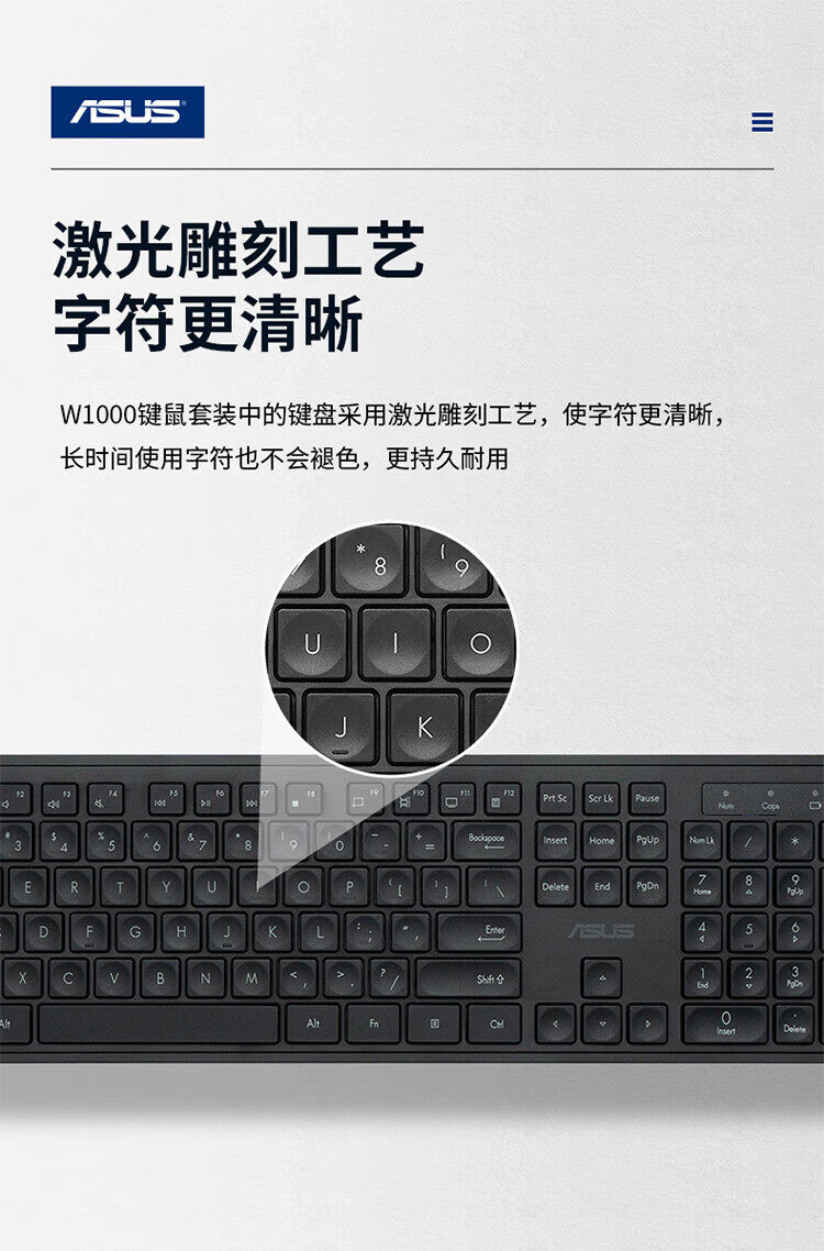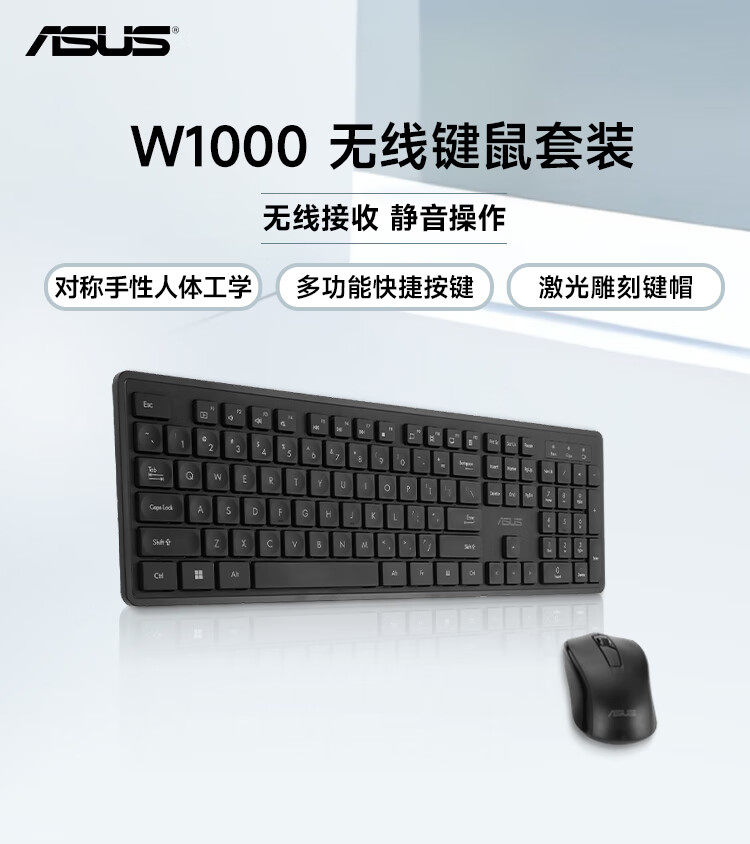 Asus/Asus Wireless Keyboard and Mouse Set W1000 Wireless Connection Laser Engraved Keycaps Km100 Office Keyboard and Mouse