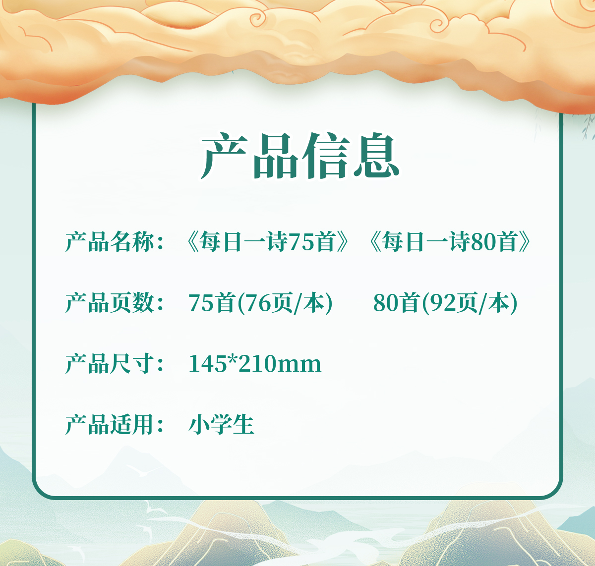 | Color Classification | 75 Poems a Day,80 Poems a Day,75 Poems + 80 Poems a Day[2 Books],75+ Read, Write, and Memorize Ancient Poems Daily,80+ Daily Reading and Writing of Ancient Poems 80,75+80 Daily + 75+80 Ancient Poems,75+80+ Good Words, Good Sentences and Good Paragraphs Every Day,75+80 Daily + Daily Morning Reading,75+80+ Beautiful Sentences Every Day,Daily Poem Dictation Notebook,75 Poems + 80 Poems + Dictation Book Per Day,75 Poems Per Day + Dictation Book of Poems Per Day,80 Poems Per Day + Dictation Book of Poems Per Day |