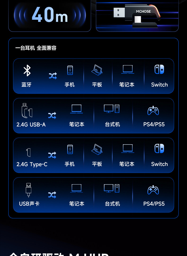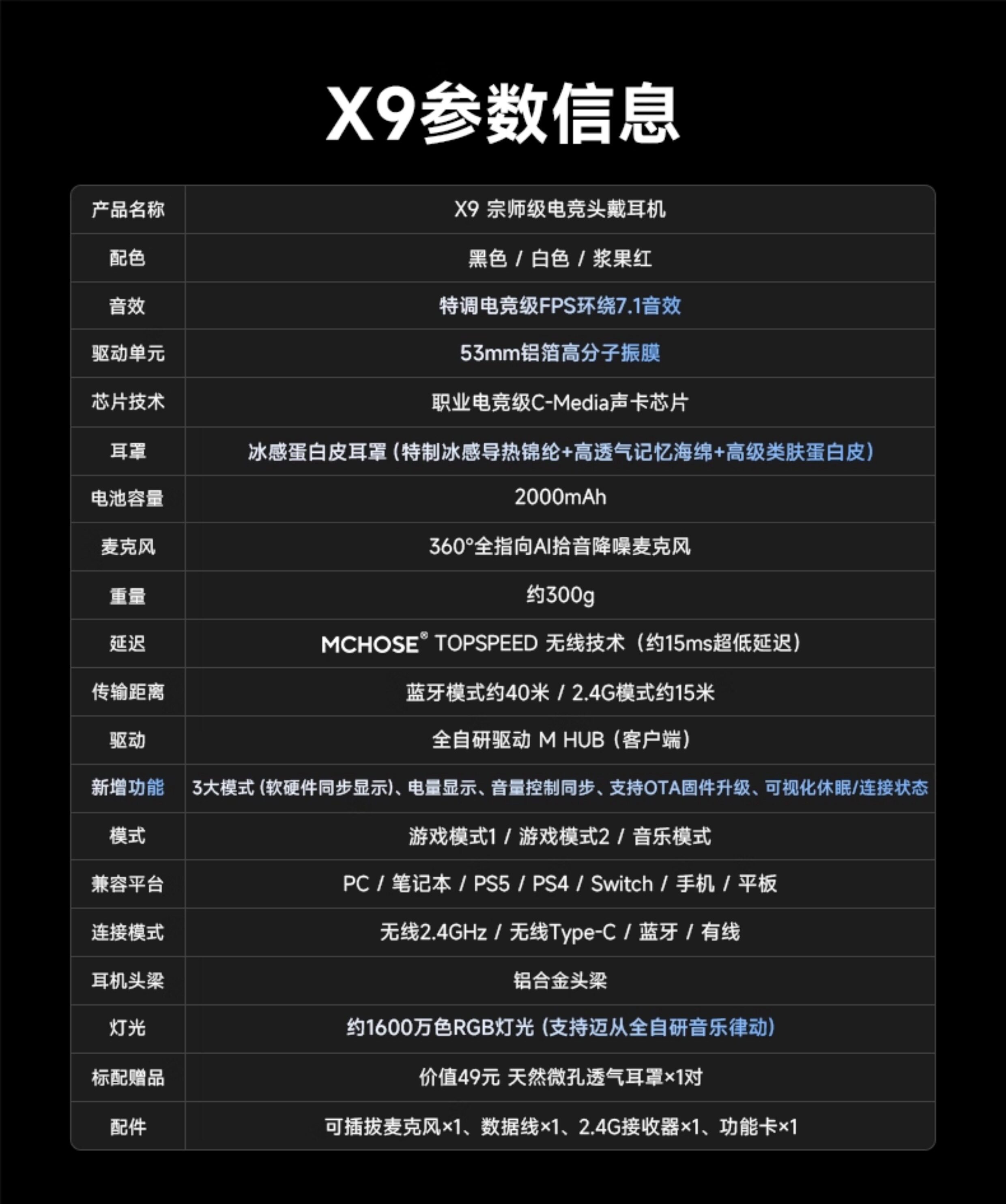 Mchose X9 Wireless Gaming Headset Bluetooth 2.4g E-Sports Headset Desktop Computer Four-Mode Three