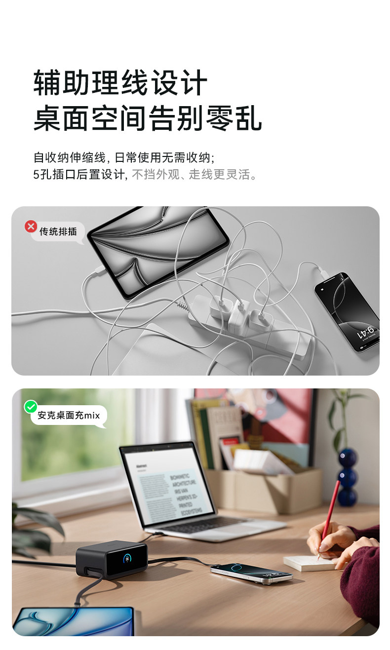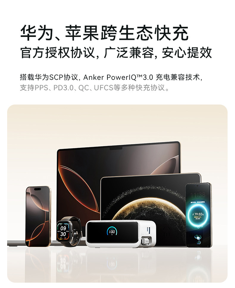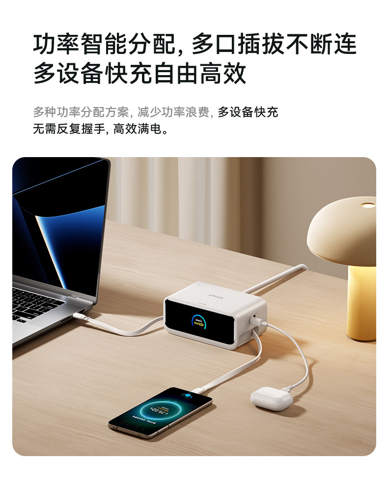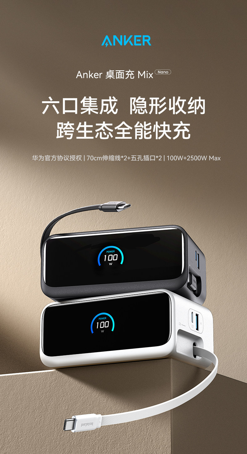 [Apple/Huawei Universal Charger]Anker 100W Desktop Charging Station Mix Retractable Cable Compatible with Huawei 66W Fast Charge 17 Apple 16 Tablet Laptop Gan Charger Socket
