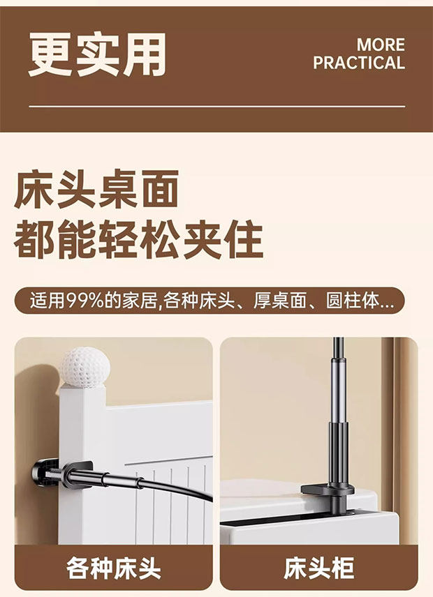 Bedside Phone Holder, Lazy Bed Stand, 2025 New Model, Bedside iPad Tablet Support Clip, for Watching Tv and Browsing Videos While Lying Down, Dormitory Universal Rotating Telescopic Fixed Clip