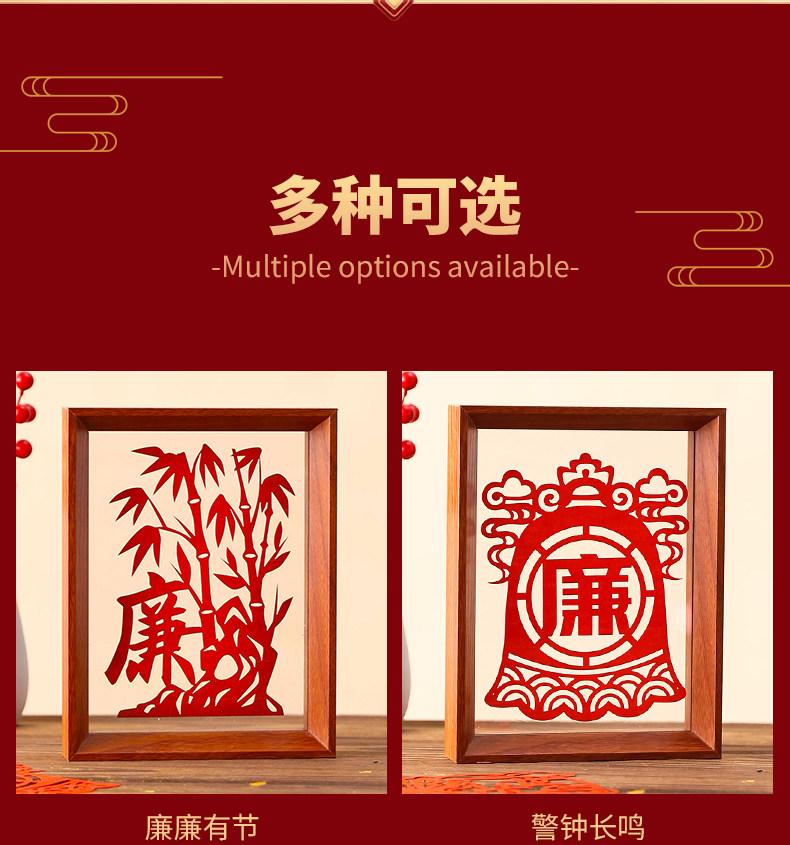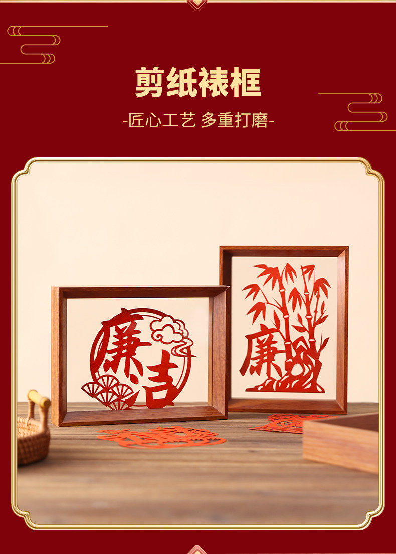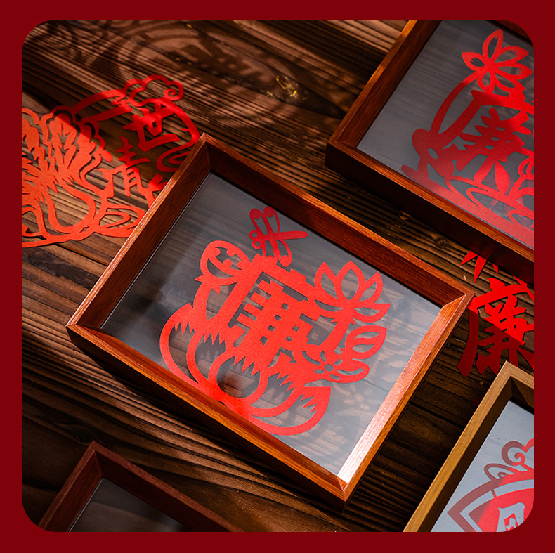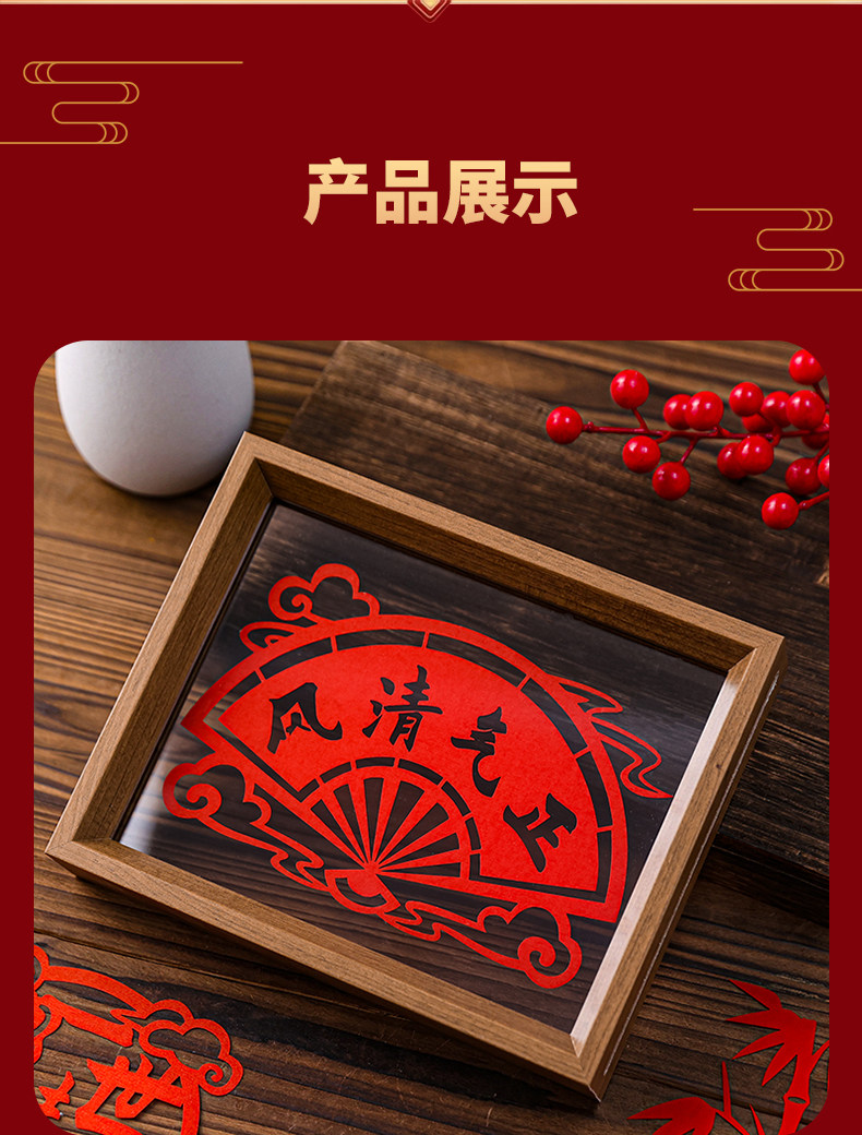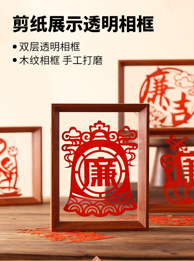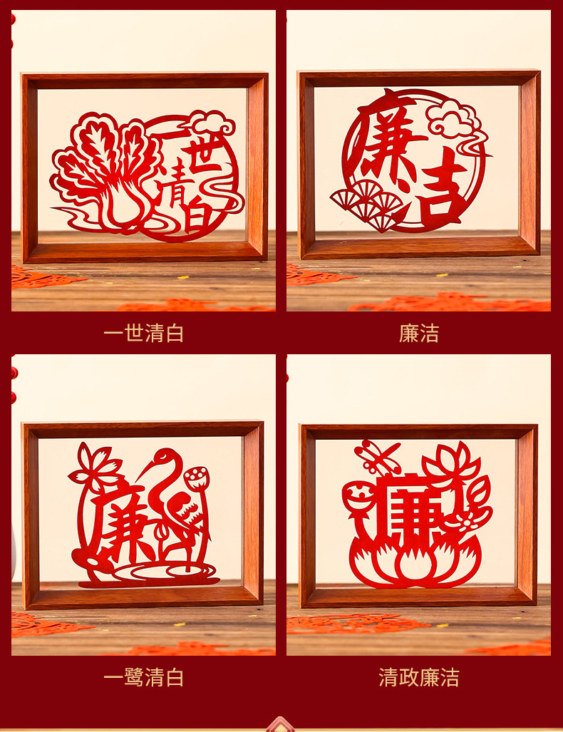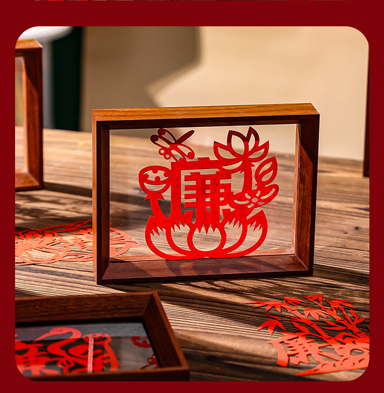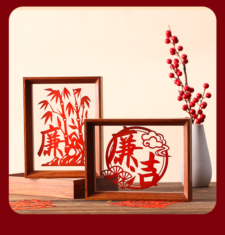 Corruption-Free Paper-Cut Artwork, Decorative Framed Painting, Chinese-Style National Characteristics, 8inch Double-Sided Transparent Display Finished Products for Table Display