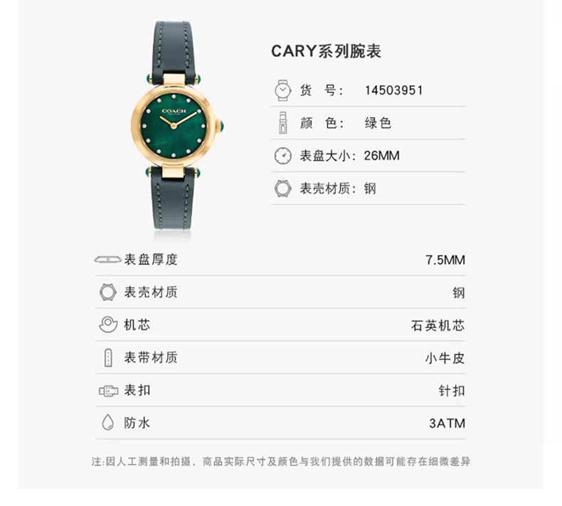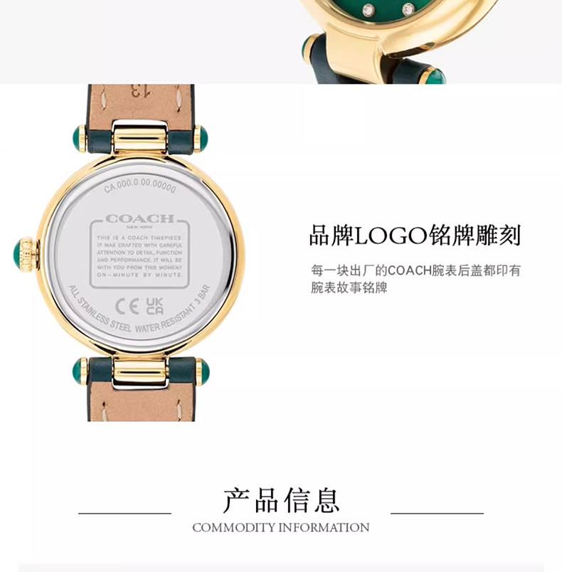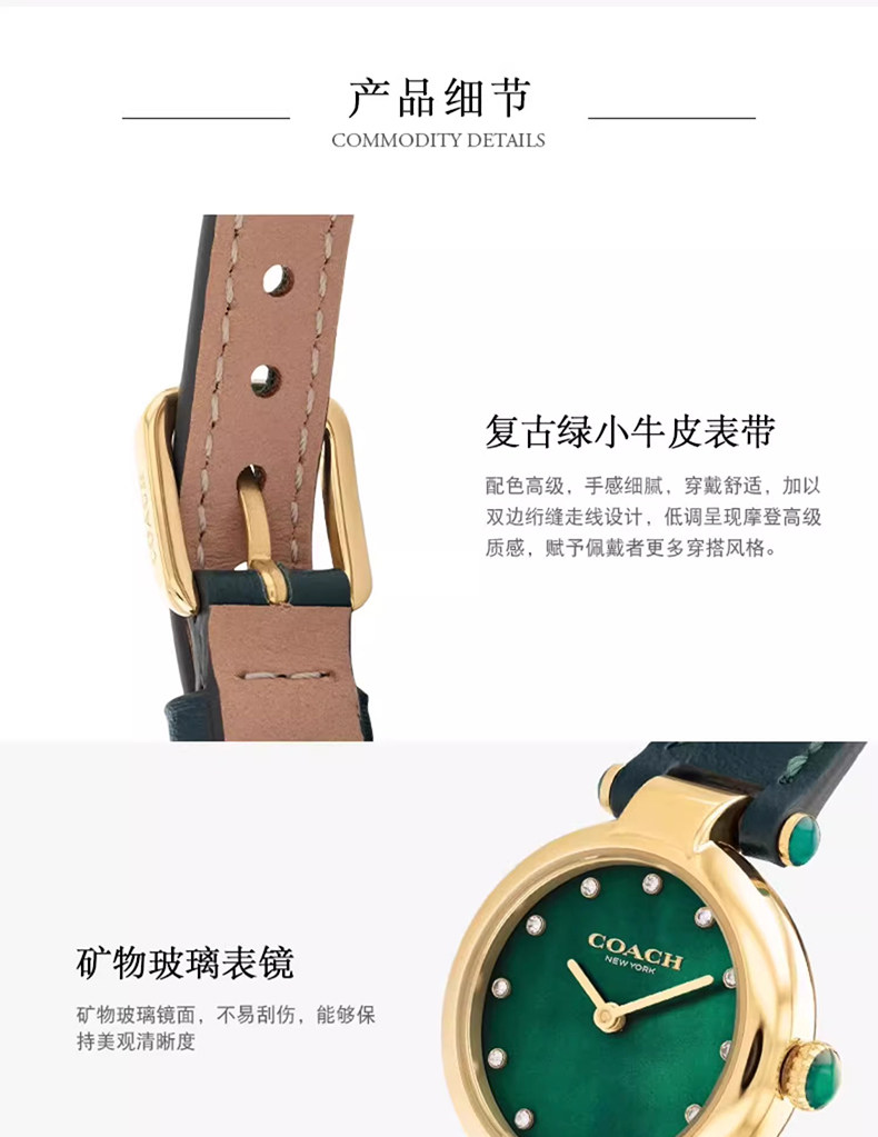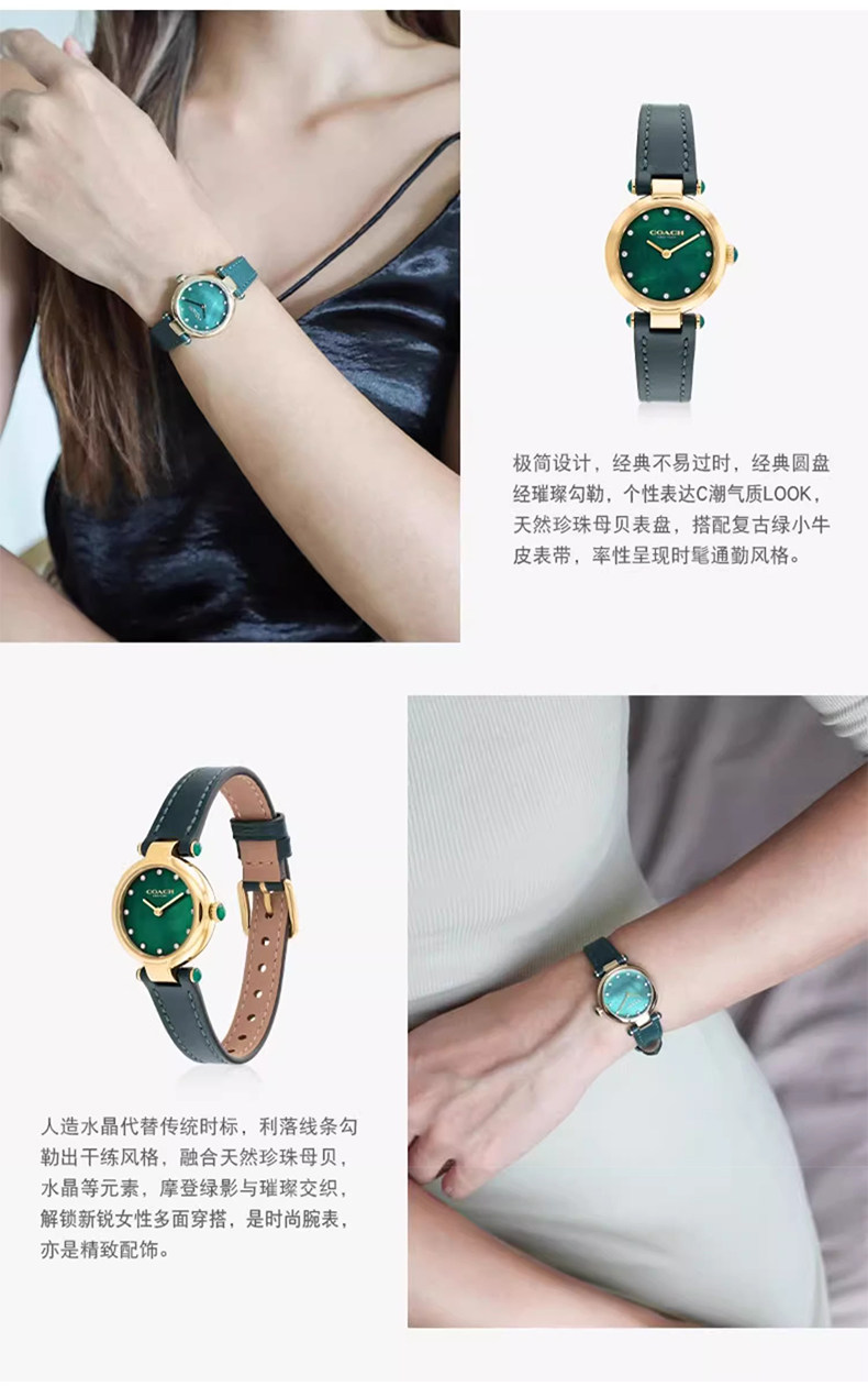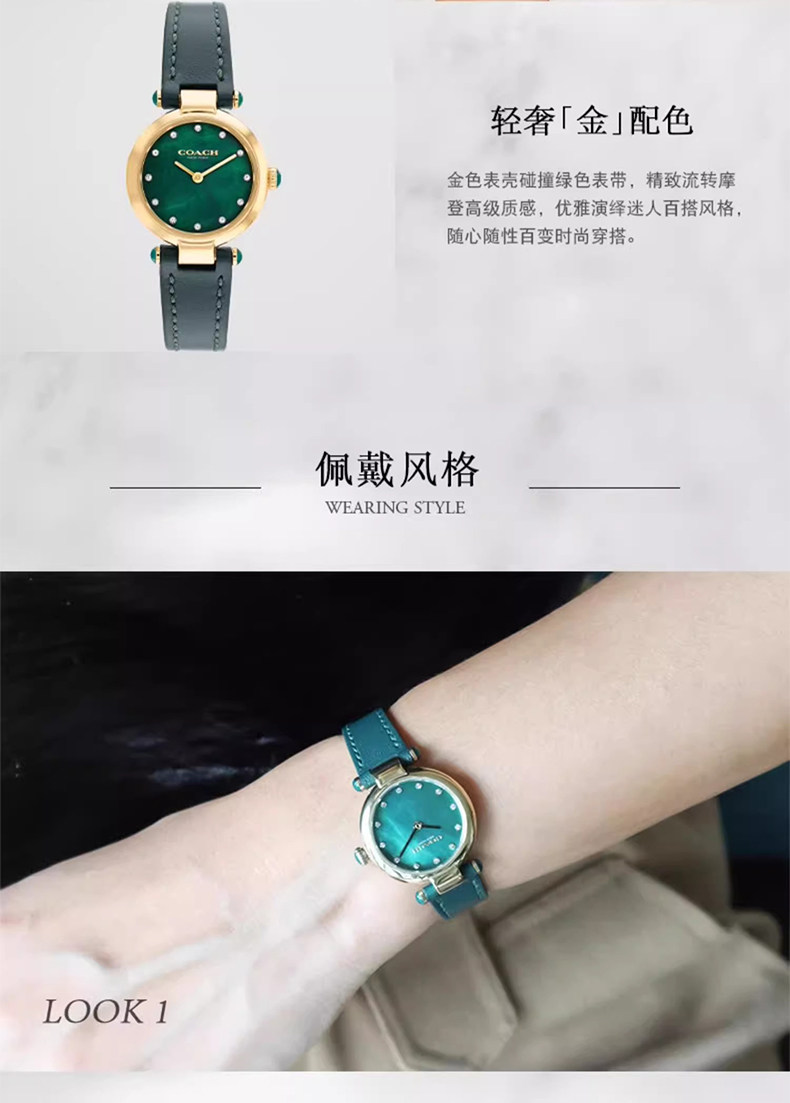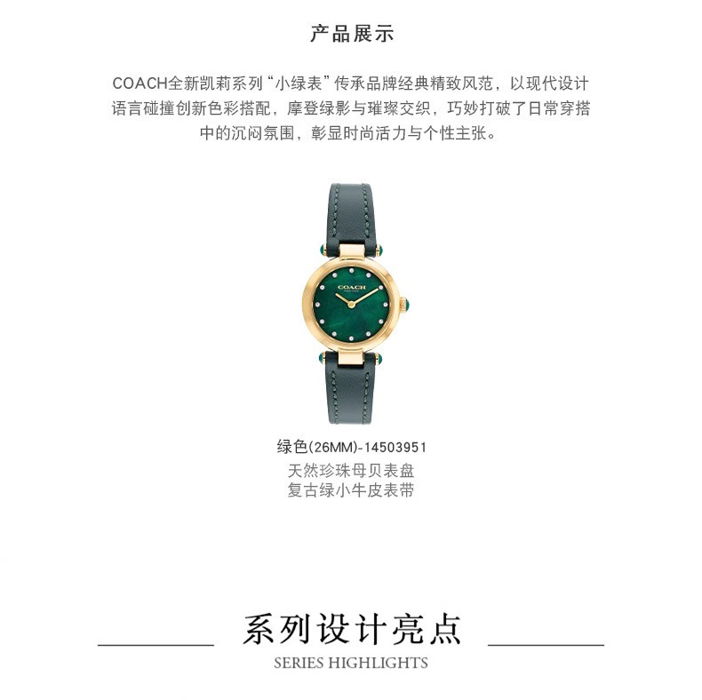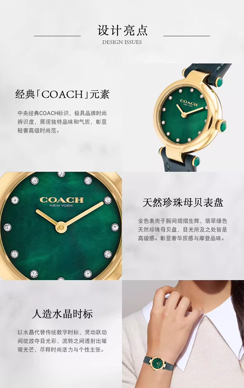 COACH Women's Watch Cary Small Green Watch Mother-Of-Pearl Dial with Diamonds Quartz Women's Watch Gift for Girlfriend