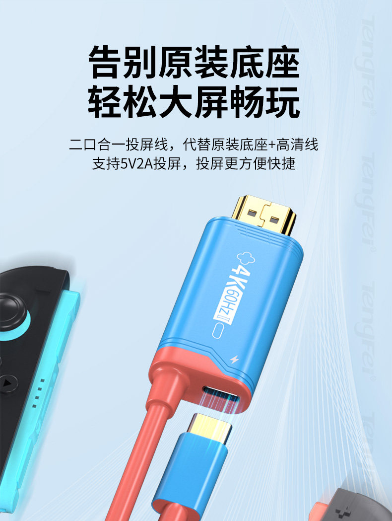 Tengfei Switch2 Generation Screen Projection Cable Portable Base Converter Connected to Tv Suitable for Nintendo Ns2 Adapter Display HDMI Second Generation Game Console Docking Station Oled Charging Cable Accessories