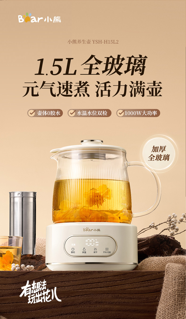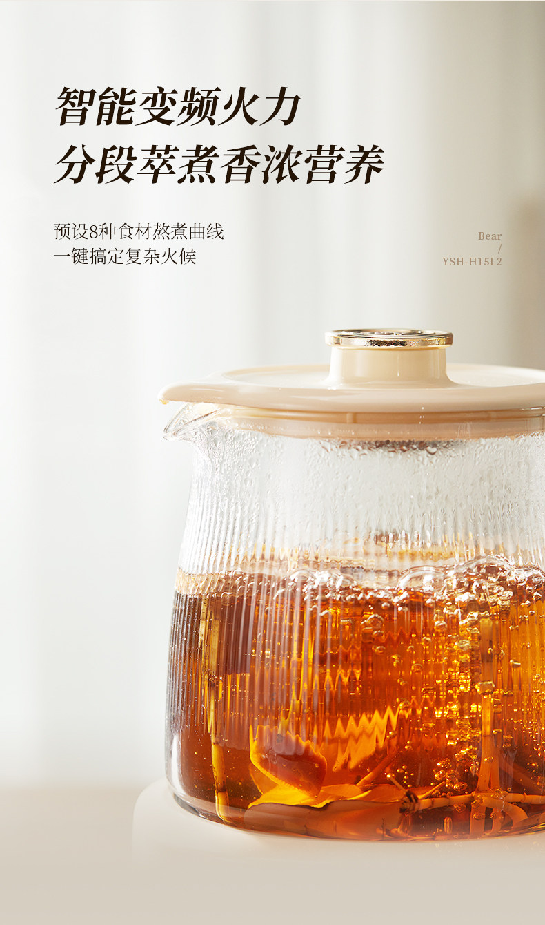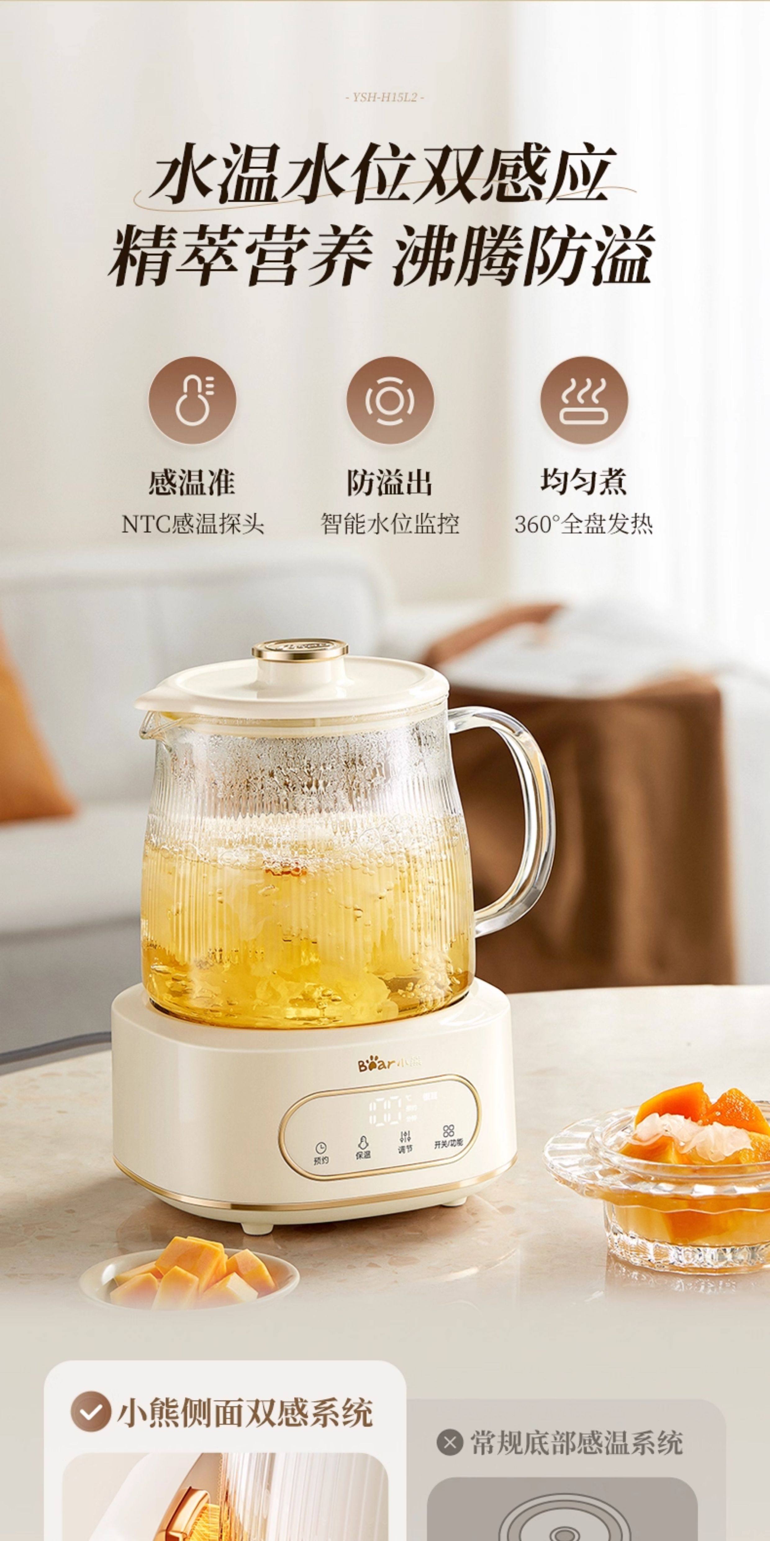 Bear Health Pot Pure Glass Household Multifunctional Small Kettle for Stewing and Boiling 2025 New Model Official Genuine Product
