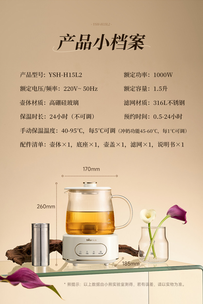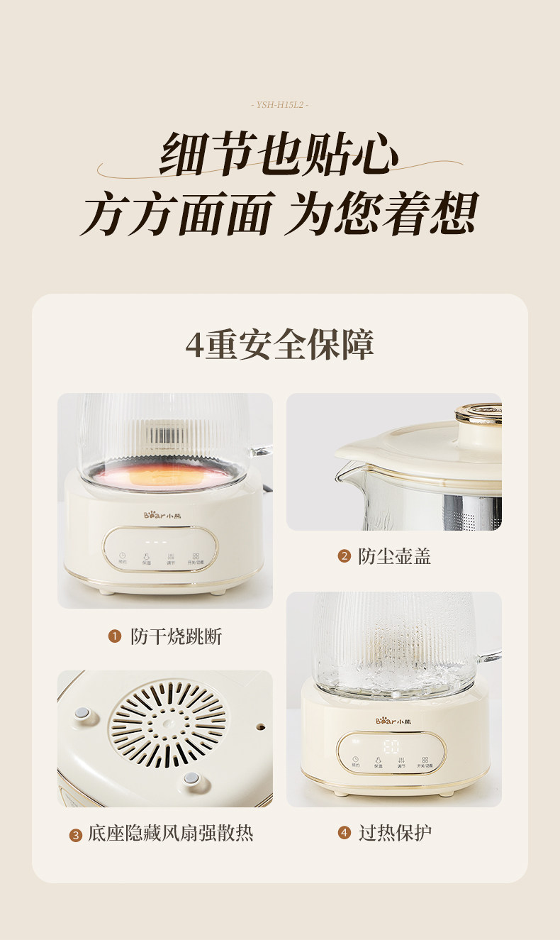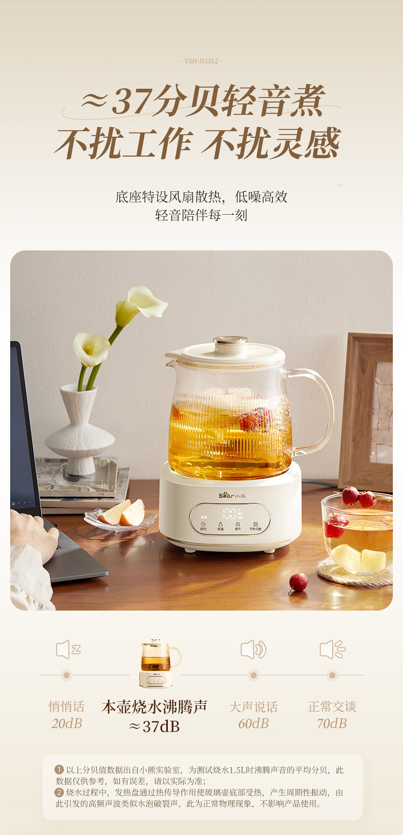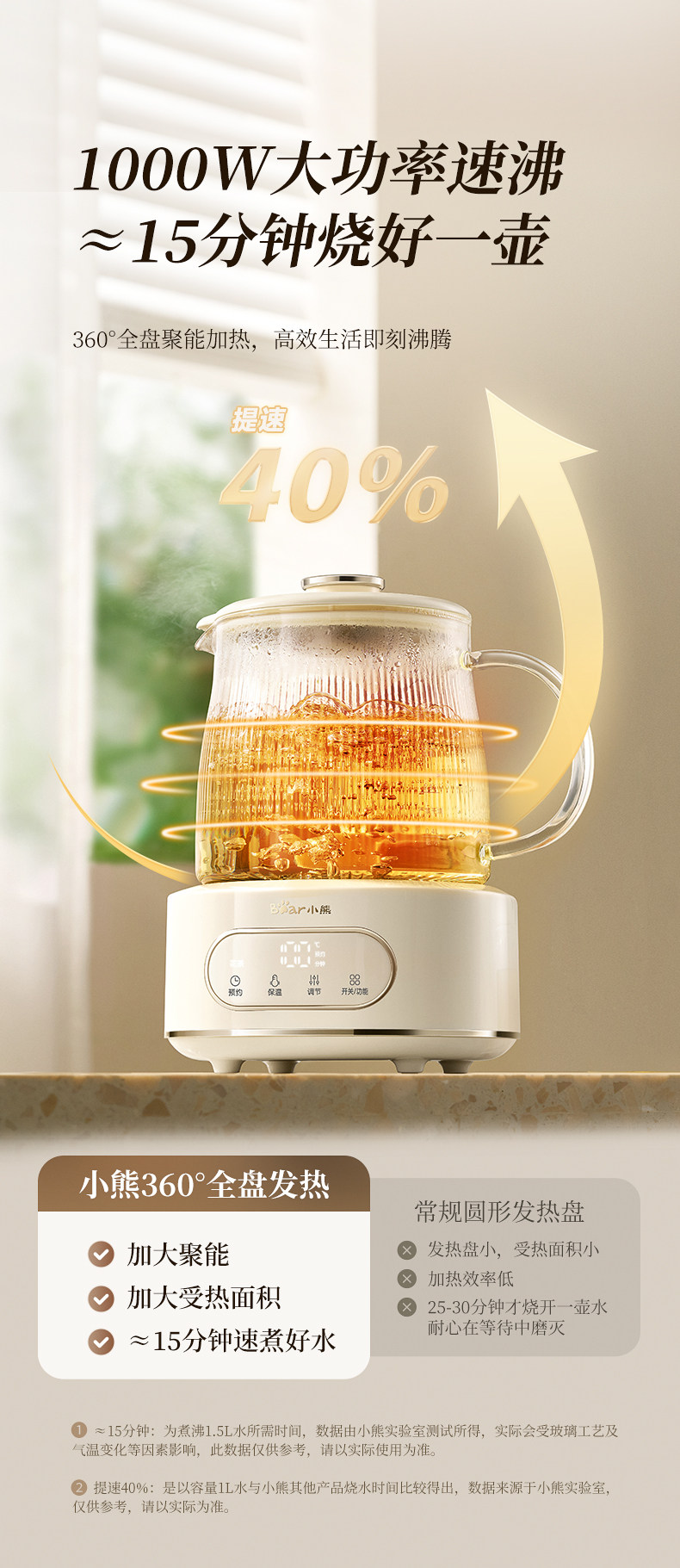 Bear Health Pot Pure Glass Household Multifunctional Small Kettle for Stewing and Boiling 2025 New Model Official Genuine Product