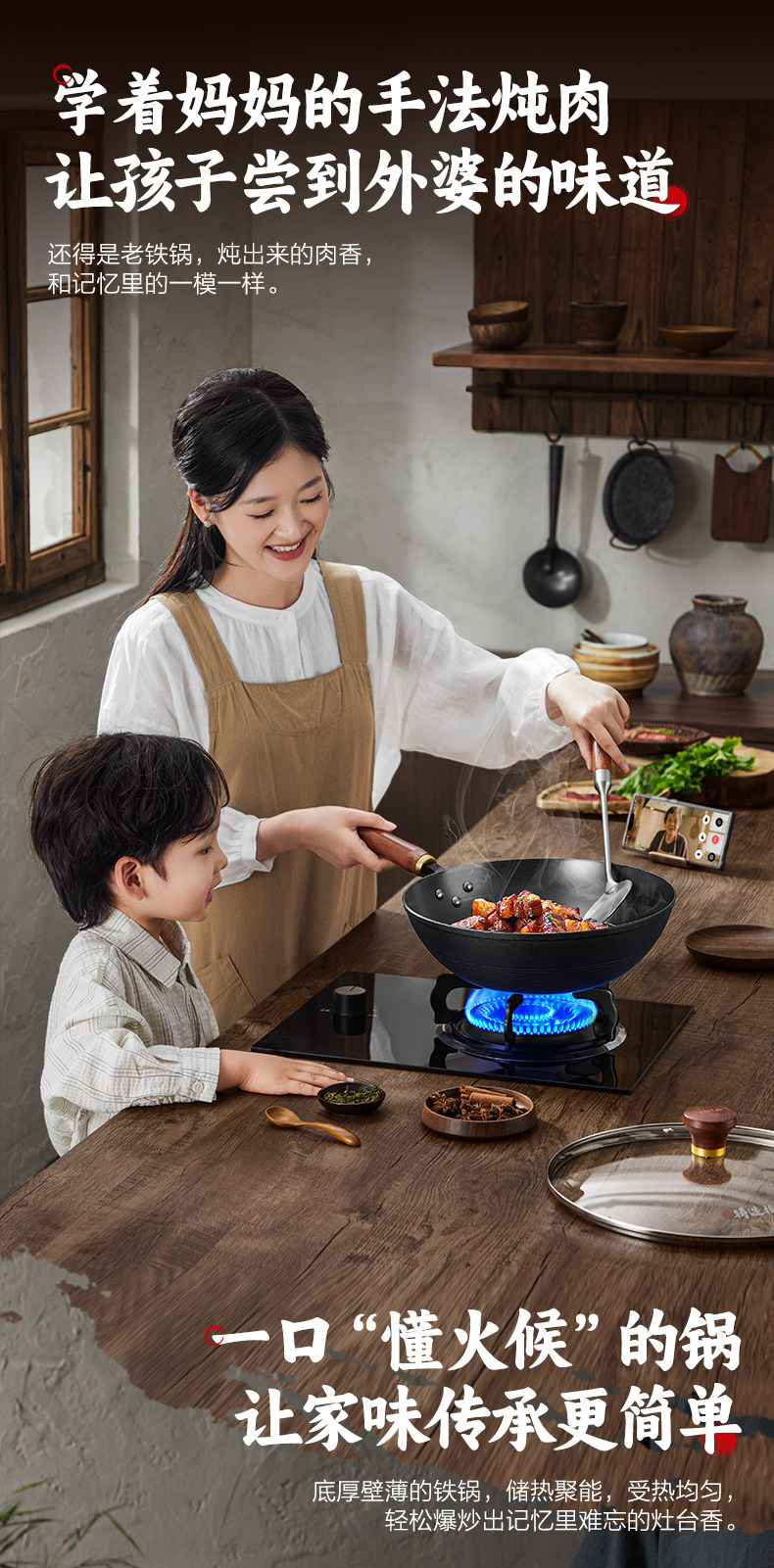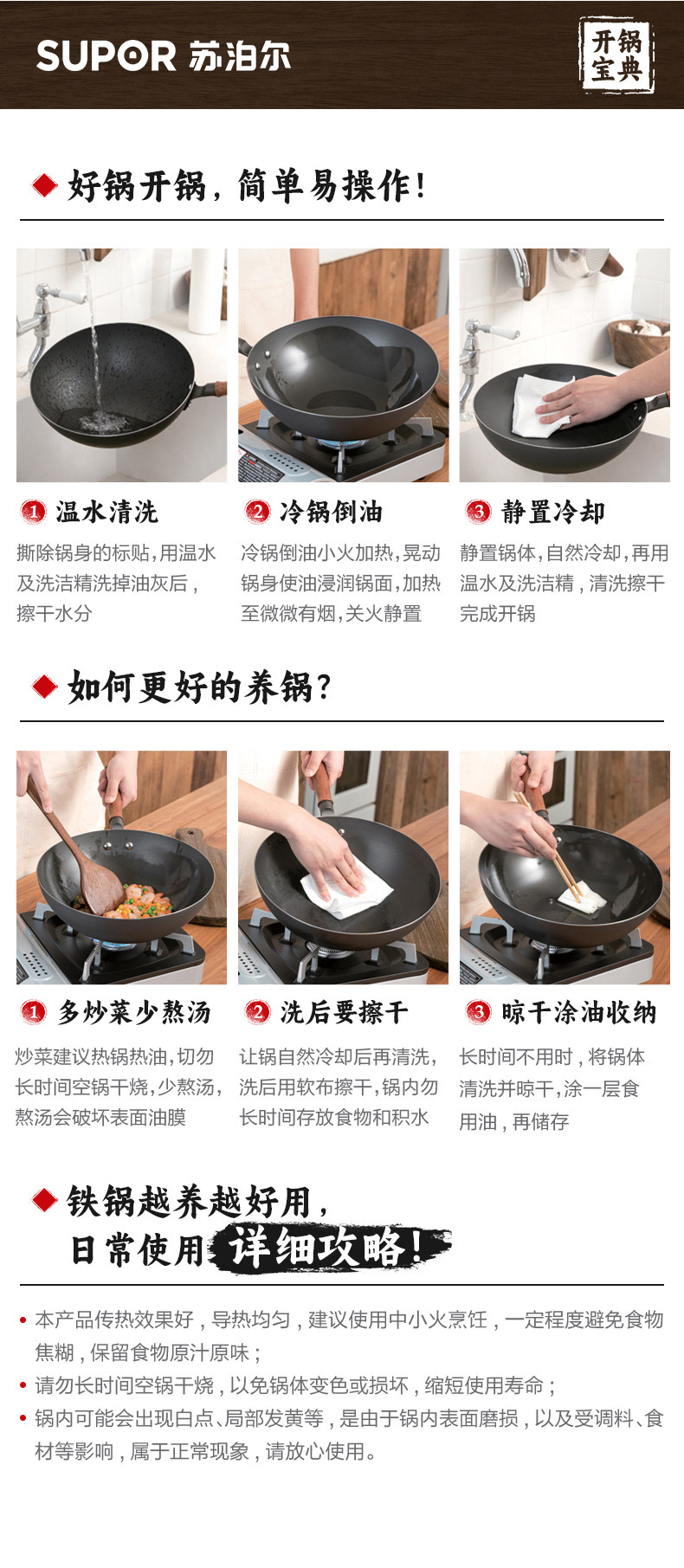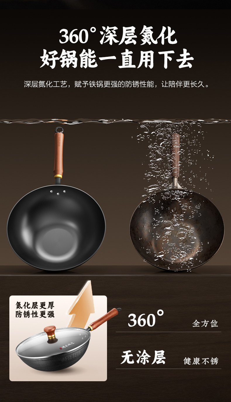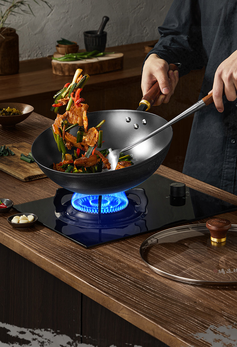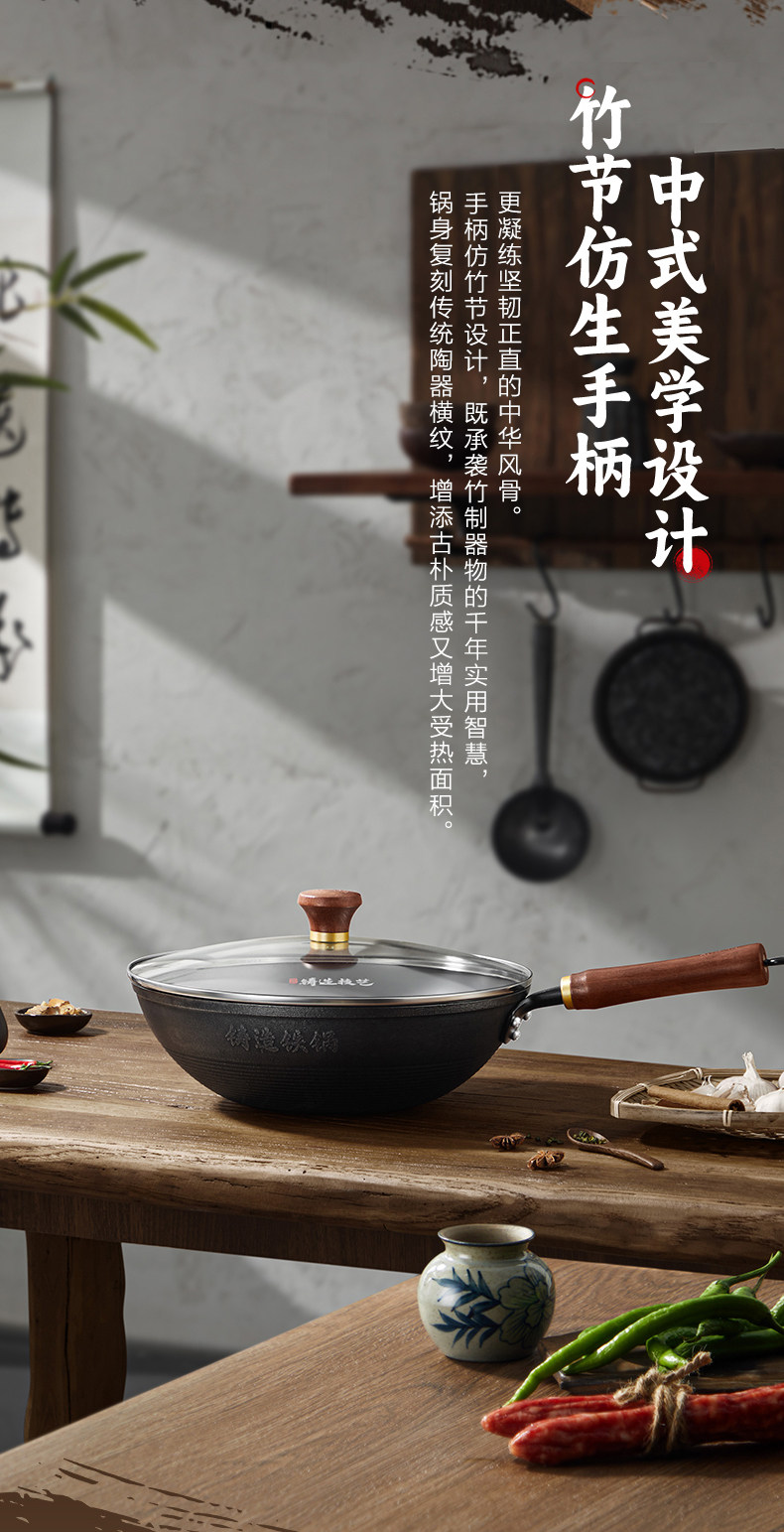 Supor Traditional Uncoated Cast Iron Wok for Home Cooking, Non-Stick Frying Pan, Traditional Craftsmanship, Suitable for Gas and Induction Cookers