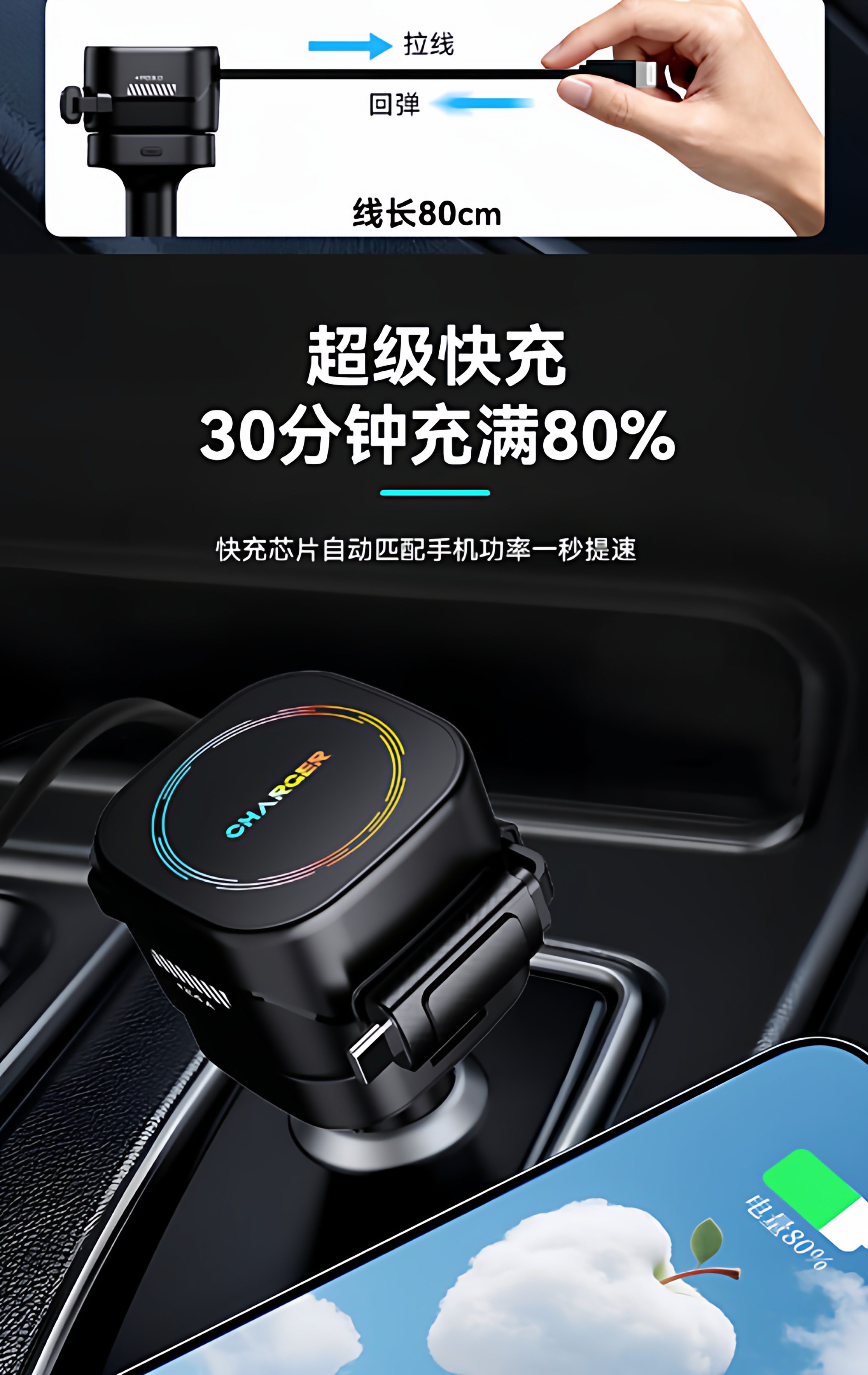 | Color Classification | Flagship Model [Apple Pd+Type-C] Cigarette Lighter + Window Breakerā Patented Telescopicā One for Three,Mecha Style Black [Without Starry Sky Ambient Light],Mecha Style Yellow [Without Starry Sky Ambient Light],Mecha Style White [Without Starry Sky Ambient Light],Mecha Style Pink [Without Starry Sky Ambient Light],Latest Upgraded Gray [Red Starry Sky Top Ambient Light],Latest Upgraded Gray [Purple Starry Sky Top Ambient Light],Standard Version [Super Fast Charging Speed up 100%] Type-C+Appleā Universal for 12V/24V Models 1,Type-C Comes with Wired Car Fast Charging,Pd Comes with Wired Car Fast Charging |
