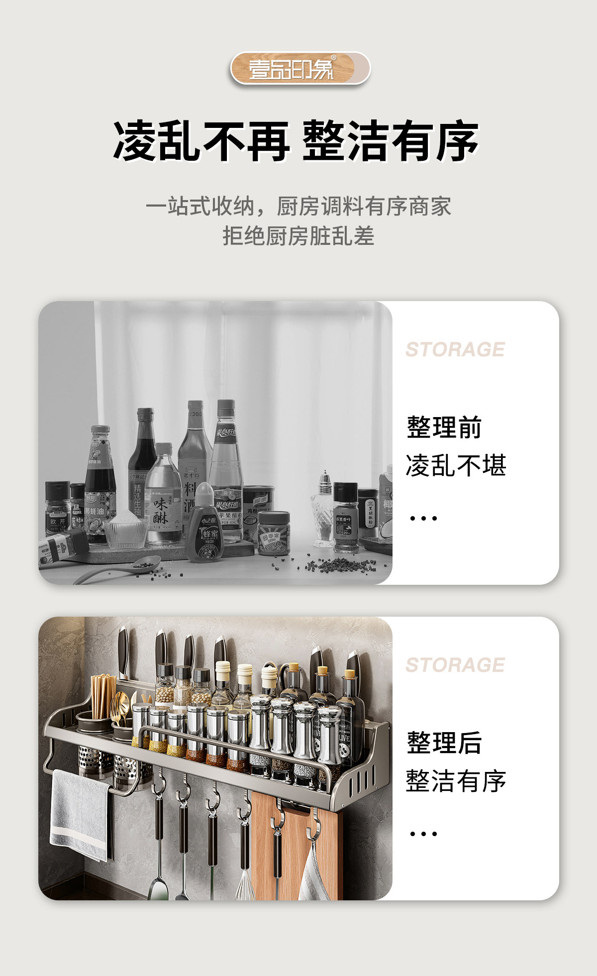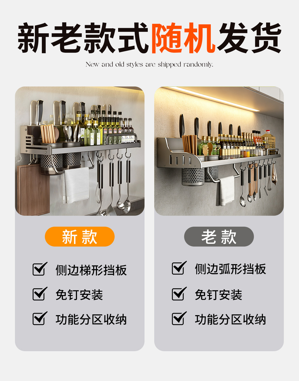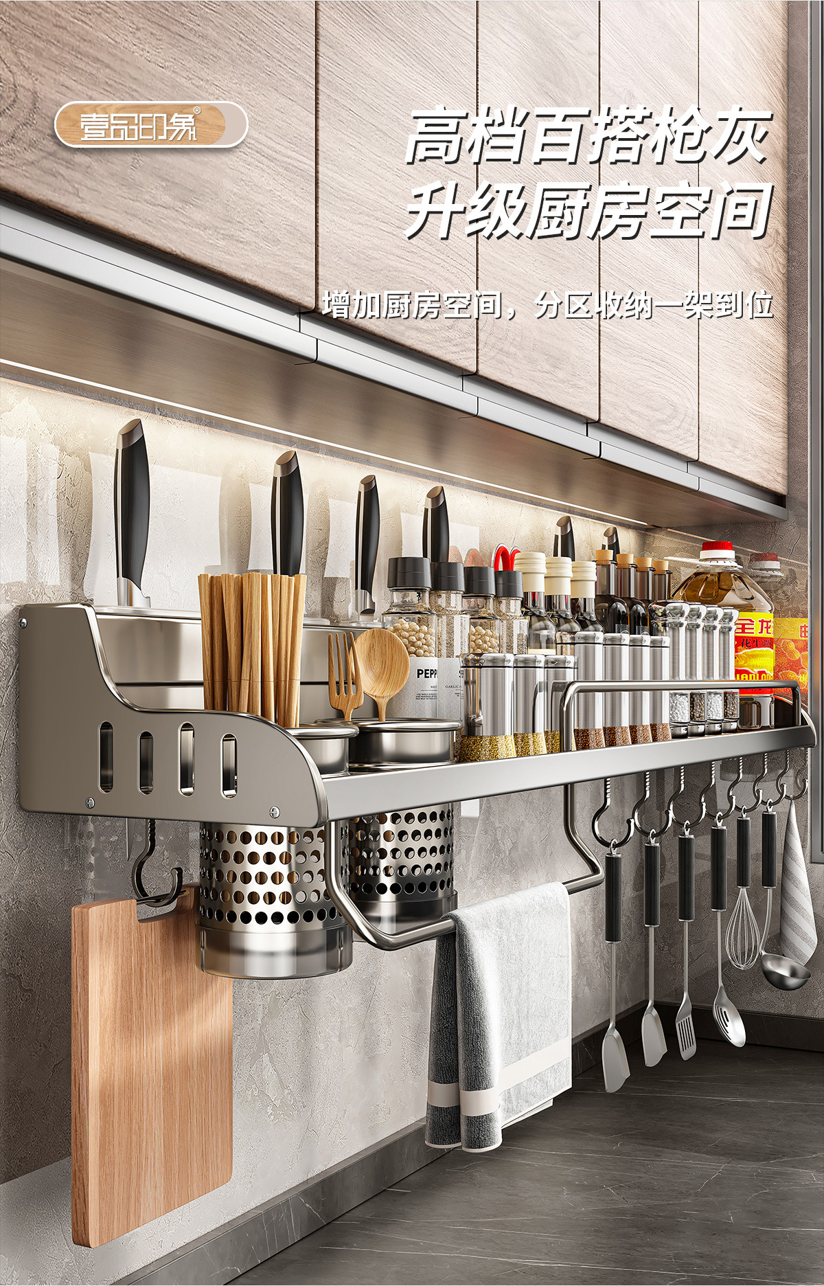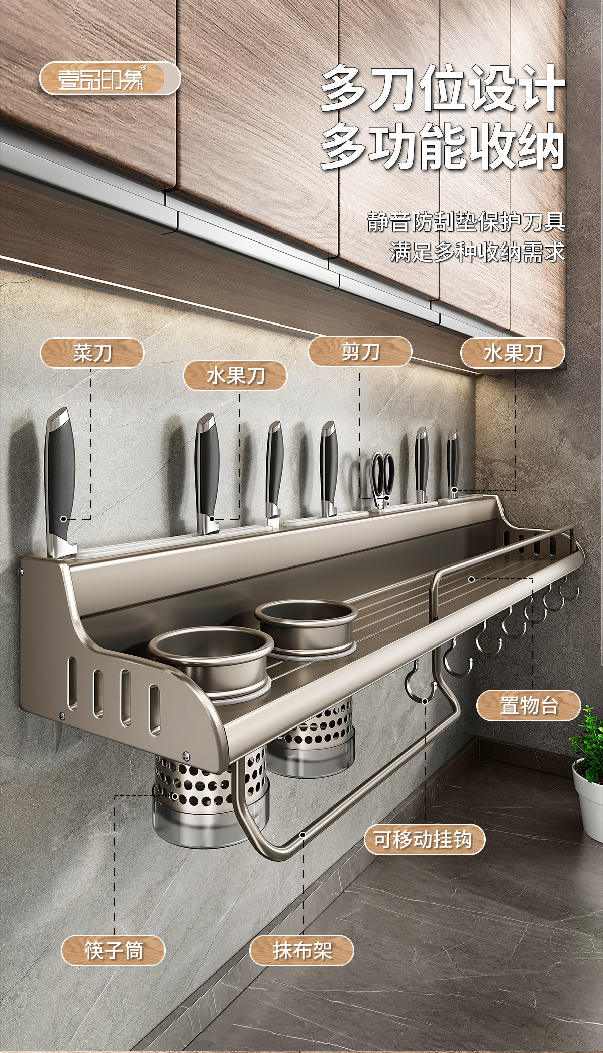 Wall-Mounted Kitchen Storage Rack, Multi-Functional Seasoning, Chopsticks, and Knife Holder, No-Drill Household Items Organizer Hanging Rack