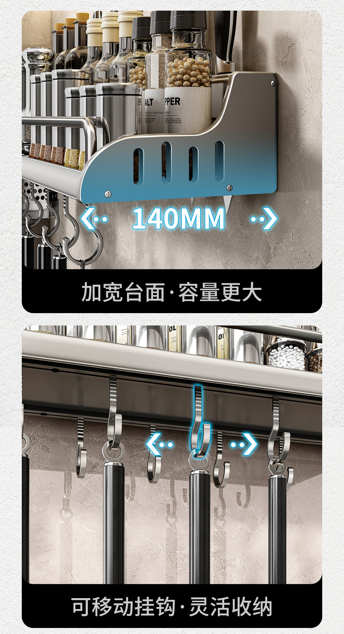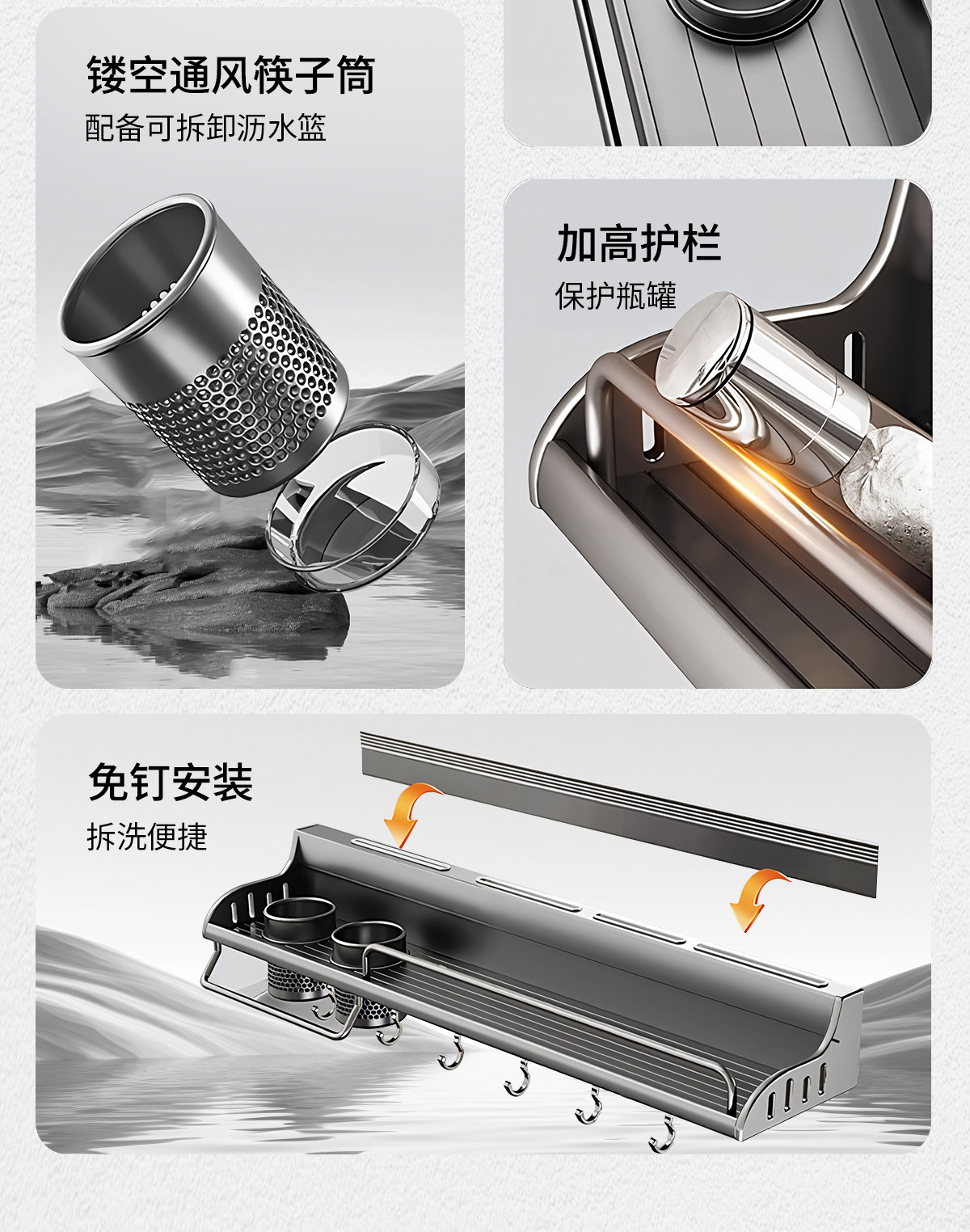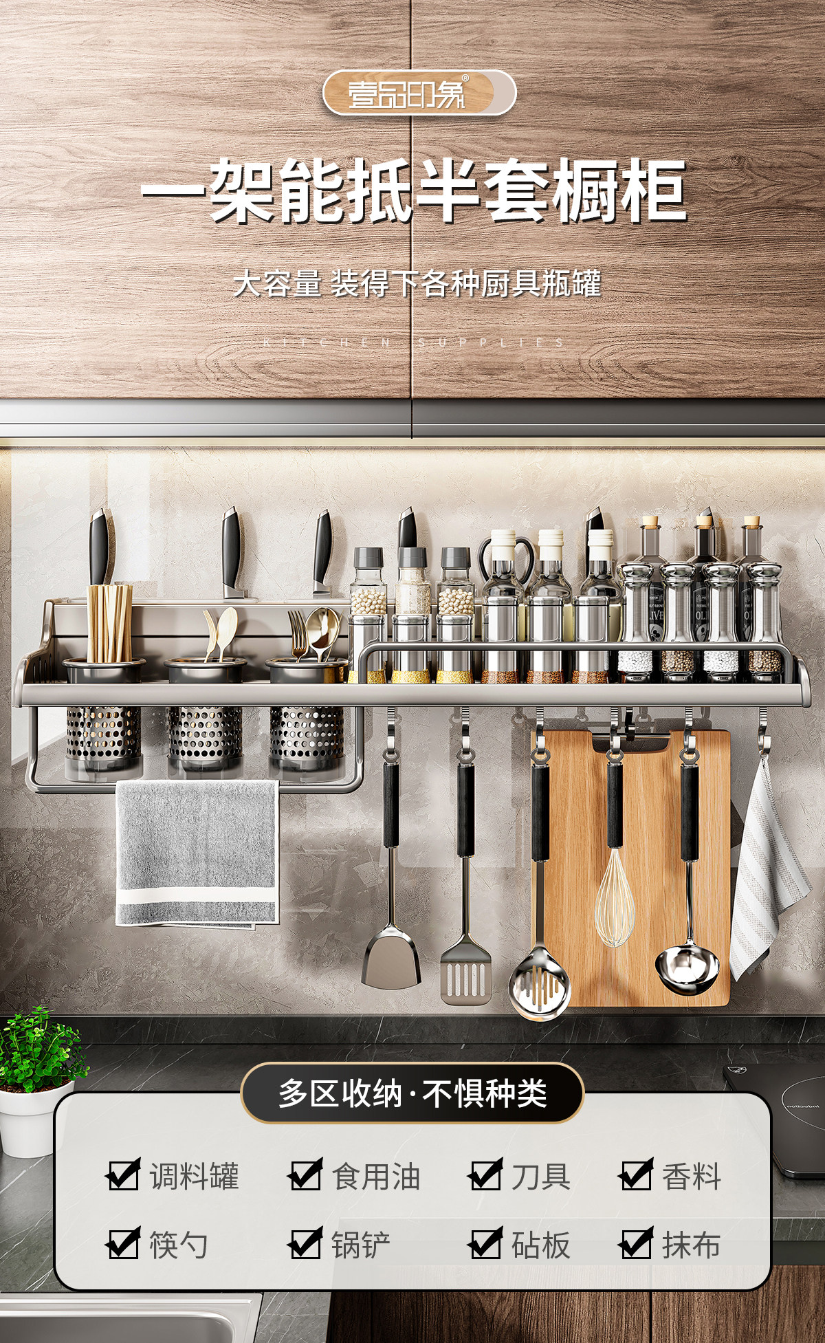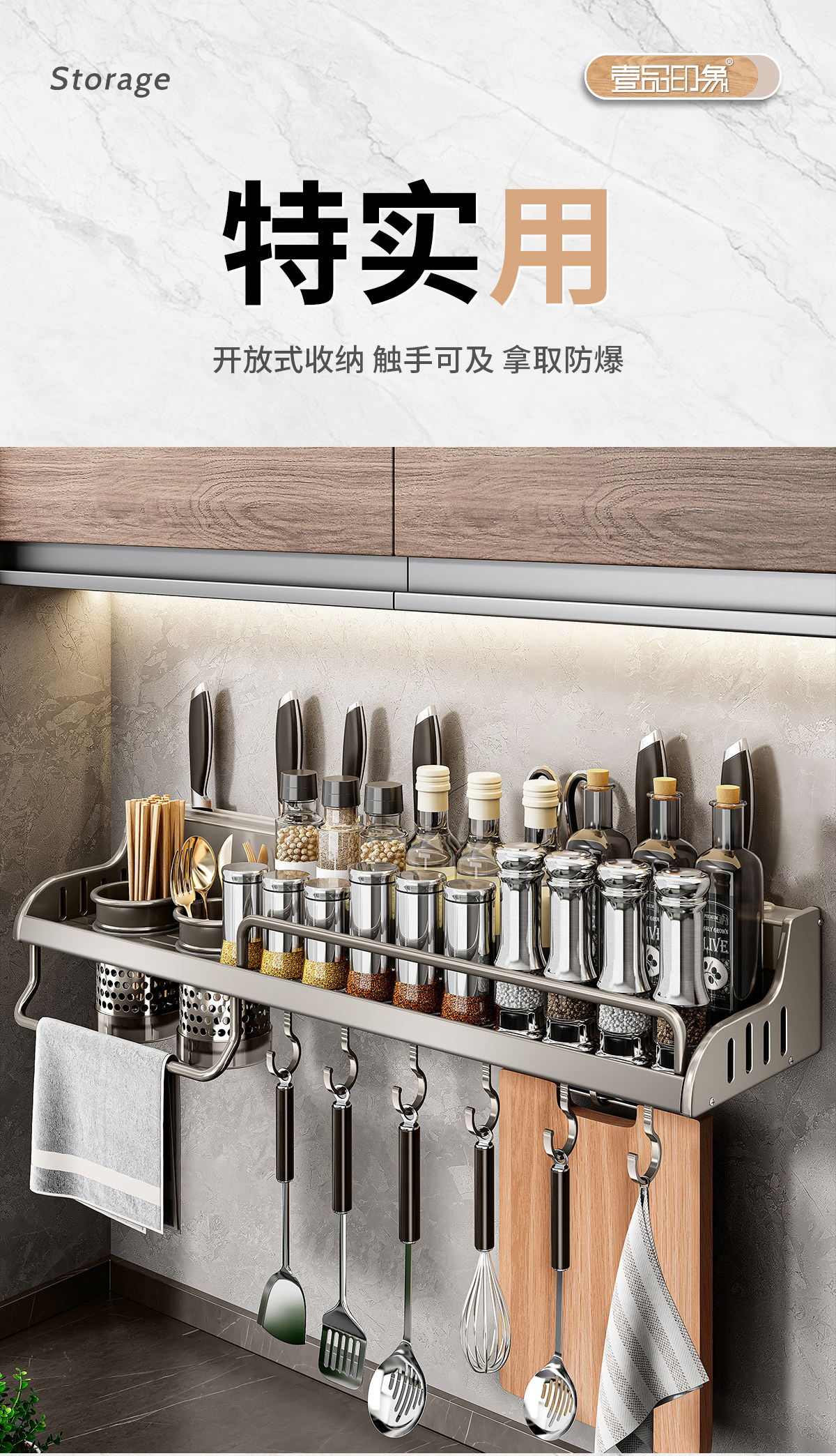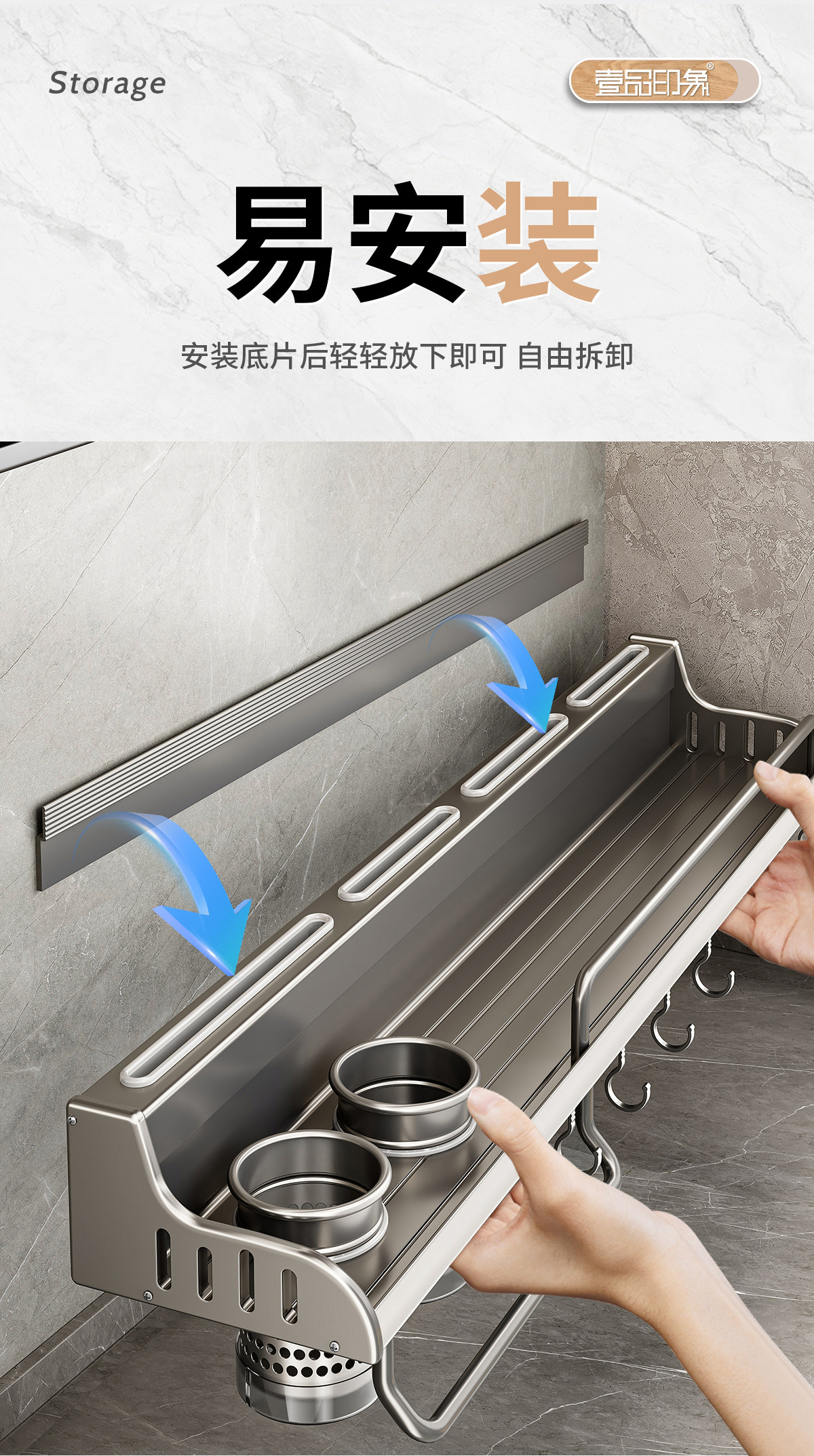 Wall-Mounted Kitchen Storage Rack, Multi-Functional Seasoning, Chopsticks, and Knife Holder, No-Drill Household Items Organizer Hanging Rack