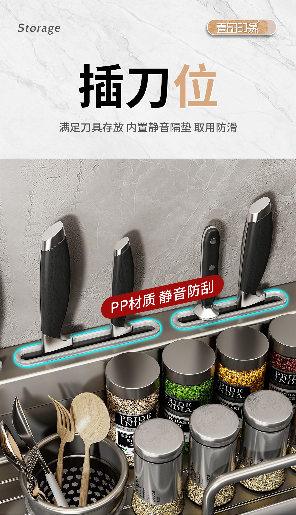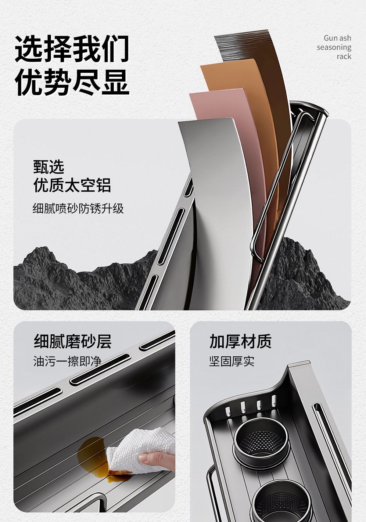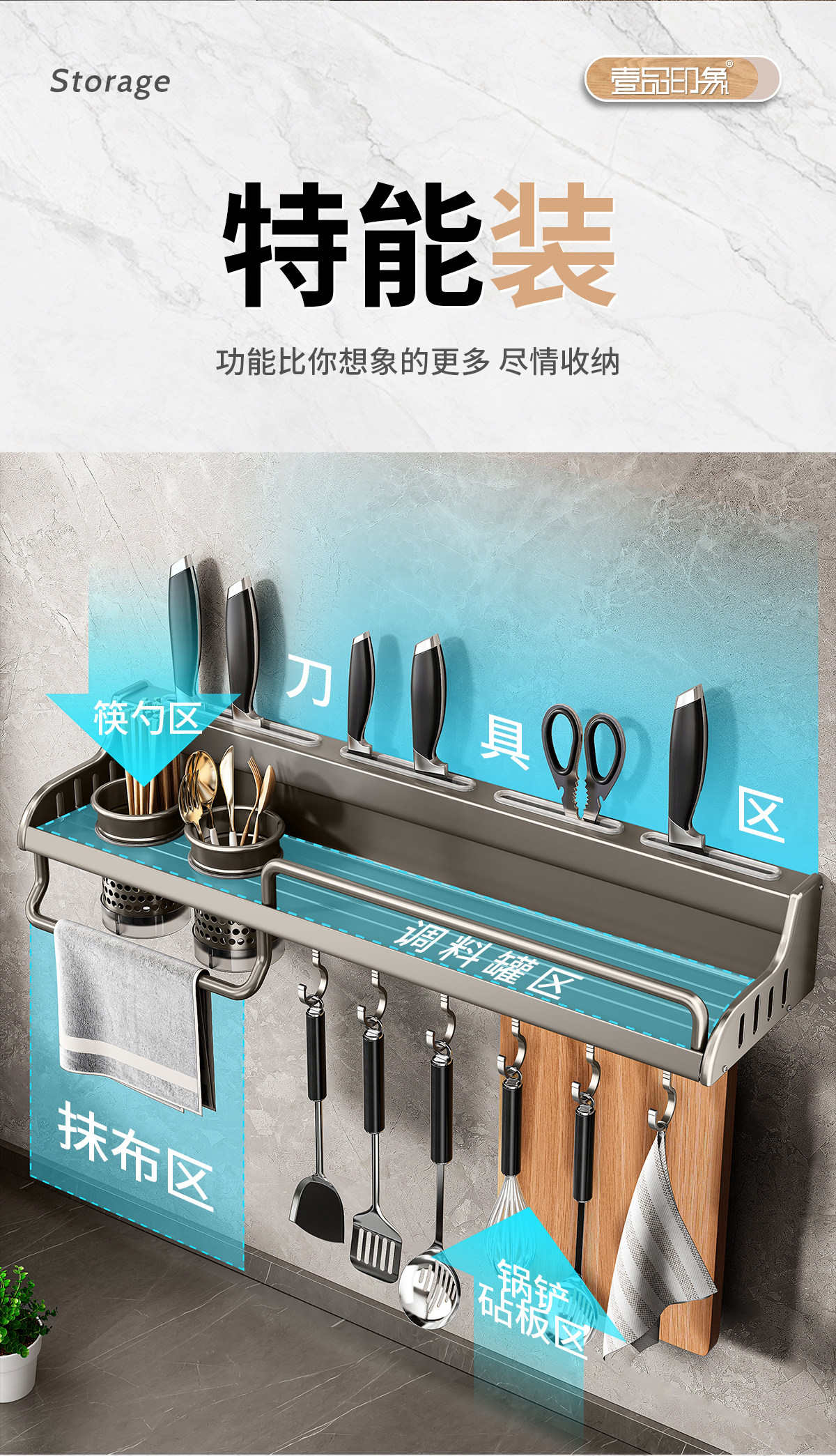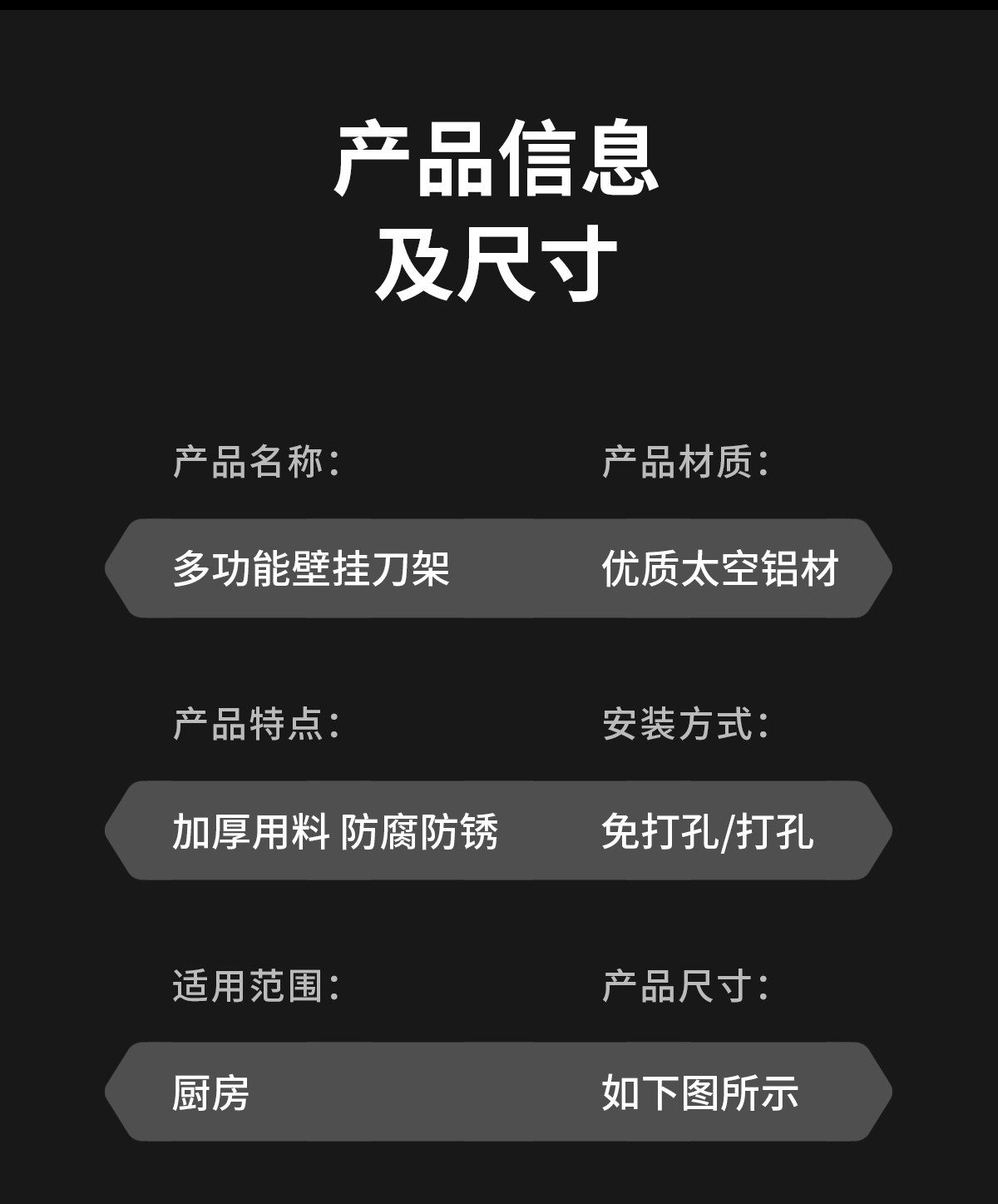 Wall-Mounted Kitchen Storage Rack, Multi-Functional Seasoning, Chopsticks, and Knife Holder, No-Drill Household Items Organizer Hanging Rack